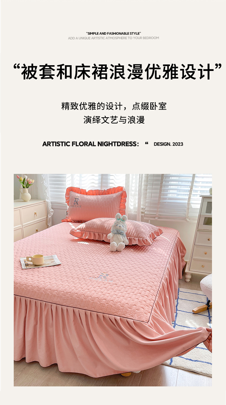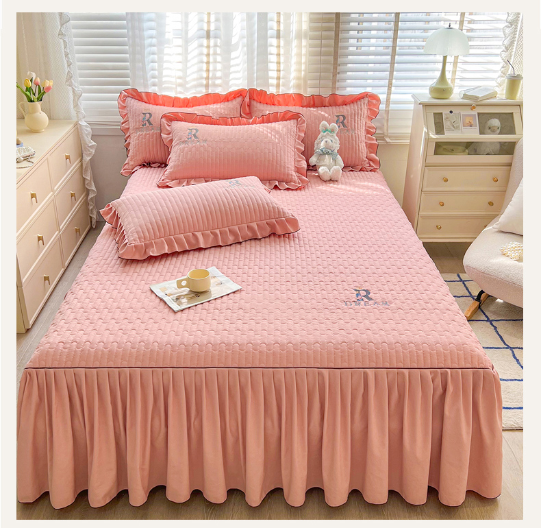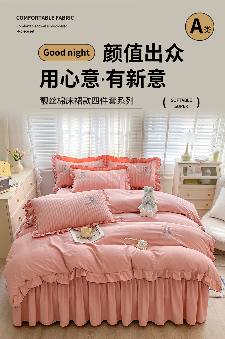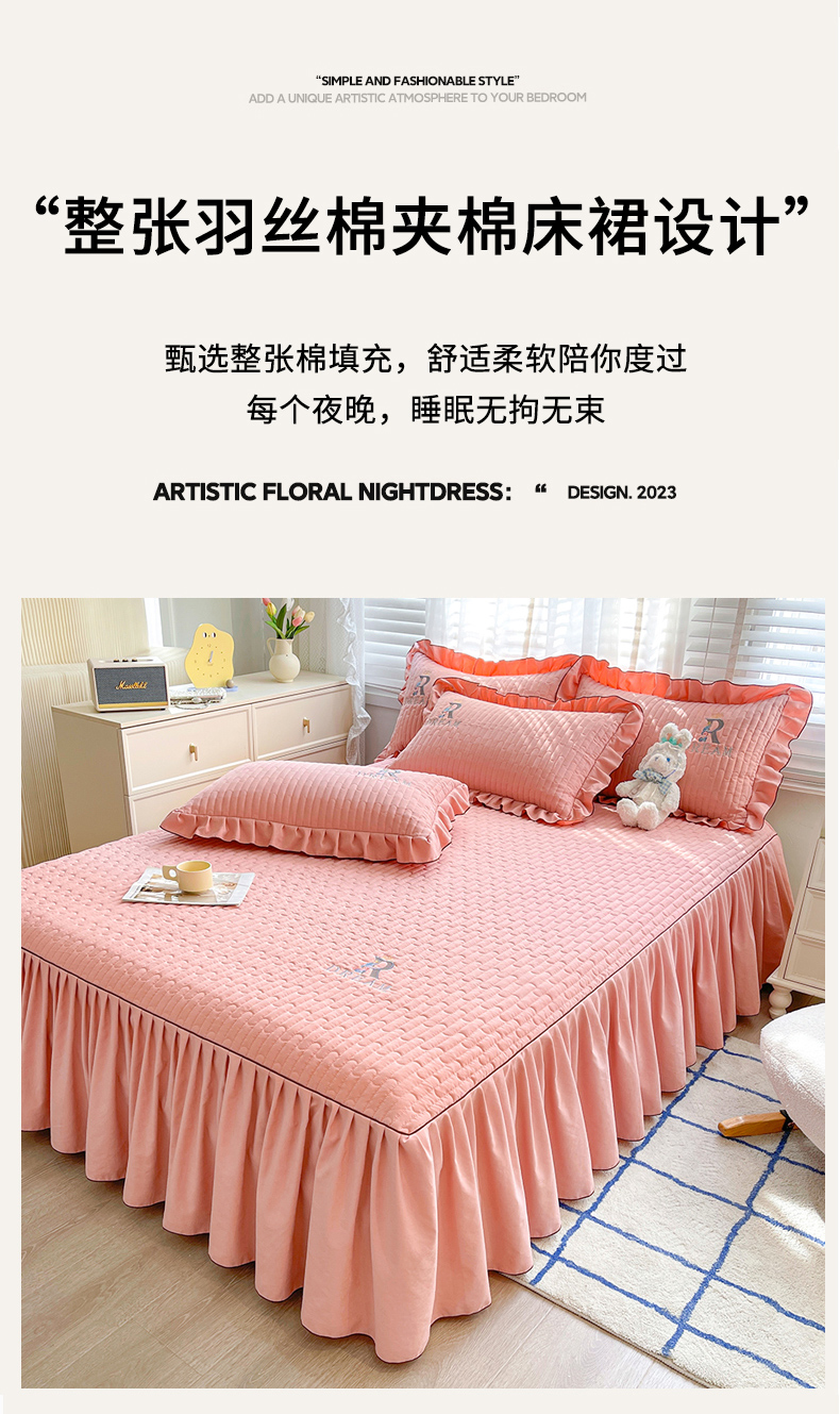 当前位置: 91家纺网 > 商品网购 > 床品套件 > 四件套 > 其它四件套 > 家之硕 2024新款春秋款靓丝棉床裙款四件套 皮粉