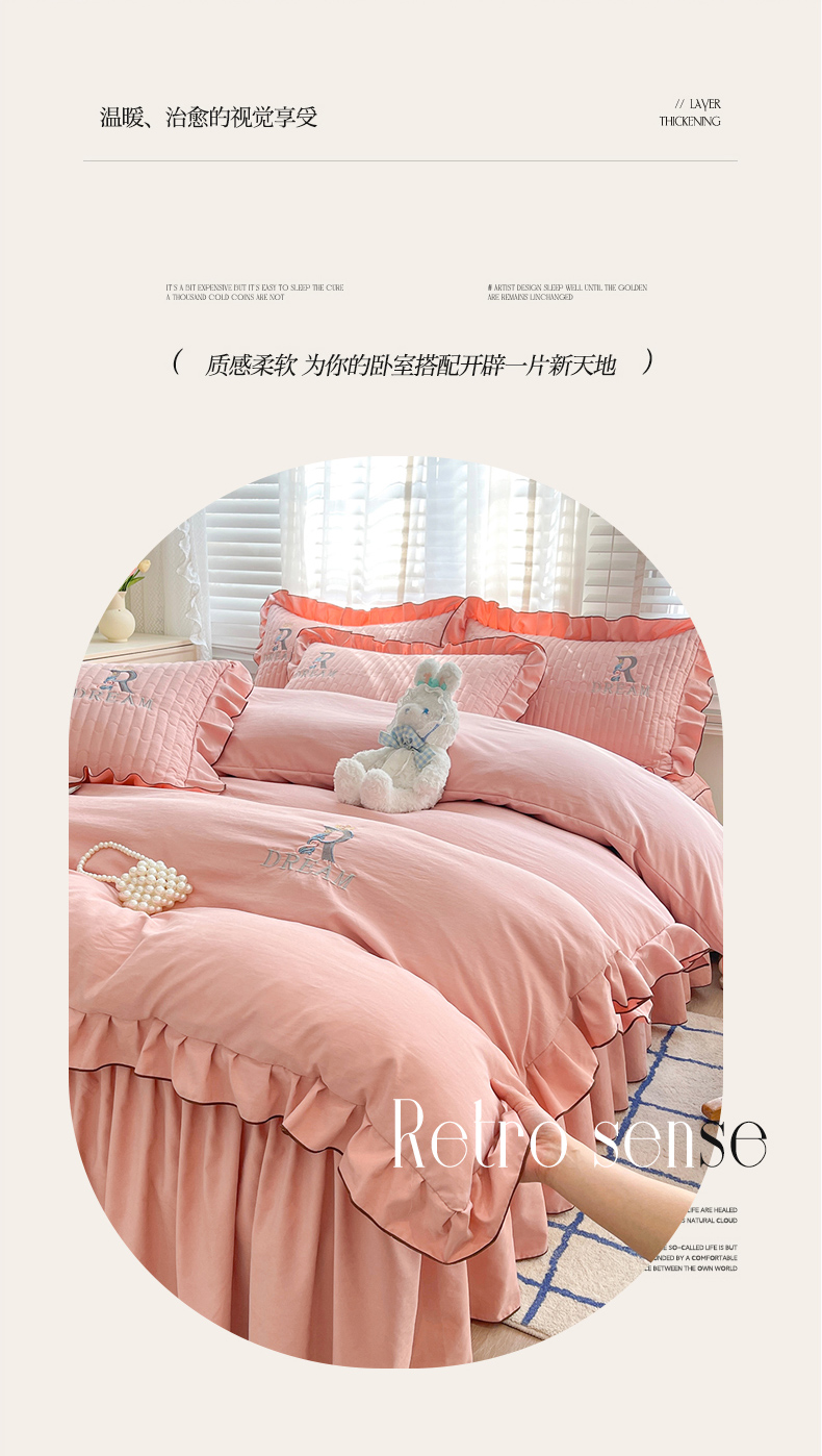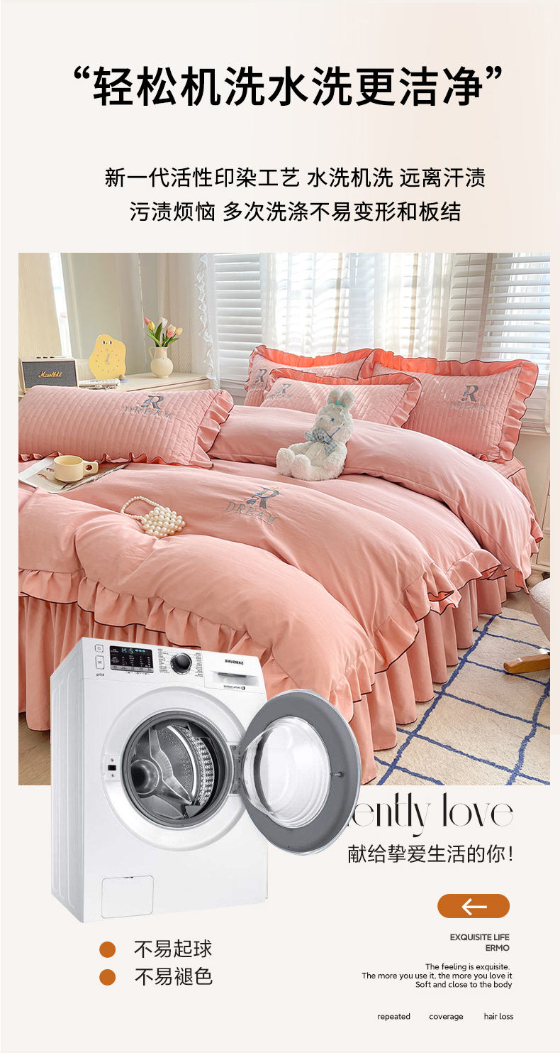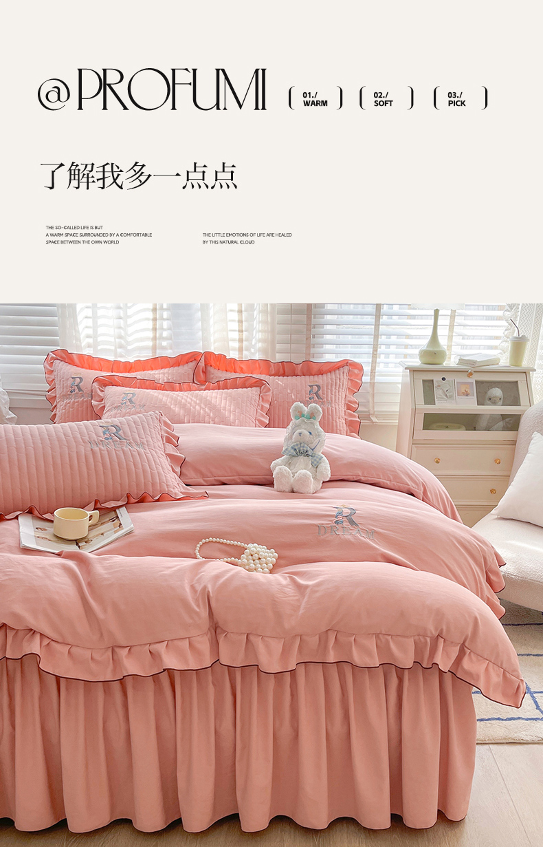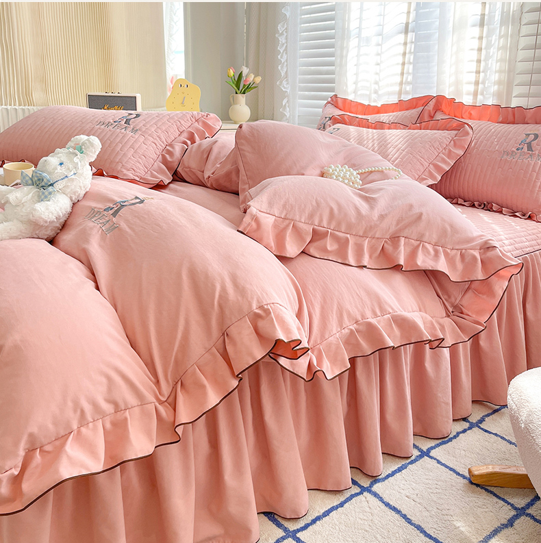 当前位置: 91家纺网 > 商品网购 > 床品套件 > 四件套 > 其它四件套 > 家之硕 2024新款春秋款靓丝棉床裙款四件套 皮粉