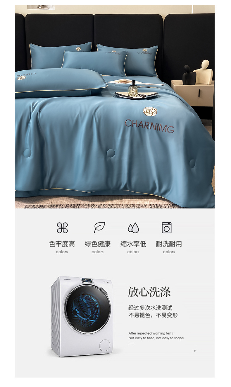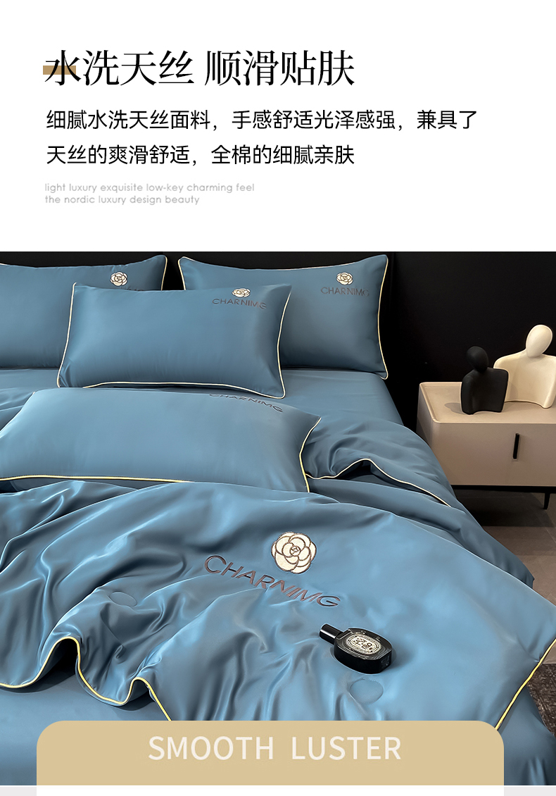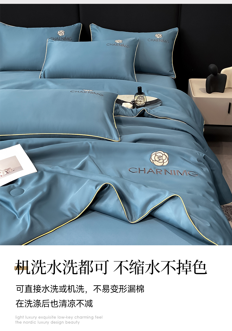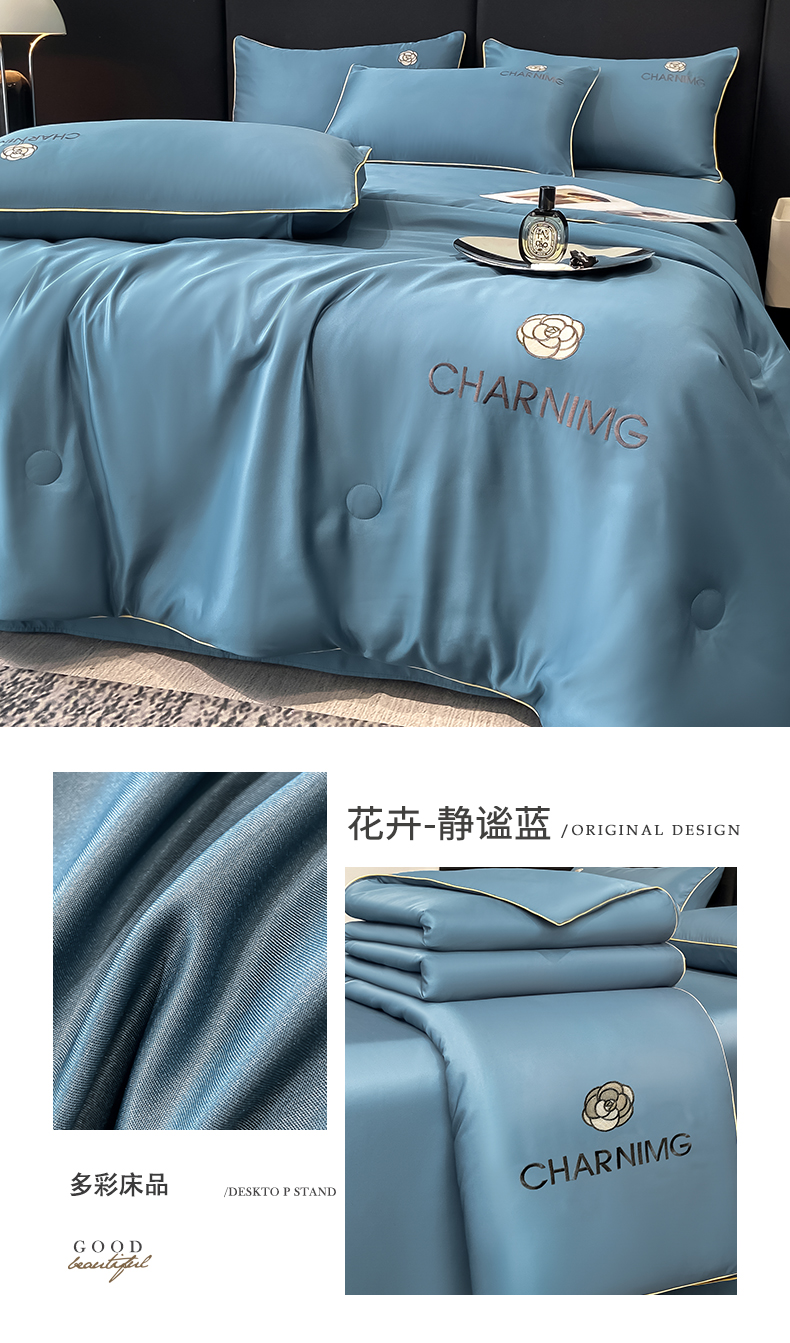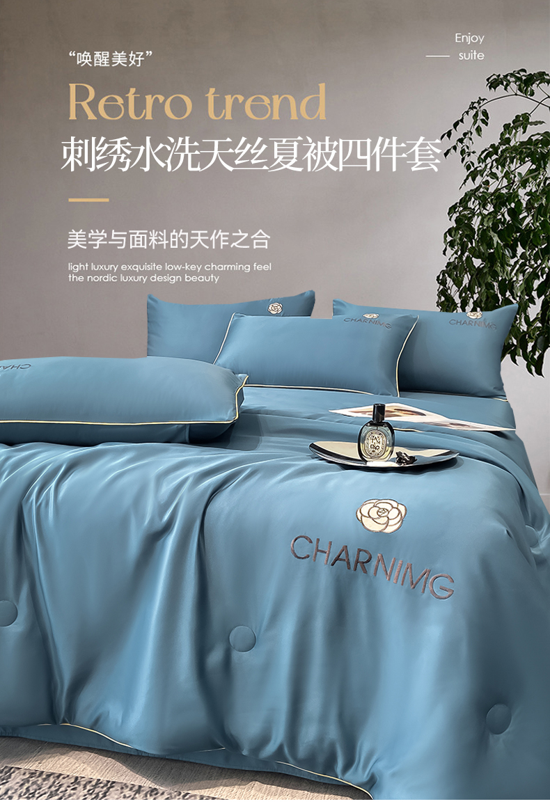 当前位置: 91家纺网 > 商品网购 > 床品套件 > 四件套 > 夏被四件套 > 江暮云家纺 2025新款刺绣水洗天丝夏被四件套-花卉 花卉-静谧蓝