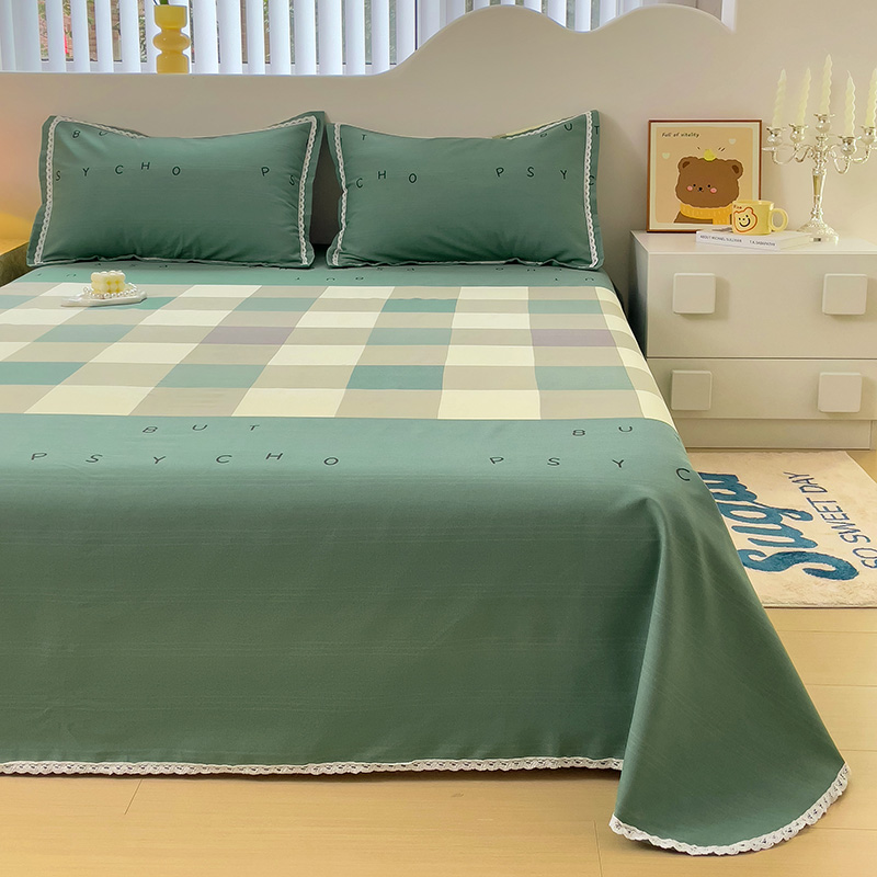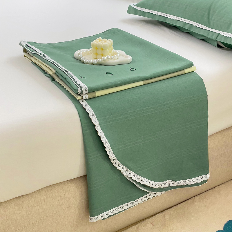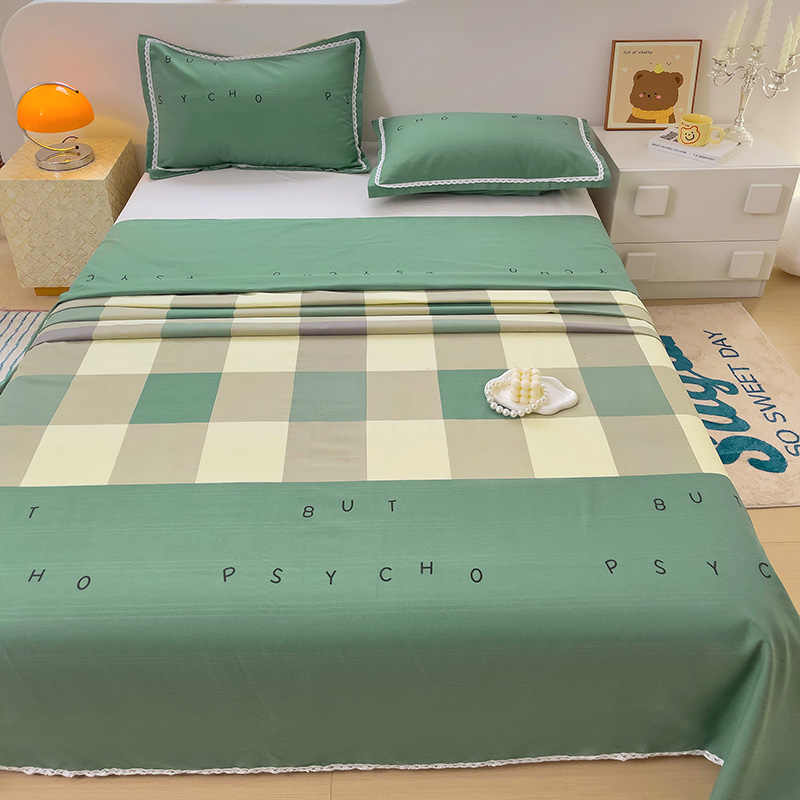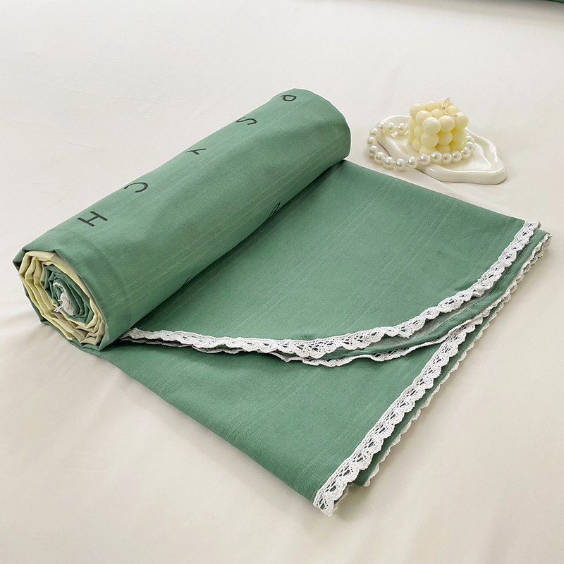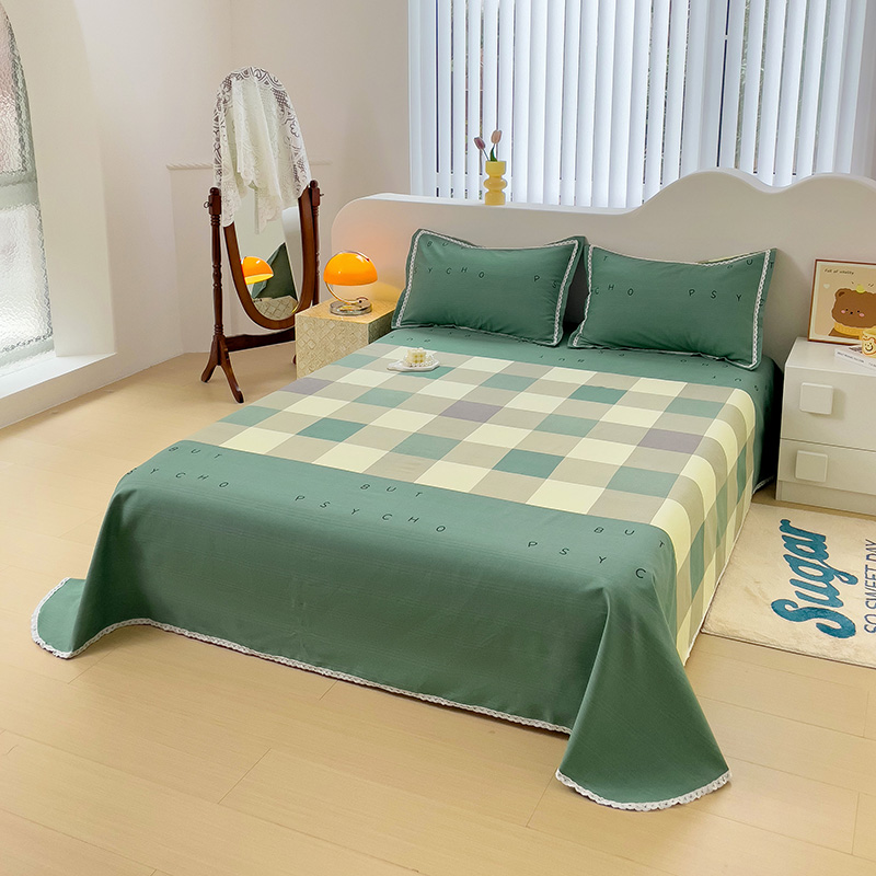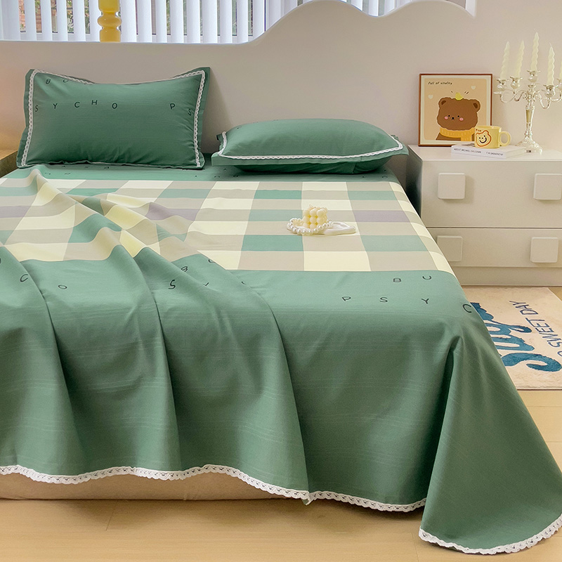 鸿羽樱 2024新款鱼骨棉老粗布凉席三件套 宜家-绿