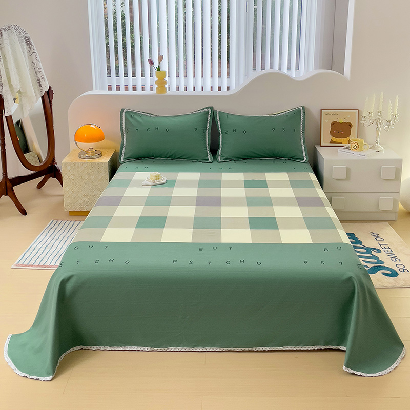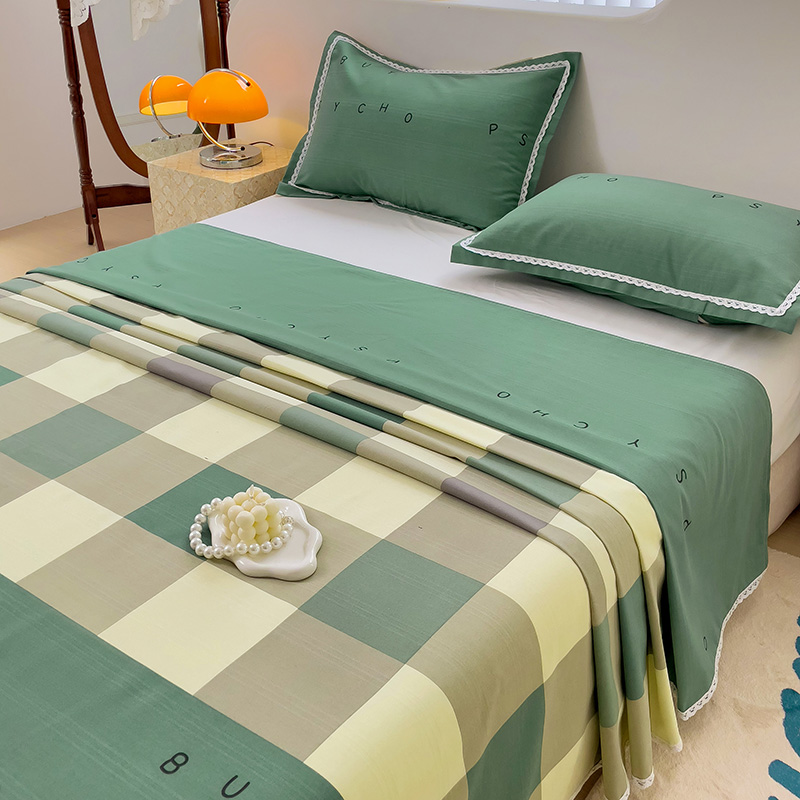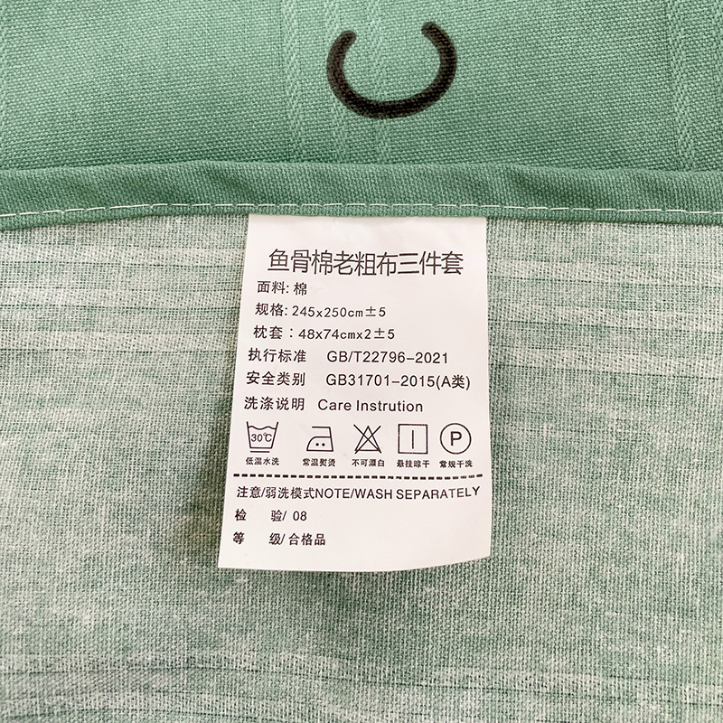 商品名称:鸿羽樱 2024新款鱼骨棉老粗布凉席三件套 宜家-绿