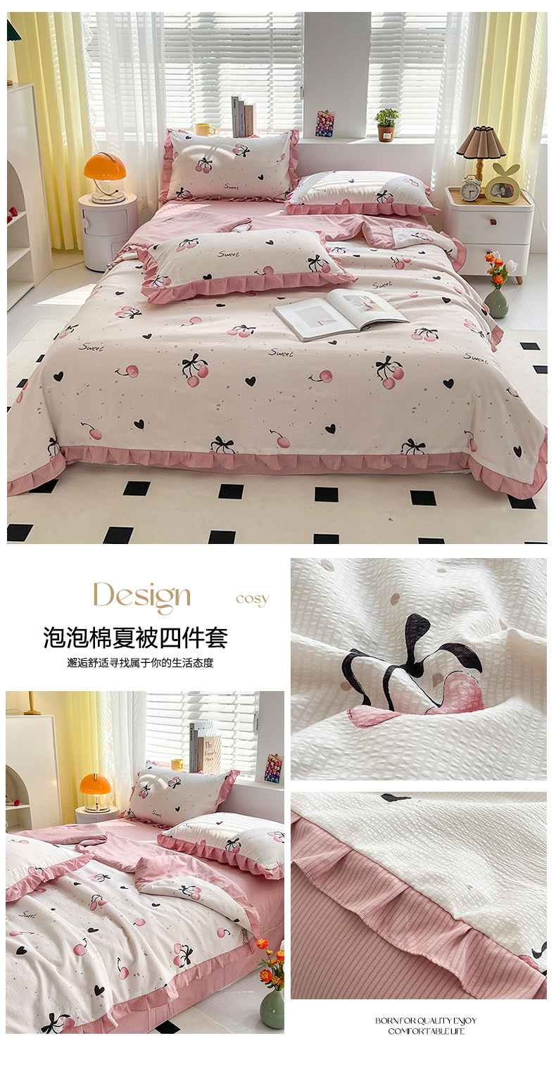 商品名称:富之航 2024新款时尚舒适泡泡棉夏被四件套粉樱桃