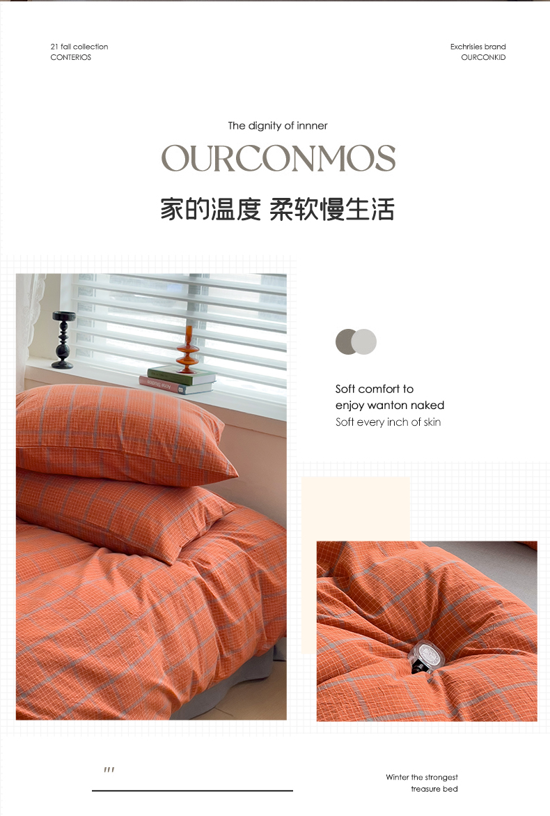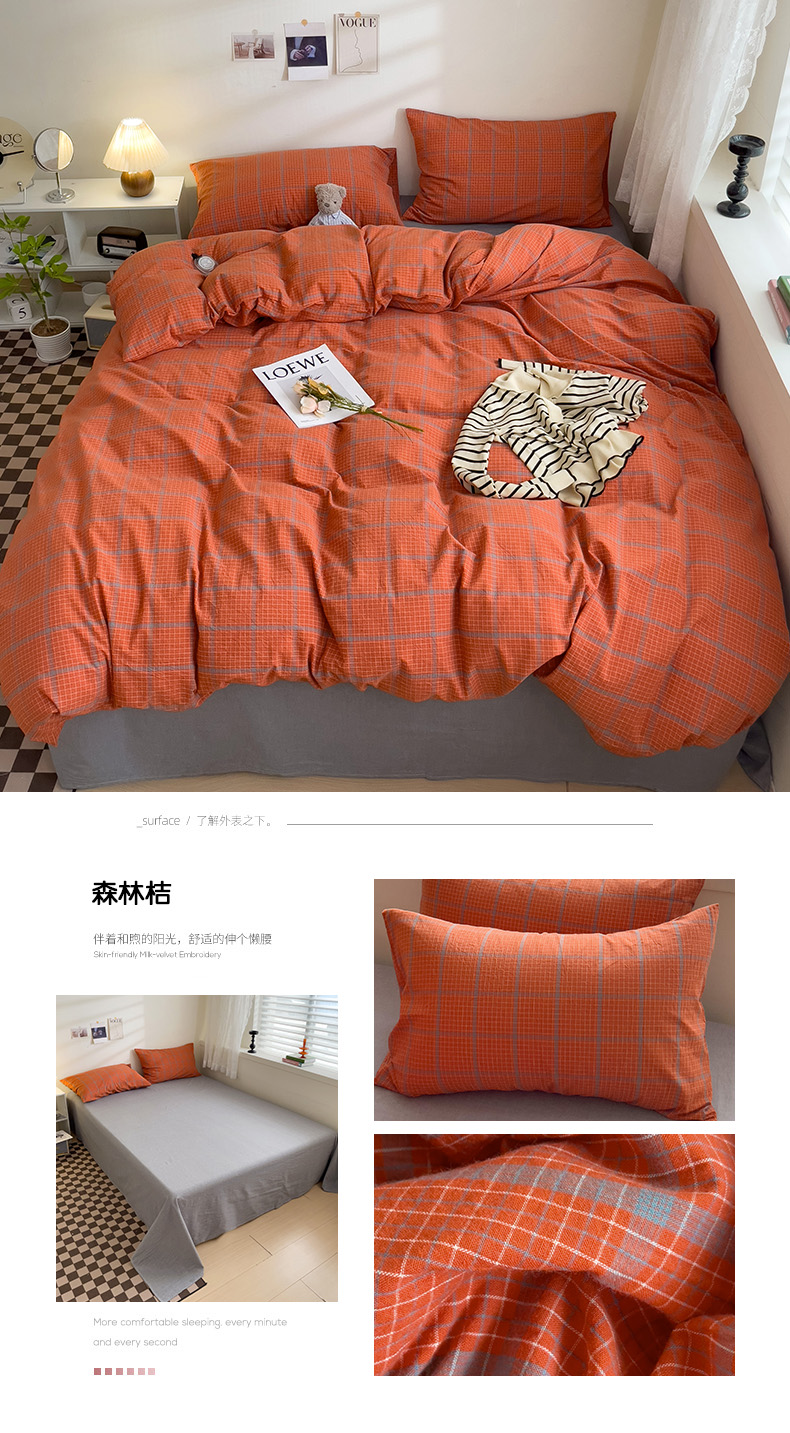 当前位置: 91家纺网 > 商品网购 > 床品套件 > 四件套 > 全棉普通四件套 > 大柏树 2025新款A类色织全棉水洗棉单品系列-四件套 森林桔
