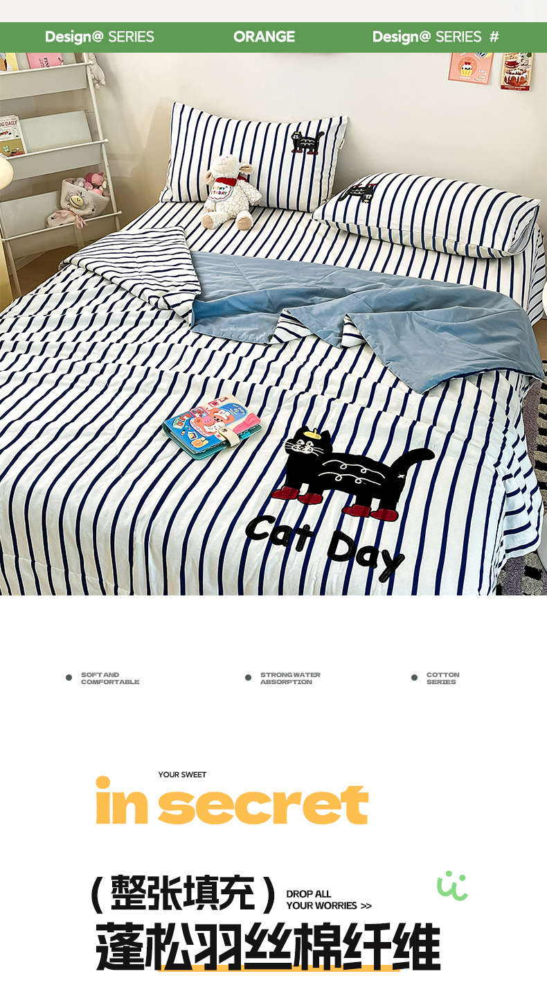 • 91家纺网 家纺一手货源 找家纺 雅居纺家纺 2024新款全棉绣花夏被可配同款老粗布四件套 夏被-小猫咪