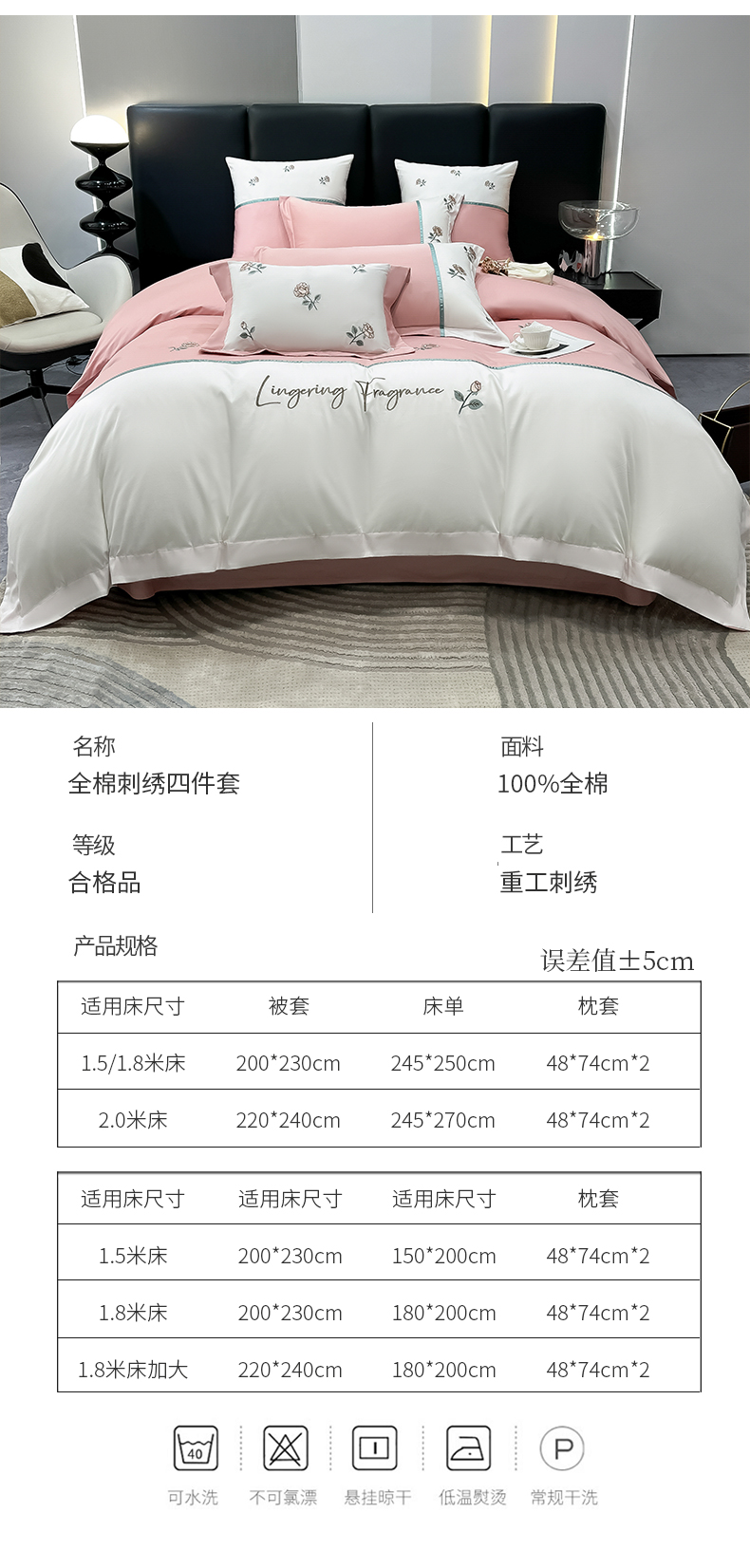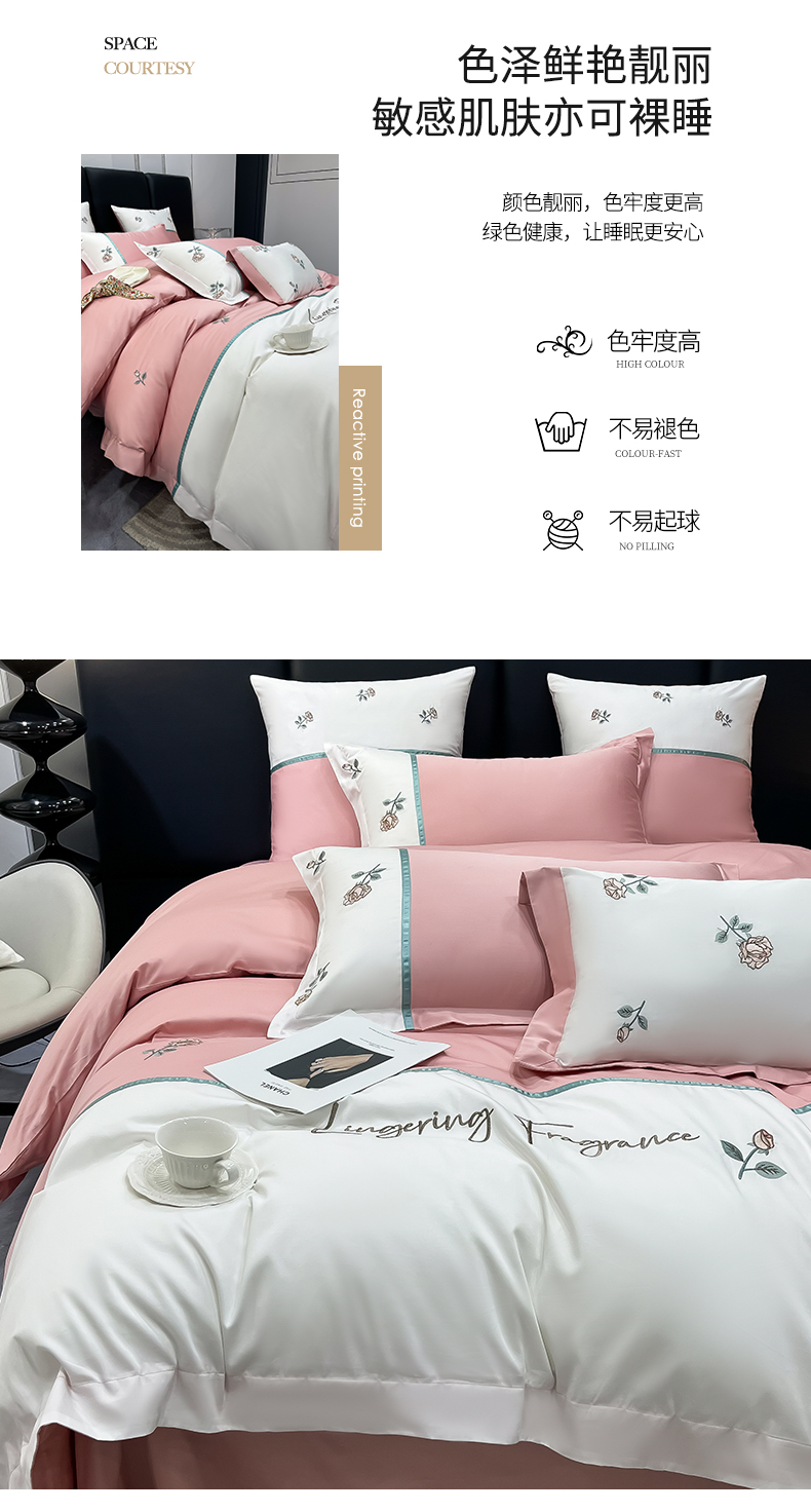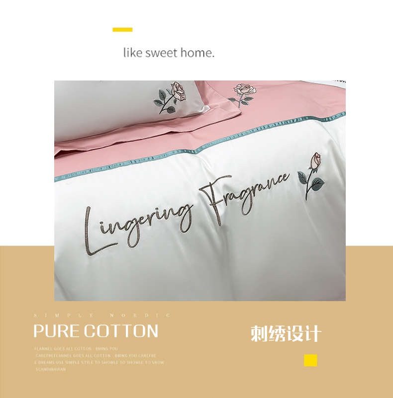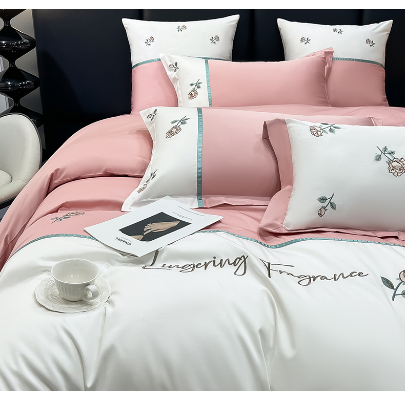 商品名称:(总)家居1号家纺 2024新款13376全棉刺绣四件套-轻奢玫瑰