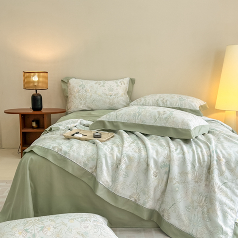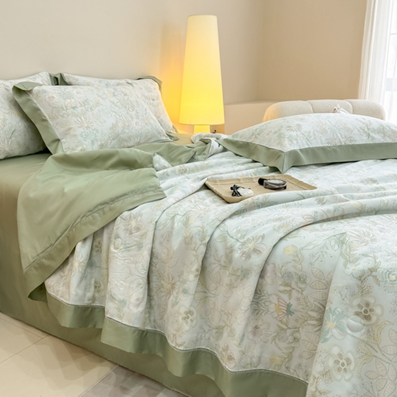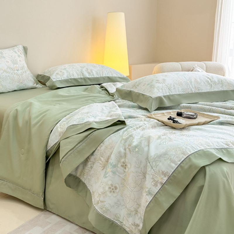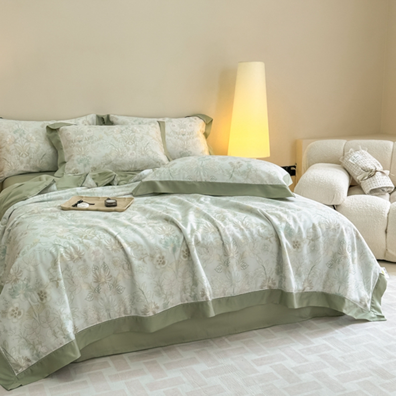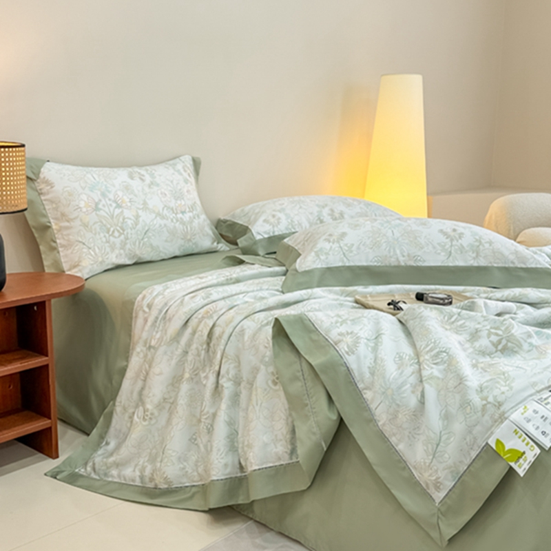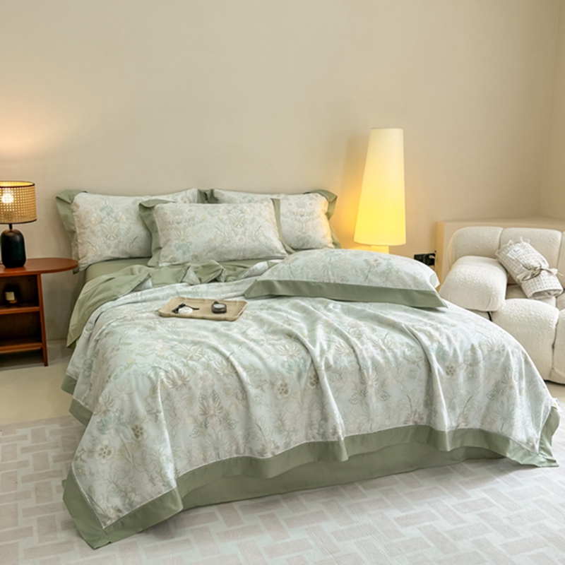 商品名称:若未2025新款法式莱赛尔天丝印花镂空夏被和夏被四件套 素瑾(绿)