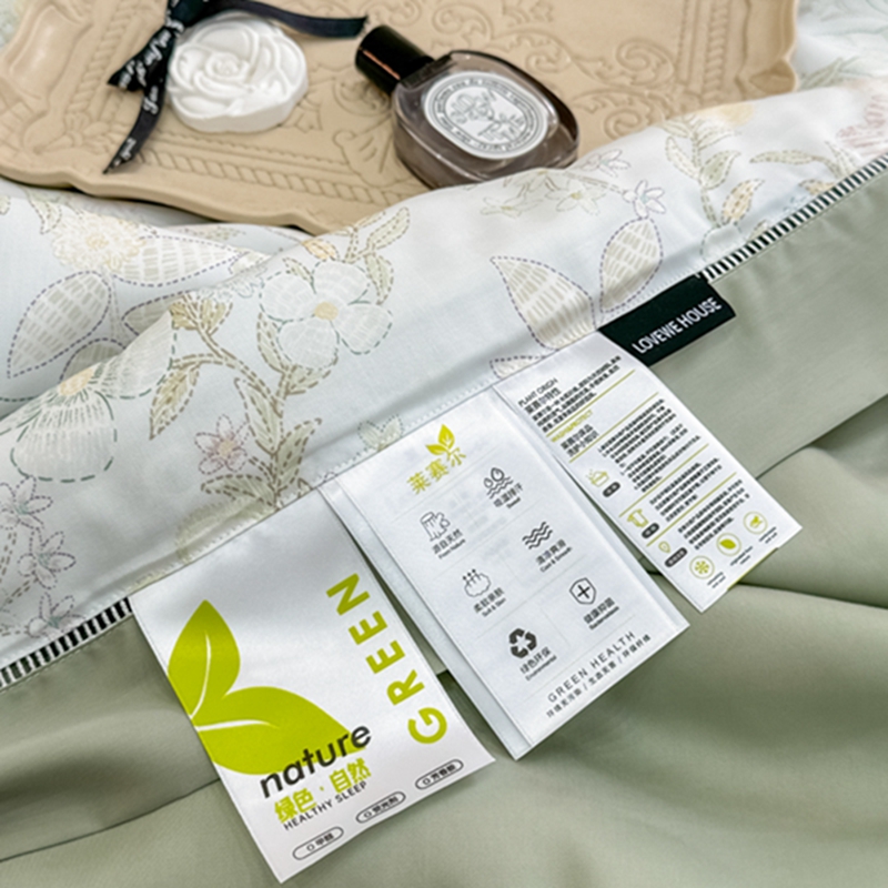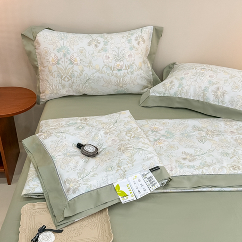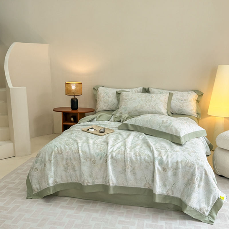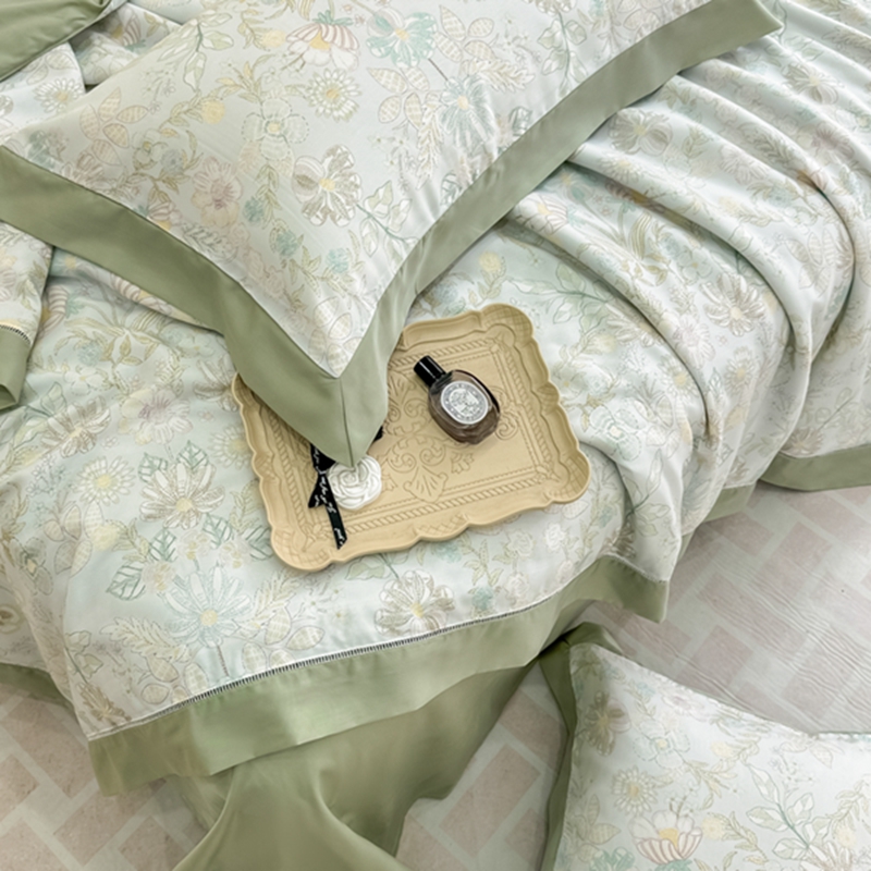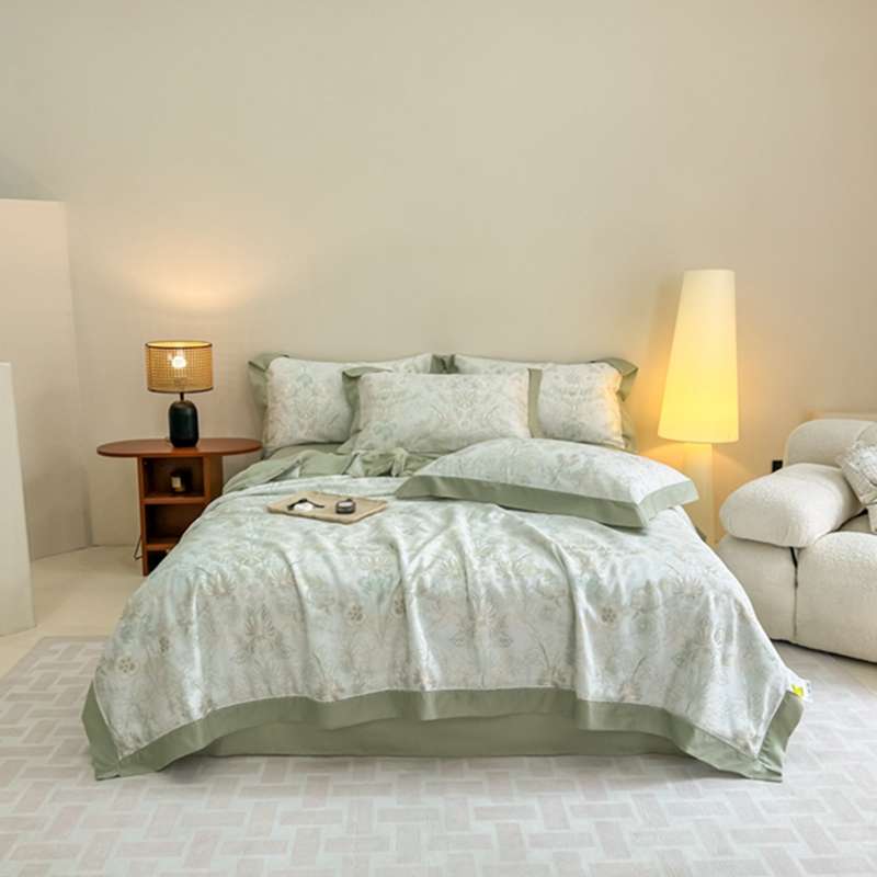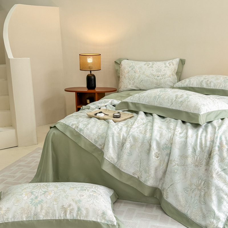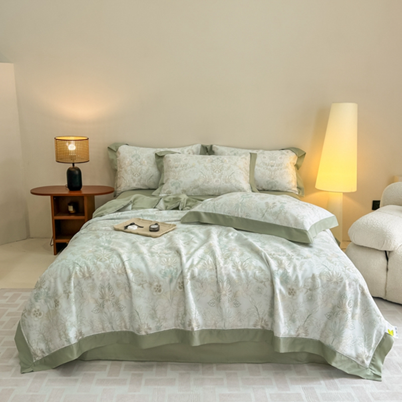 商品名称:若未2025新款法式莱赛尔天丝印花镂空夏被和夏被四件套 素瑾(绿)