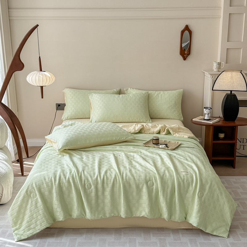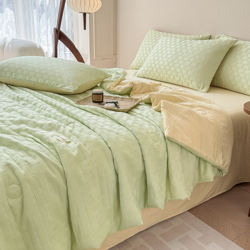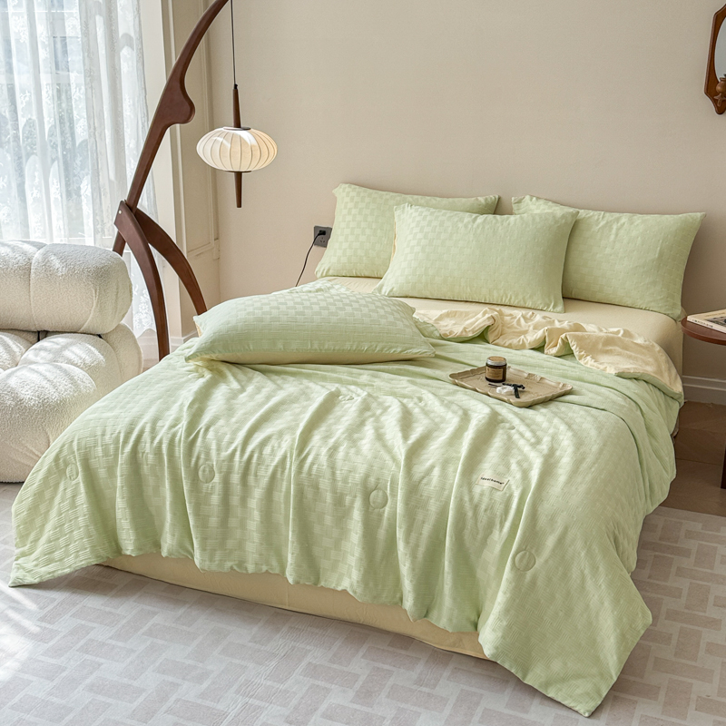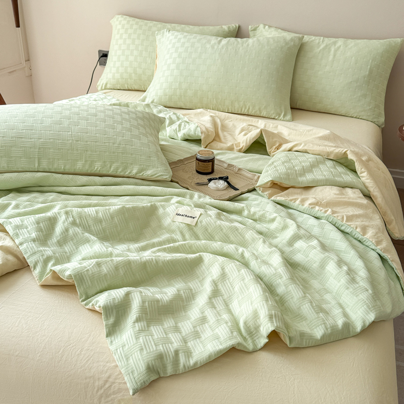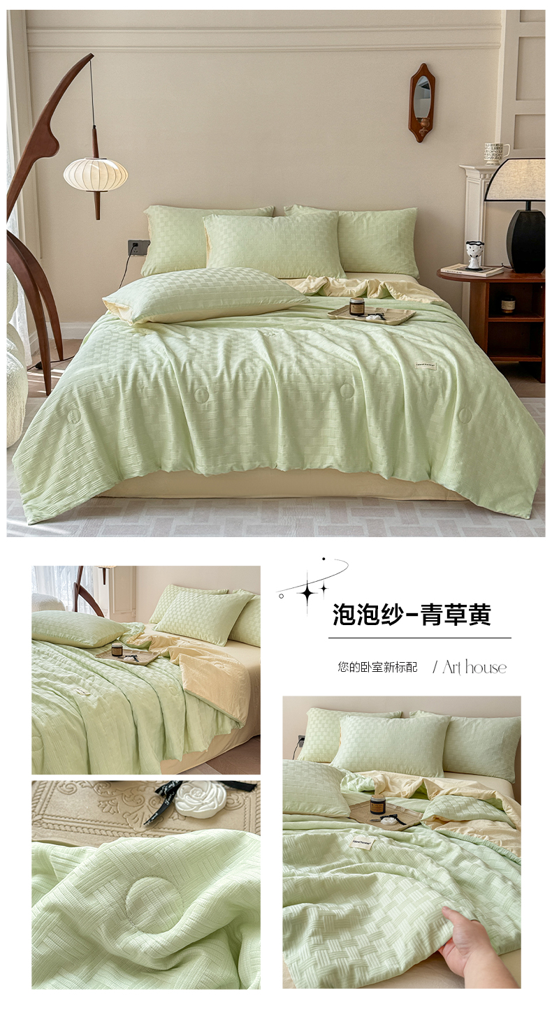 当前位置: 91家纺网 > 商品网购 > 床品套件 > 四件套 > 夏被四件套 > 2024沐辰家居-新款泡泡纱A类大豆纤维夏被四件套 青草黄