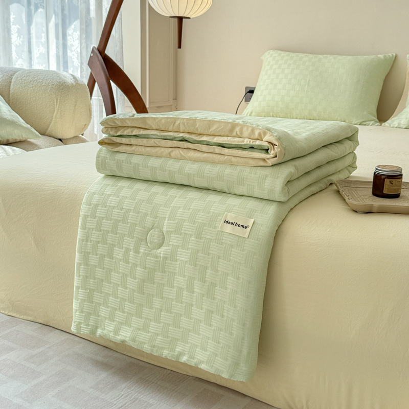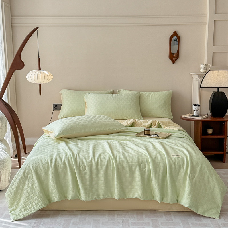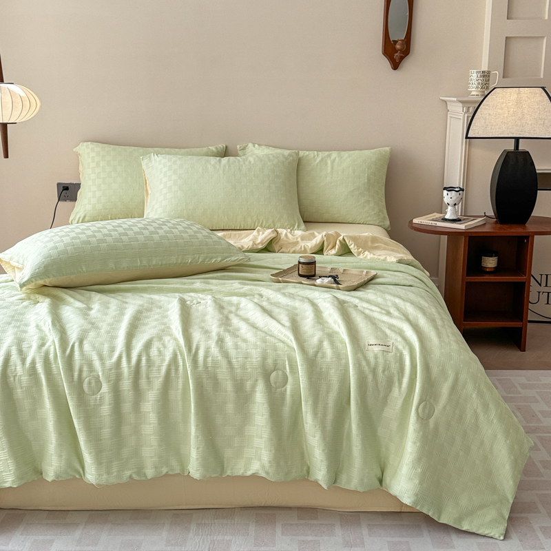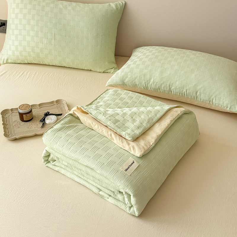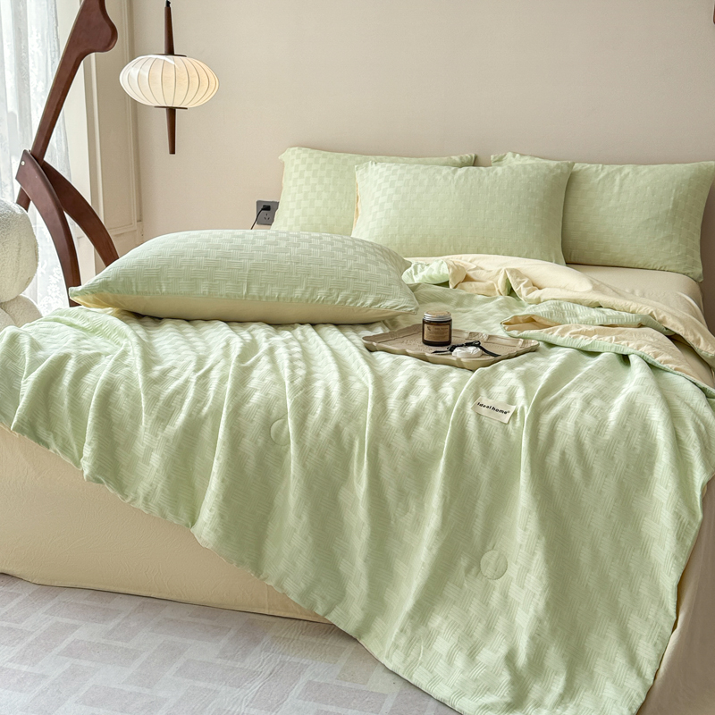 当前位置: 91家纺网 > 商品网购 > 床品套件 > 四件套 > 夏被四件套 > 2024沐辰家居-新款泡泡纱A类大豆纤维夏被四件套 青草黄