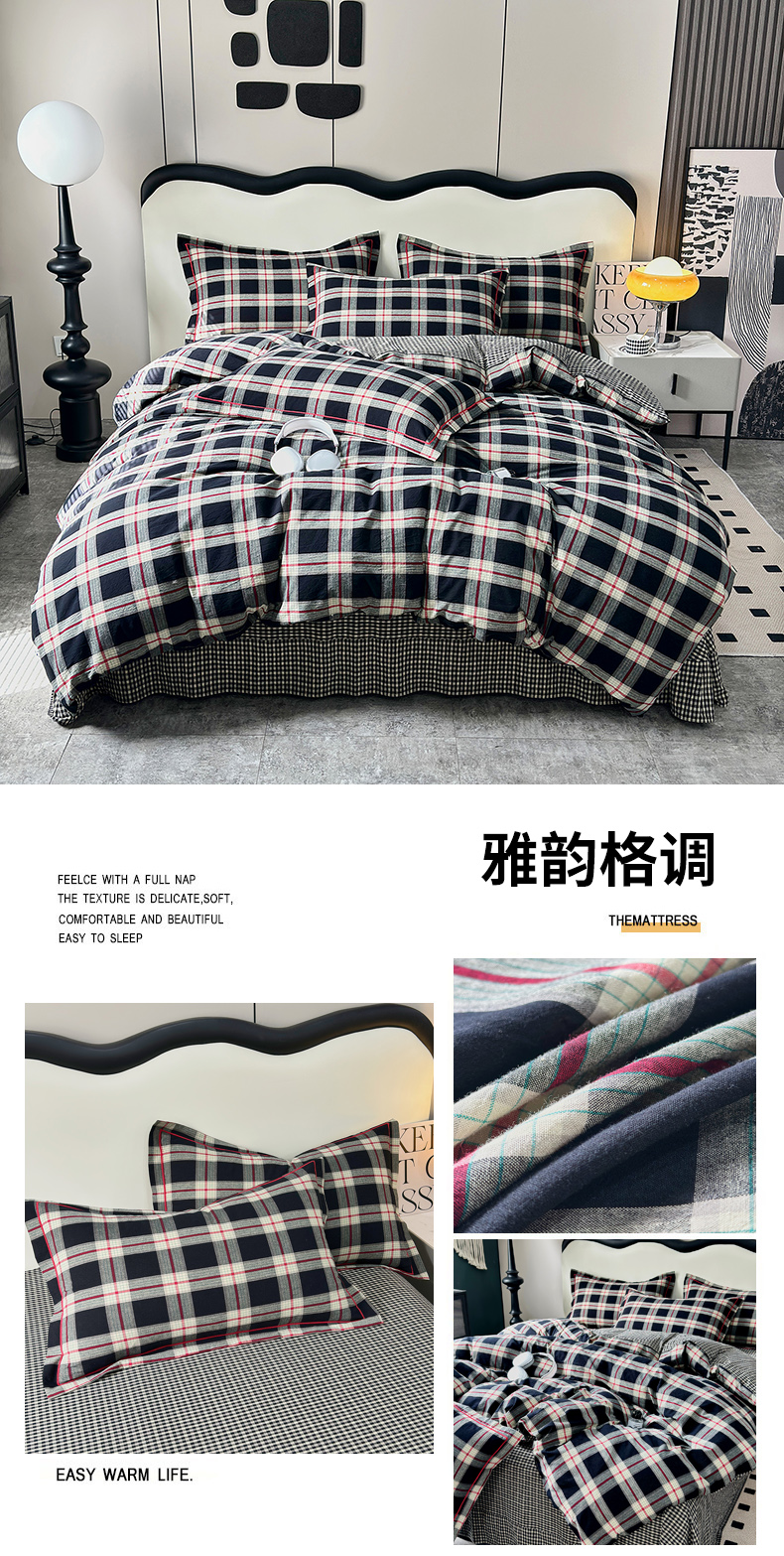 (总)三沁家居 2025新款格子色织全棉水洗棉四件套直播爆款量大价优