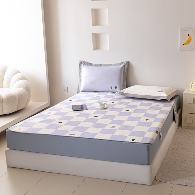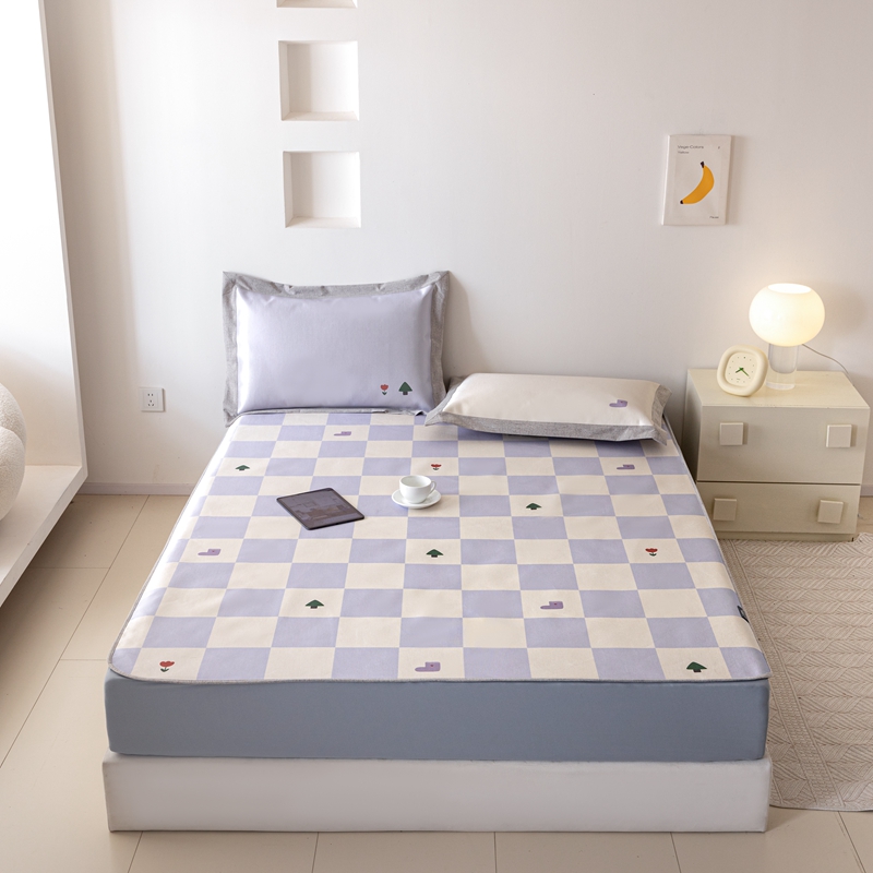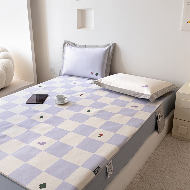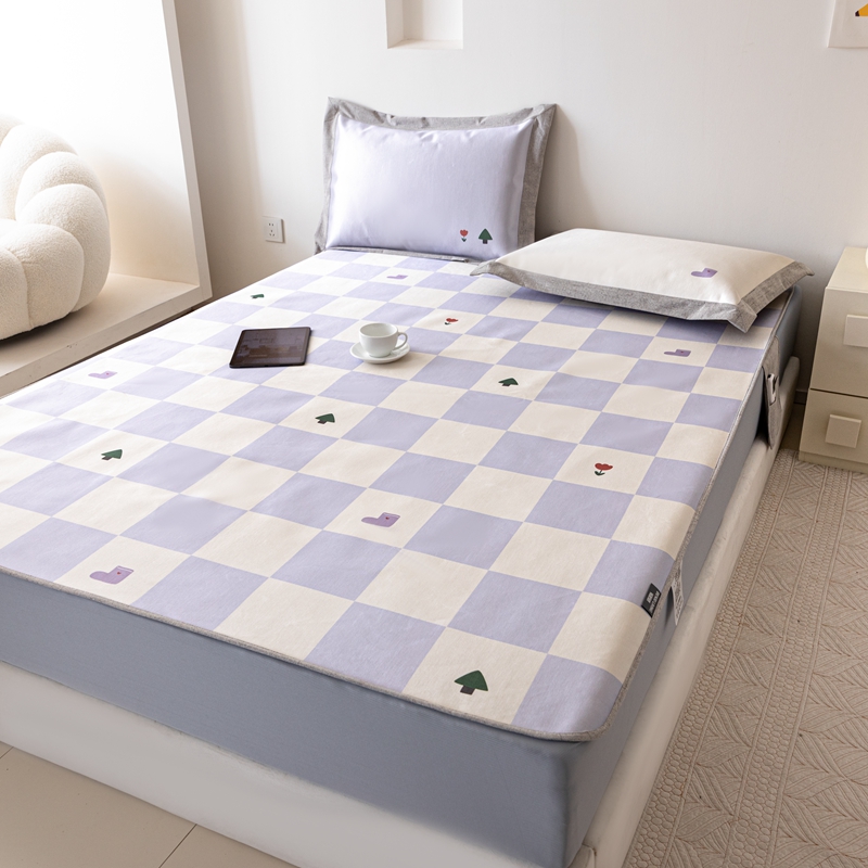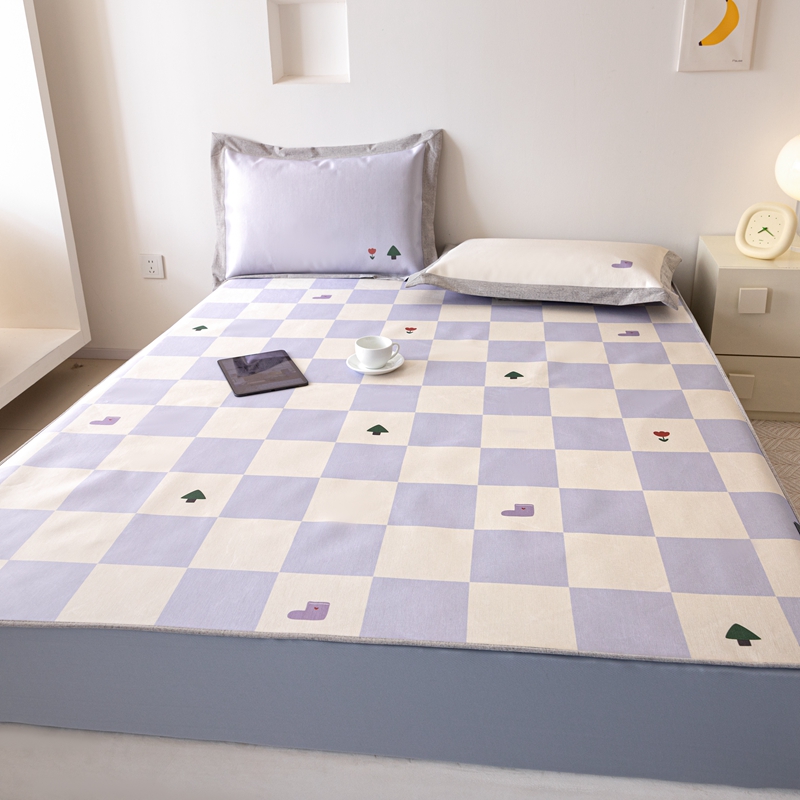 本希家居 2024新款花漾清新系列高端可水洗冰丝席 紫白方格床笠