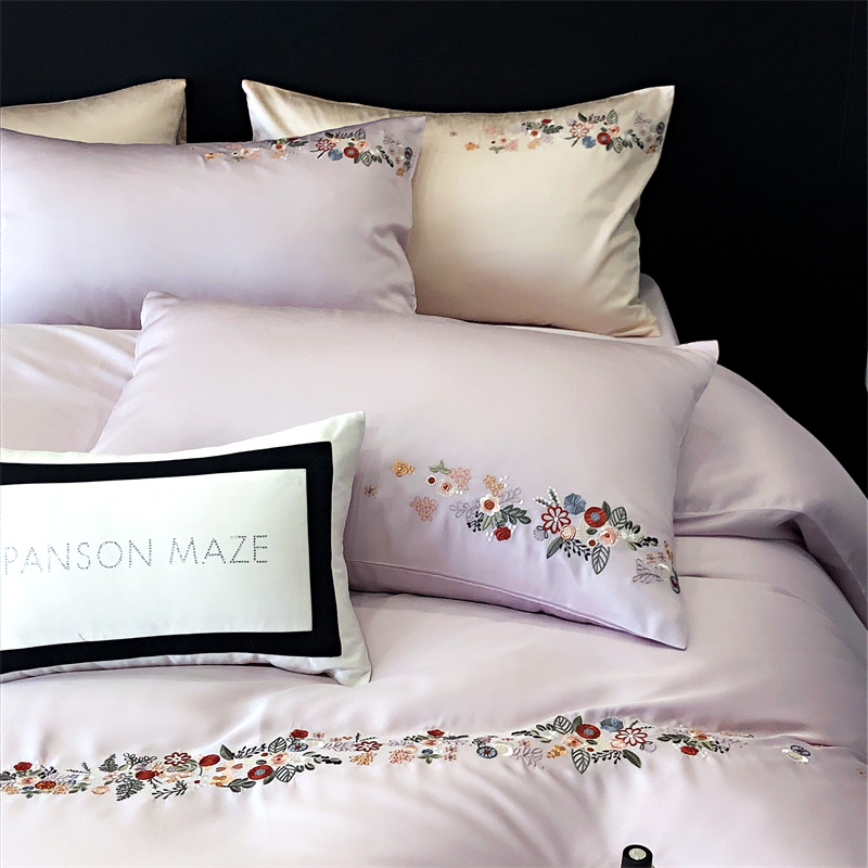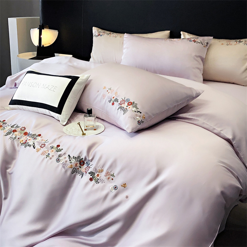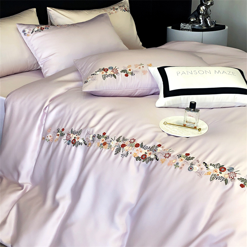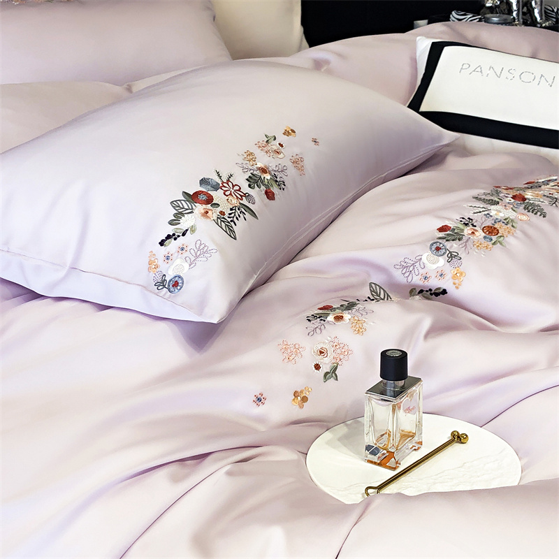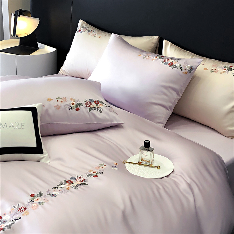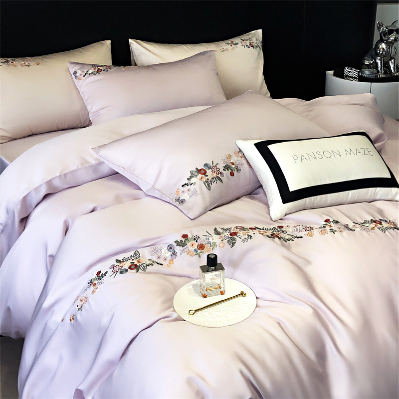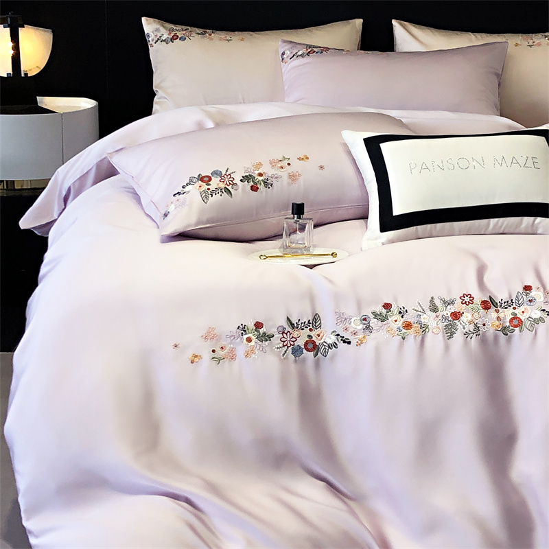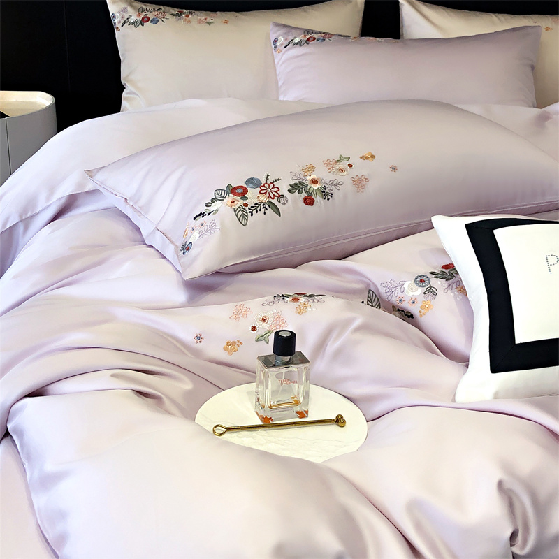 商品名称:云胡 2024新款A类进口莱赛尔纤维棉四件套-四月系列 四月-安琪紫