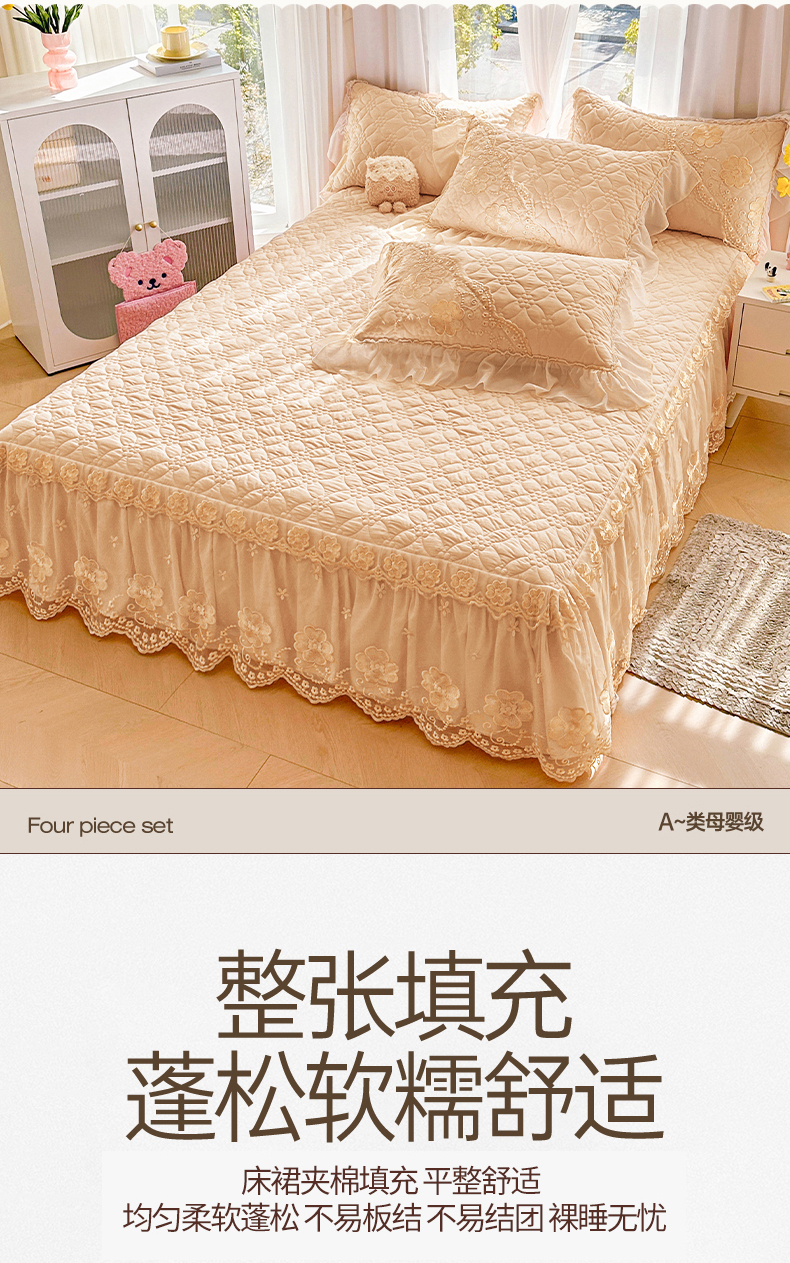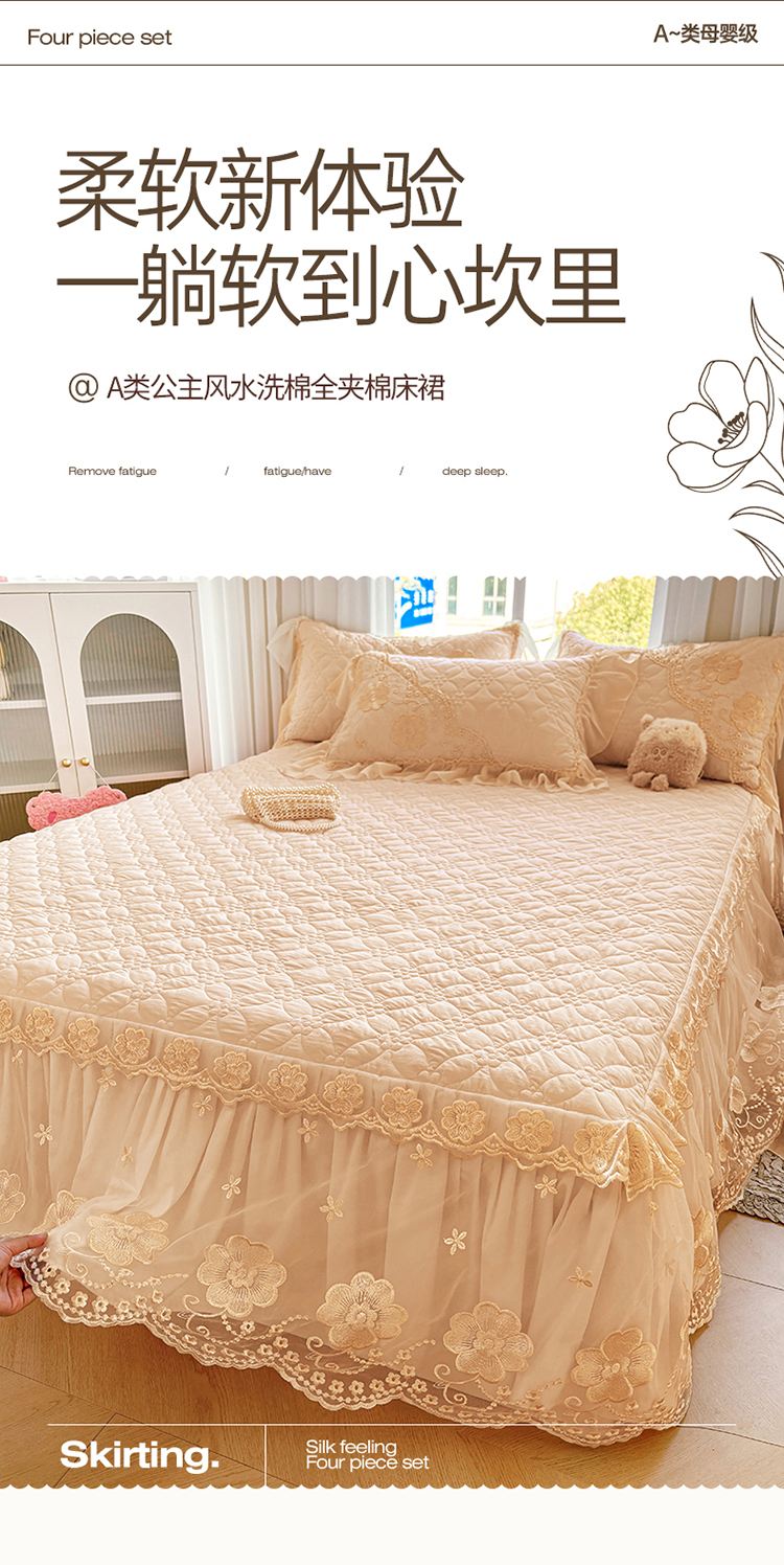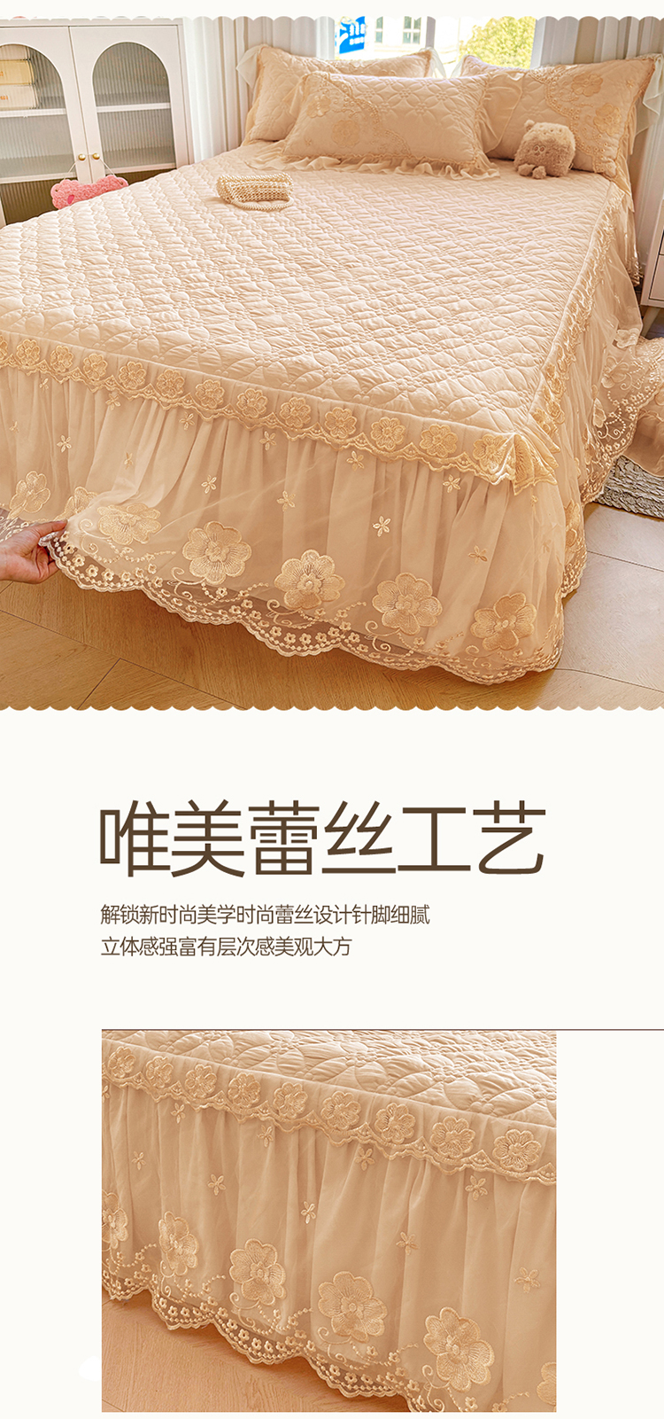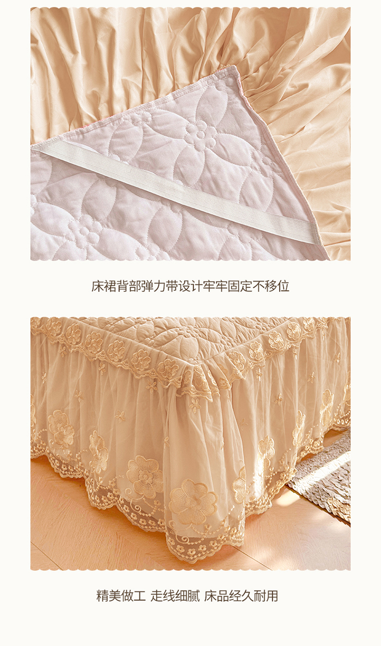 商品名称:罗艺轩 2024新款公主风水洗棉夹棉单床裙-浪漫满屋床 浪漫满屋-香槟