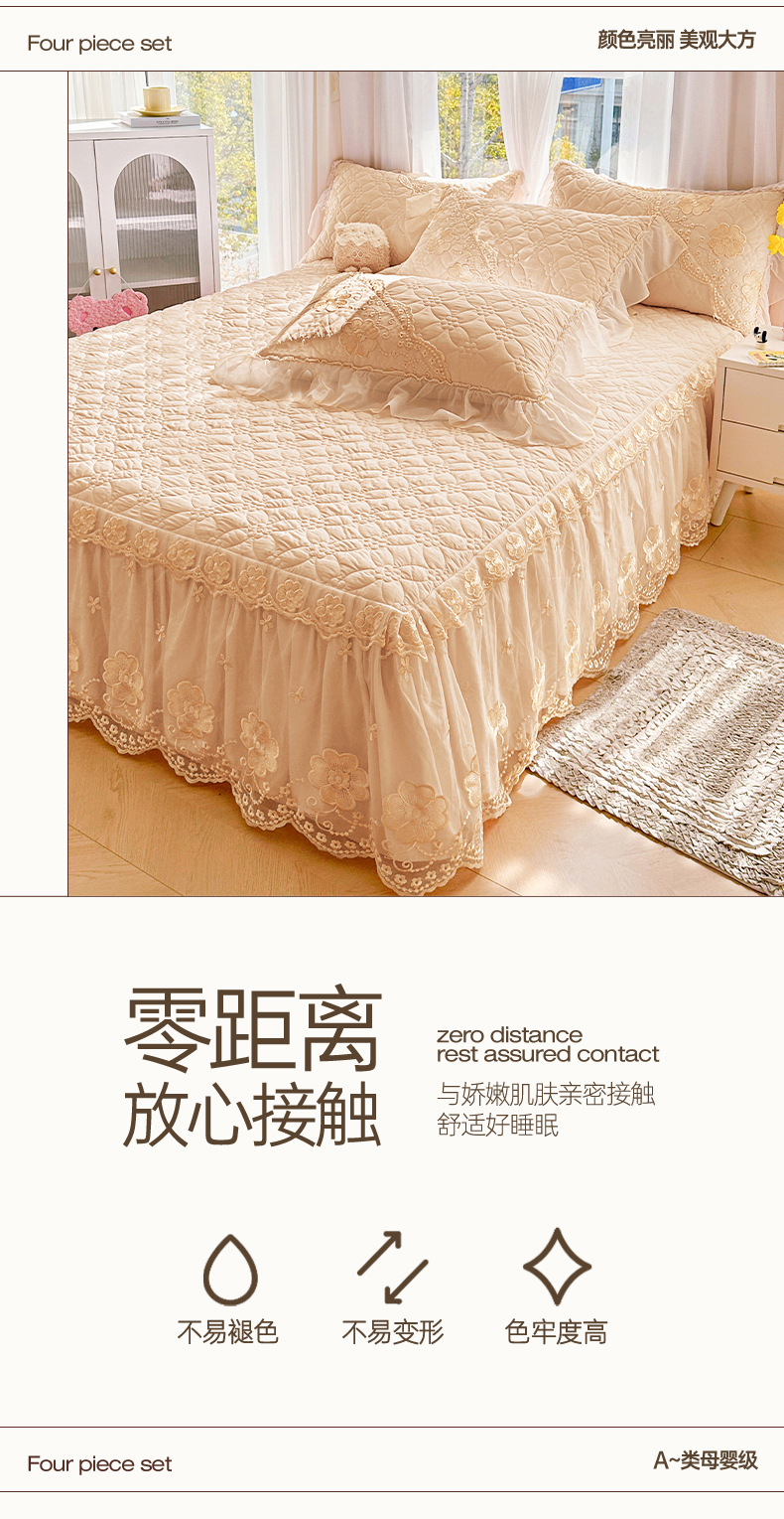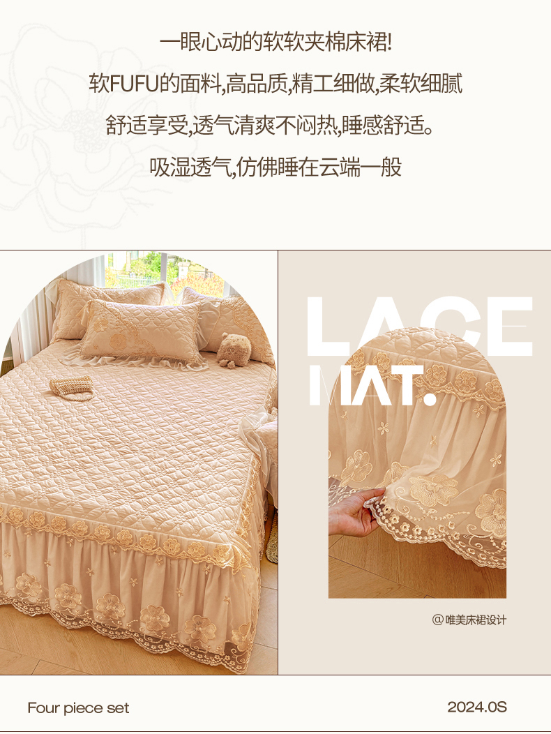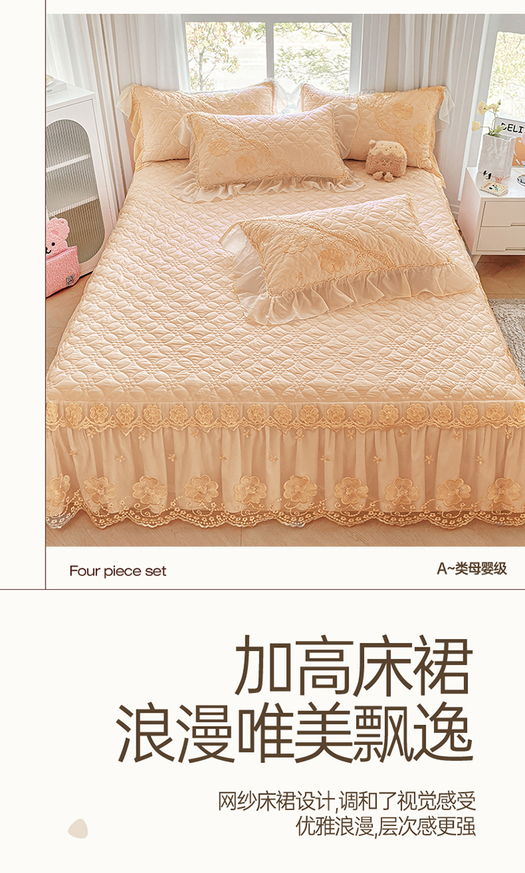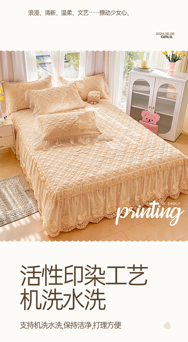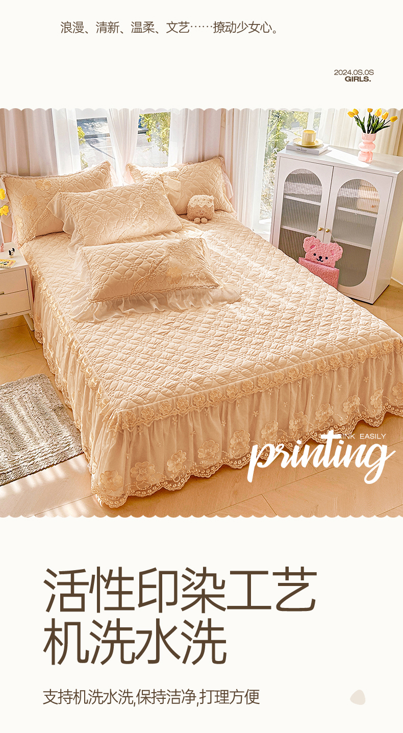 商品名称:罗艺轩 2024新款公主风水洗棉夹棉单床裙-浪漫满屋床 浪漫满屋-香槟