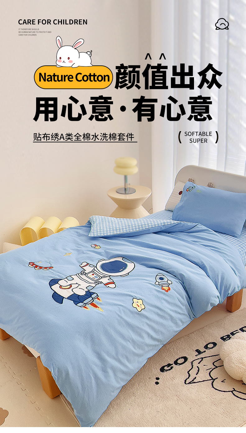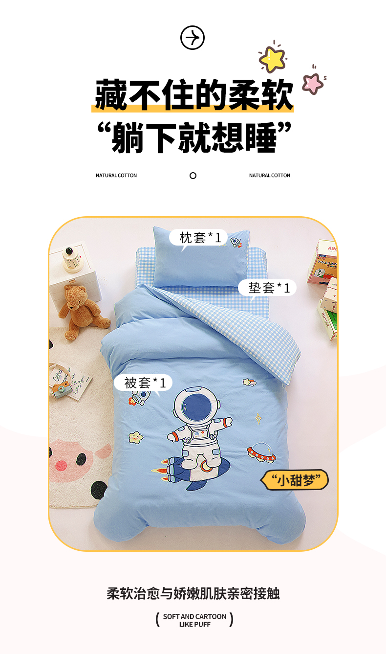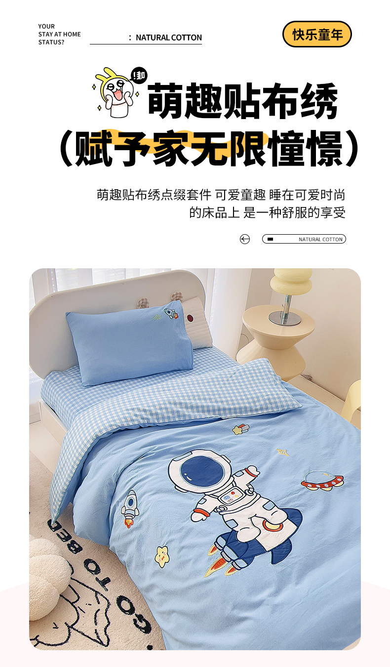 当前位置: 91家纺网 > 商品网购 > 床品套件 > 三件套 > 鱼宝 2025新款全棉水洗棉绣花幼儿园套件 火箭宇航员
