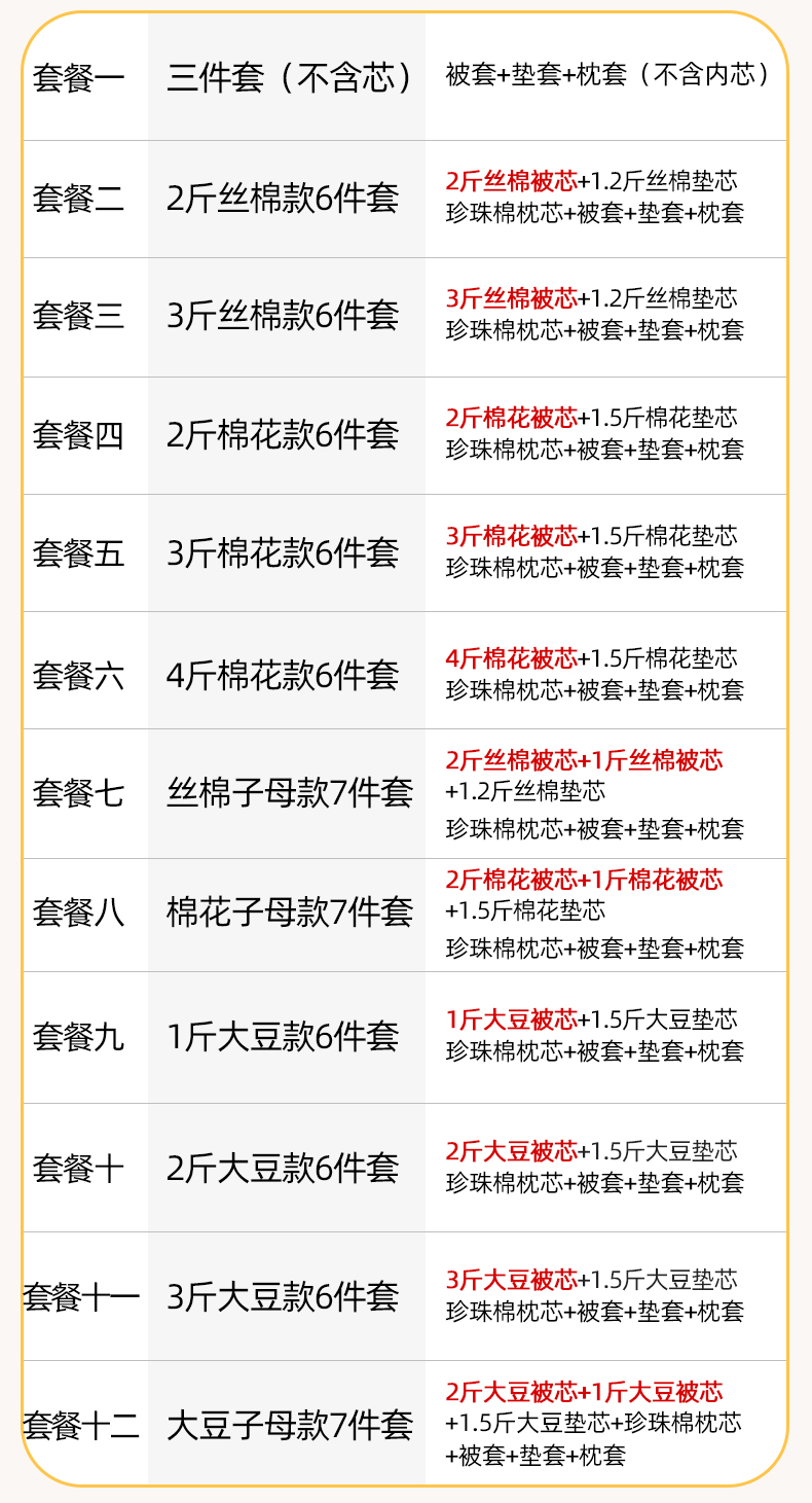 3斤水洗棉六件套(含芯) | ¥134.00 |