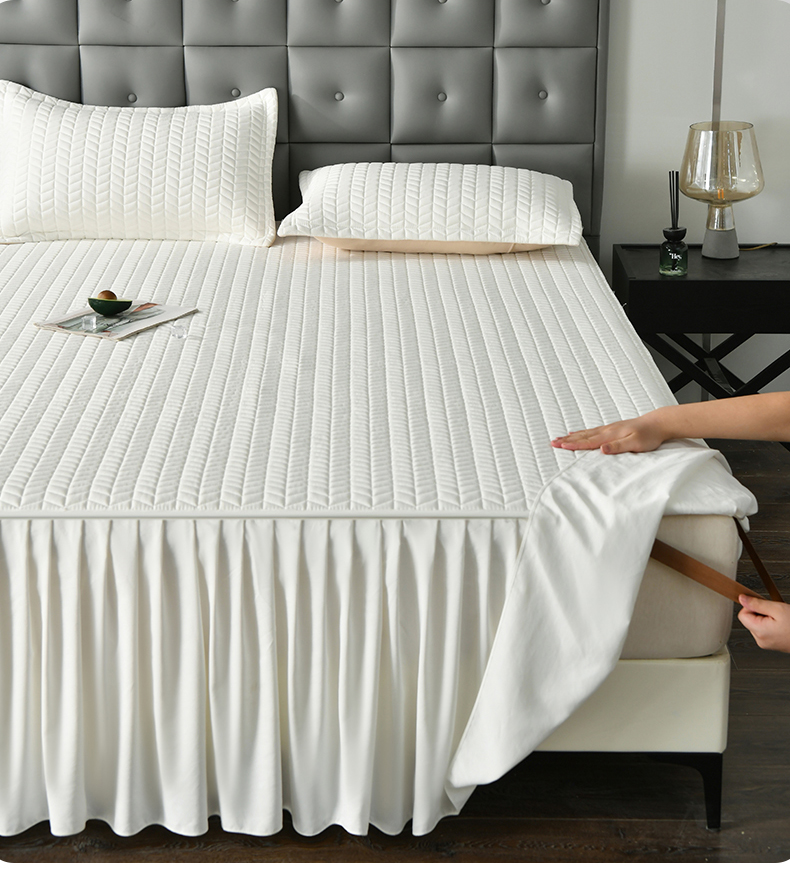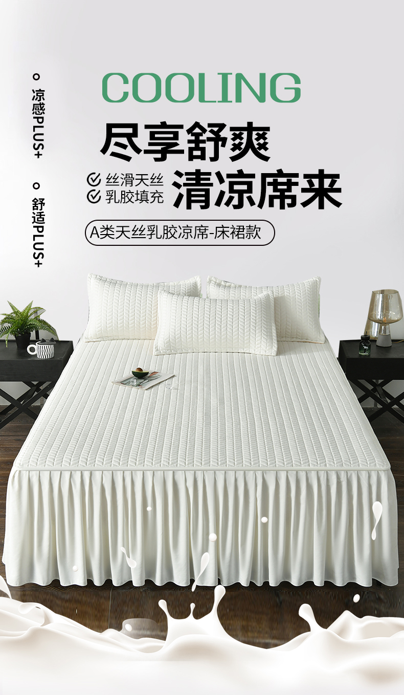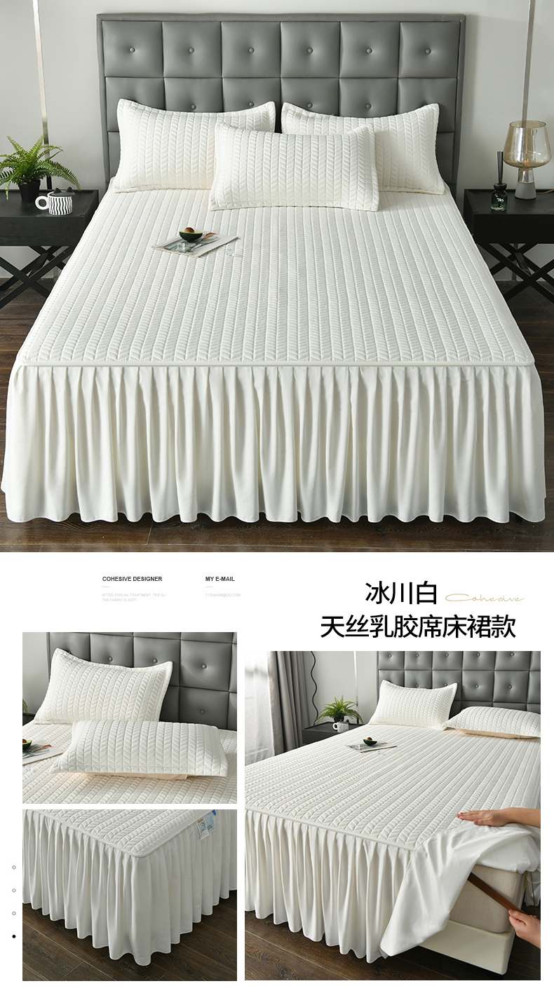 鑫钰 2024新款10mm加厚天丝乳胶凉席床裙款 床裙款-冰川白