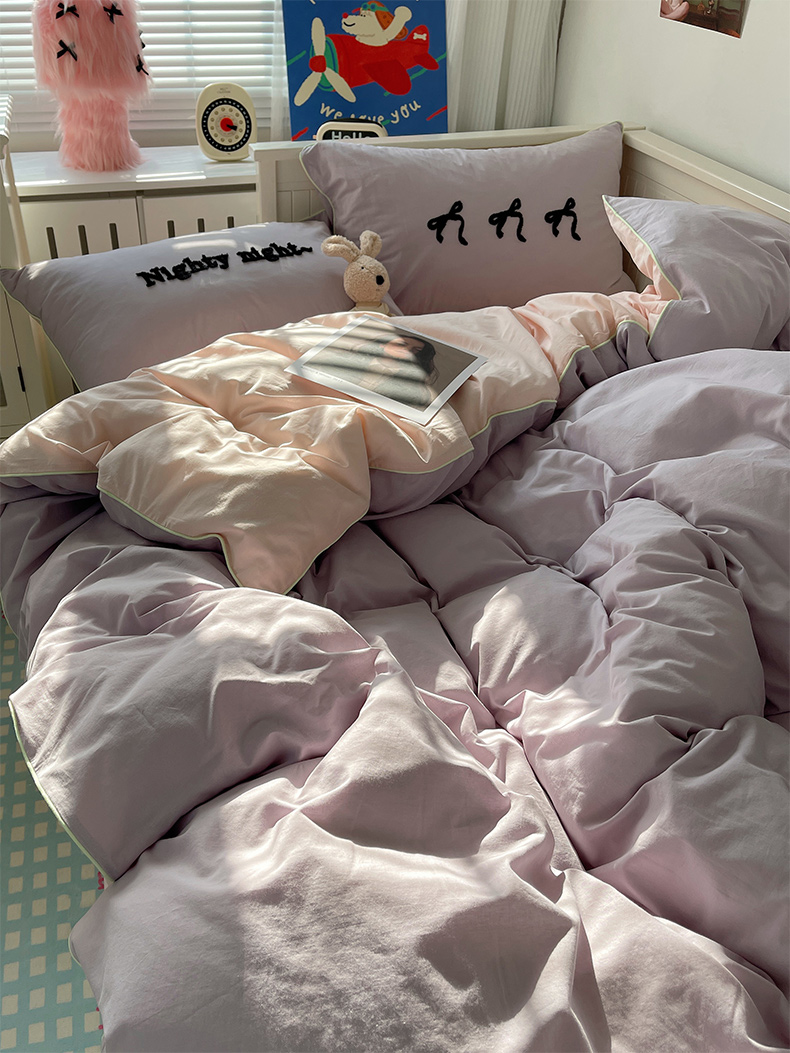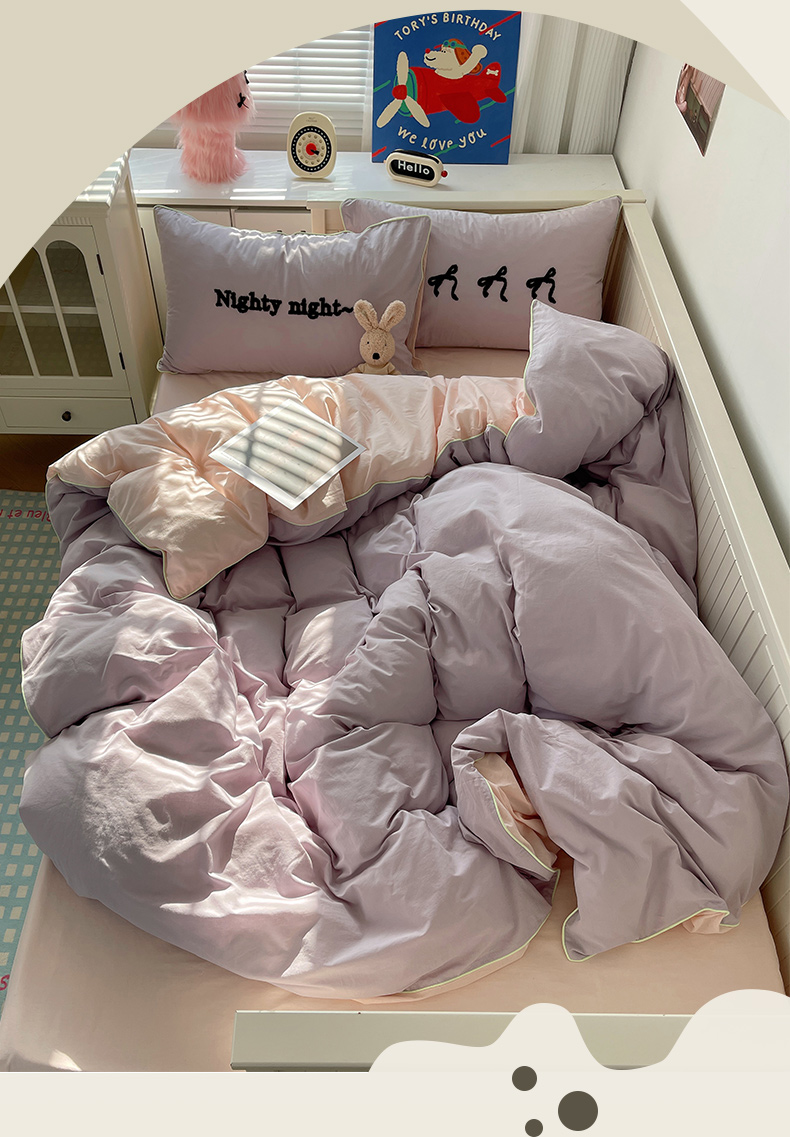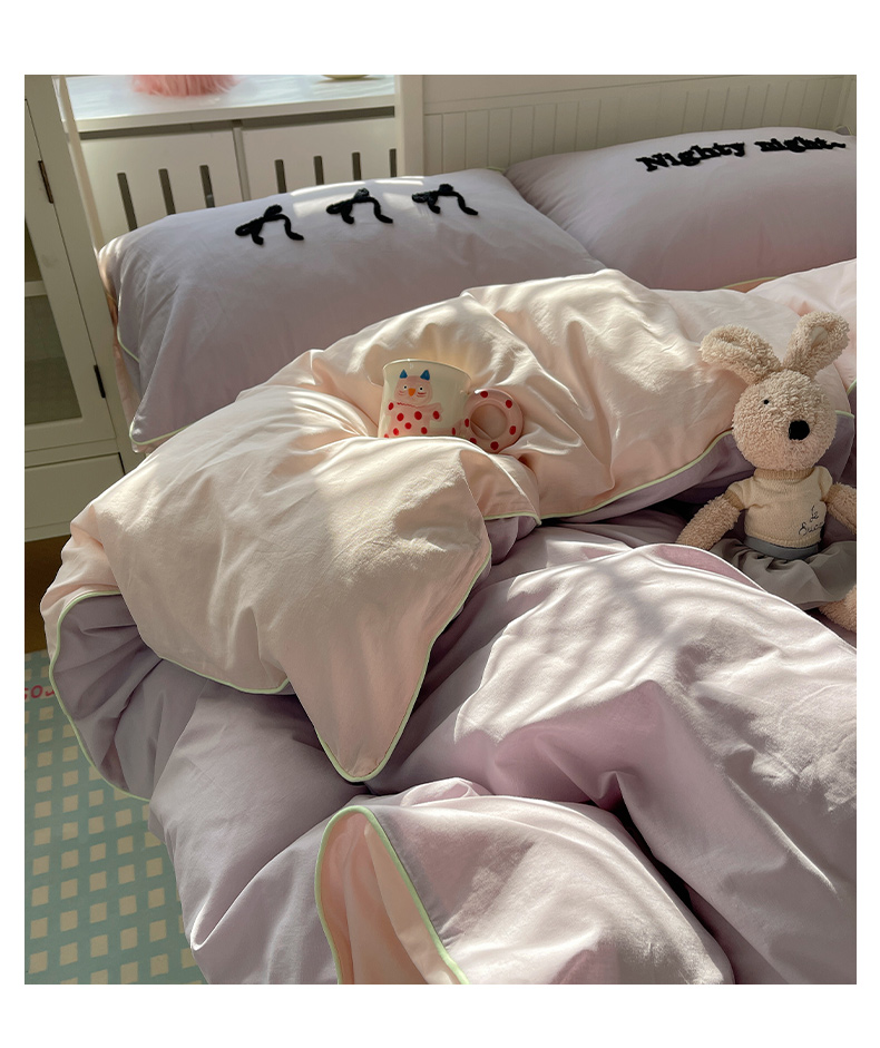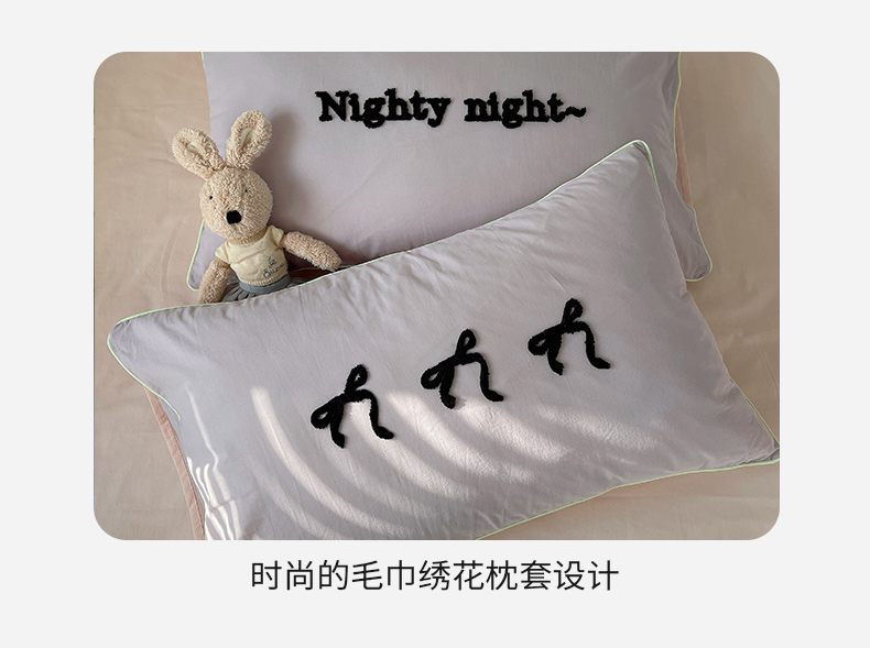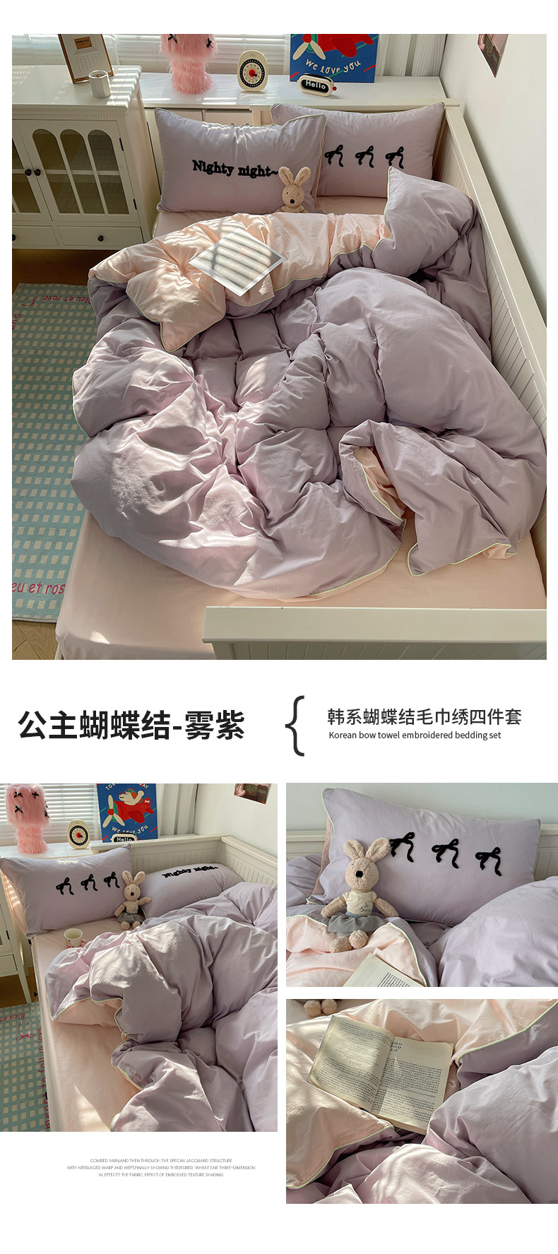 六巷胡同 2024新款INS韩系蝴蝶结毛巾绣嵌绳边四件套 公主蝴蝶结-雾紫