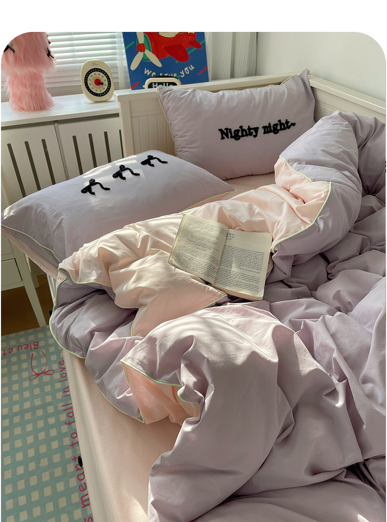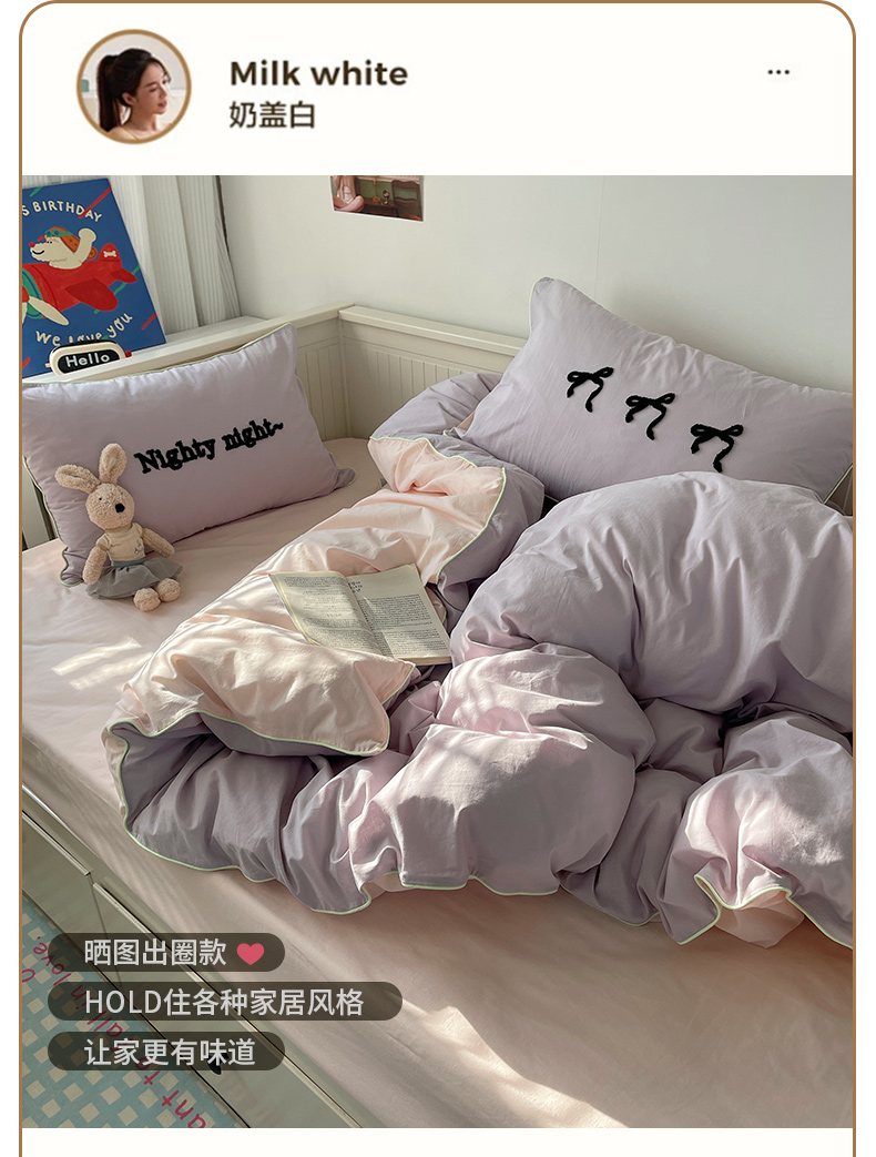 (总)六巷胡同 2026春夏新款INS博主风韩系蝴蝶结全棉四件套(自然光组),丝带蝴蝶结-蓝,丝带蝴蝶结-粉,丝带蝴蝶结-黑,丝带蝴蝶结-紫