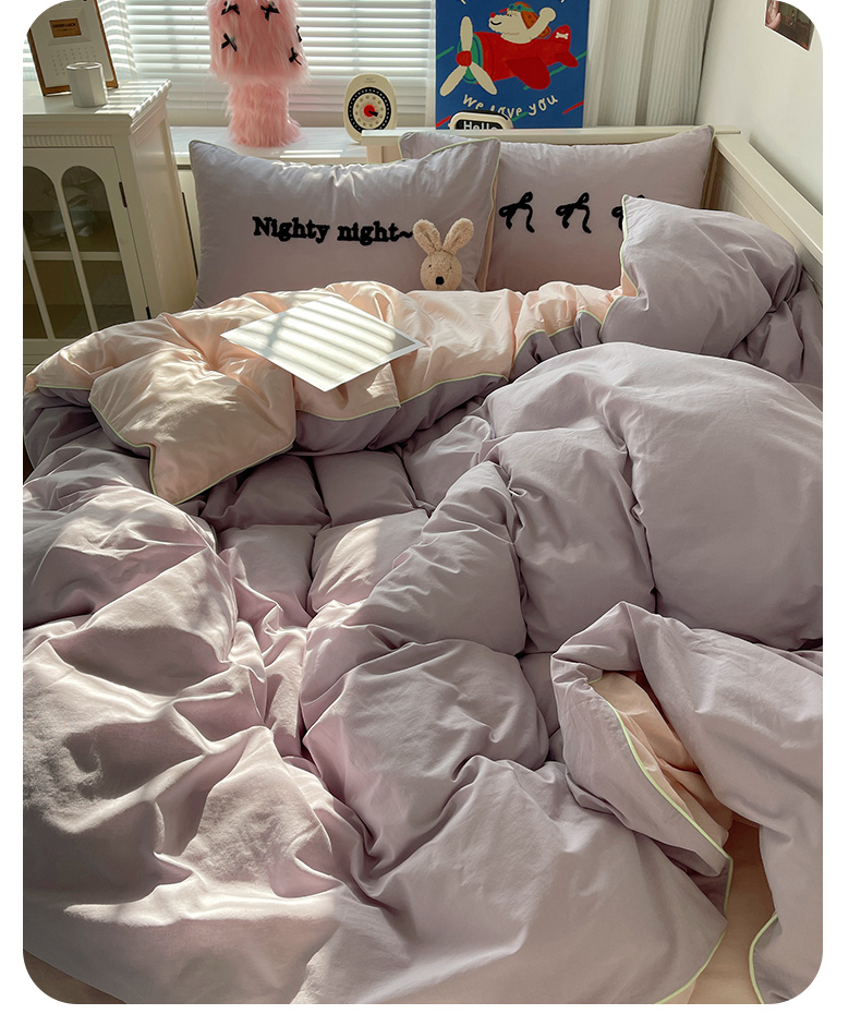 商品名称:六巷胡同 2024新款INS韩系蝴蝶结毛巾绣嵌绳边四件套 公主蝴蝶结-雾紫