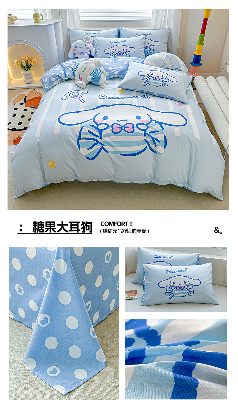 当前位置: 91家纺网 > 商品网购 > 床品套件 > 四件套 > 全棉活性四件套 > 爱丽丝 2024新款40支全棉数码印花正版授权三丽鸥系列四件套(含5元防伪码) 糖果大耳狗
