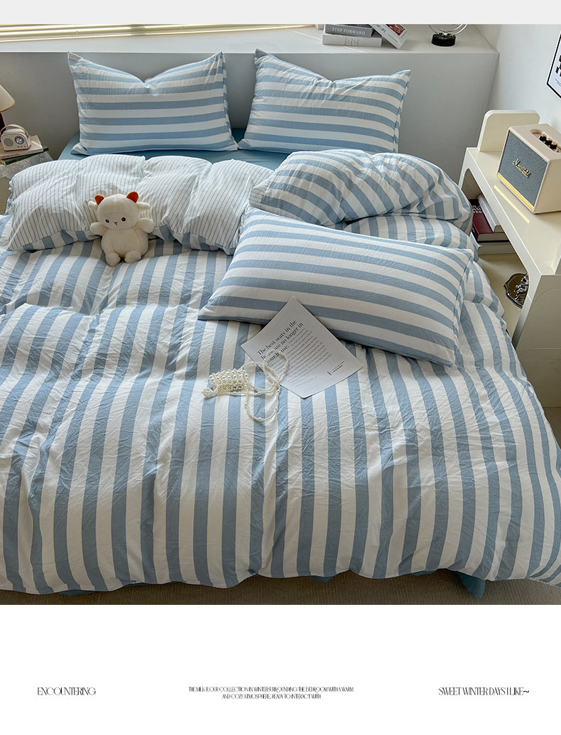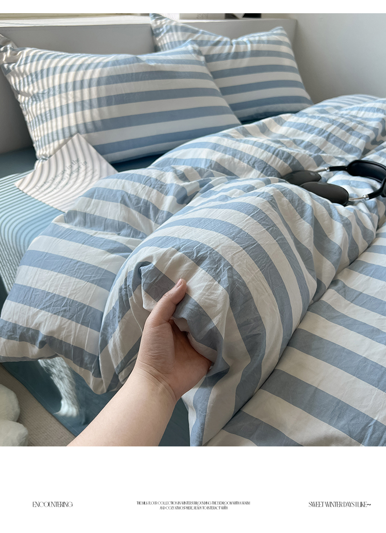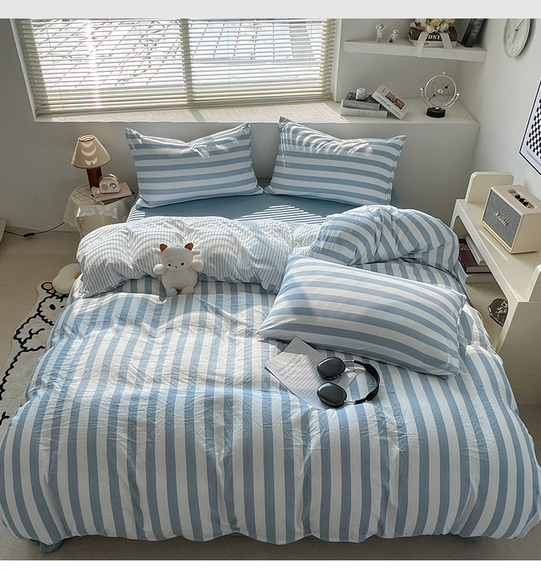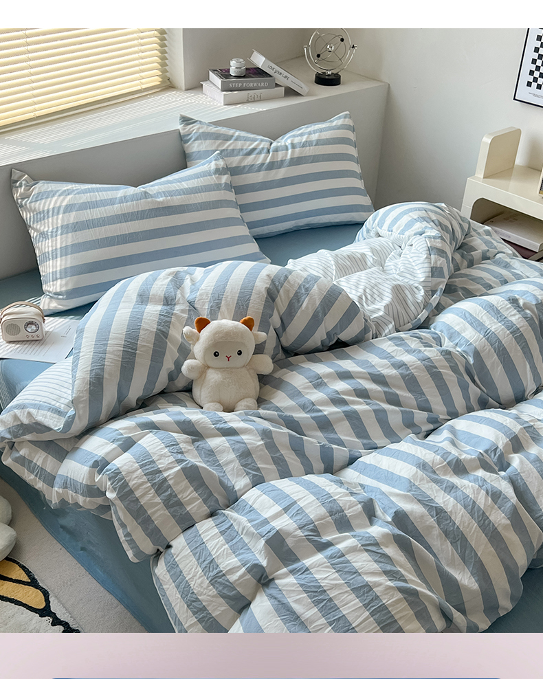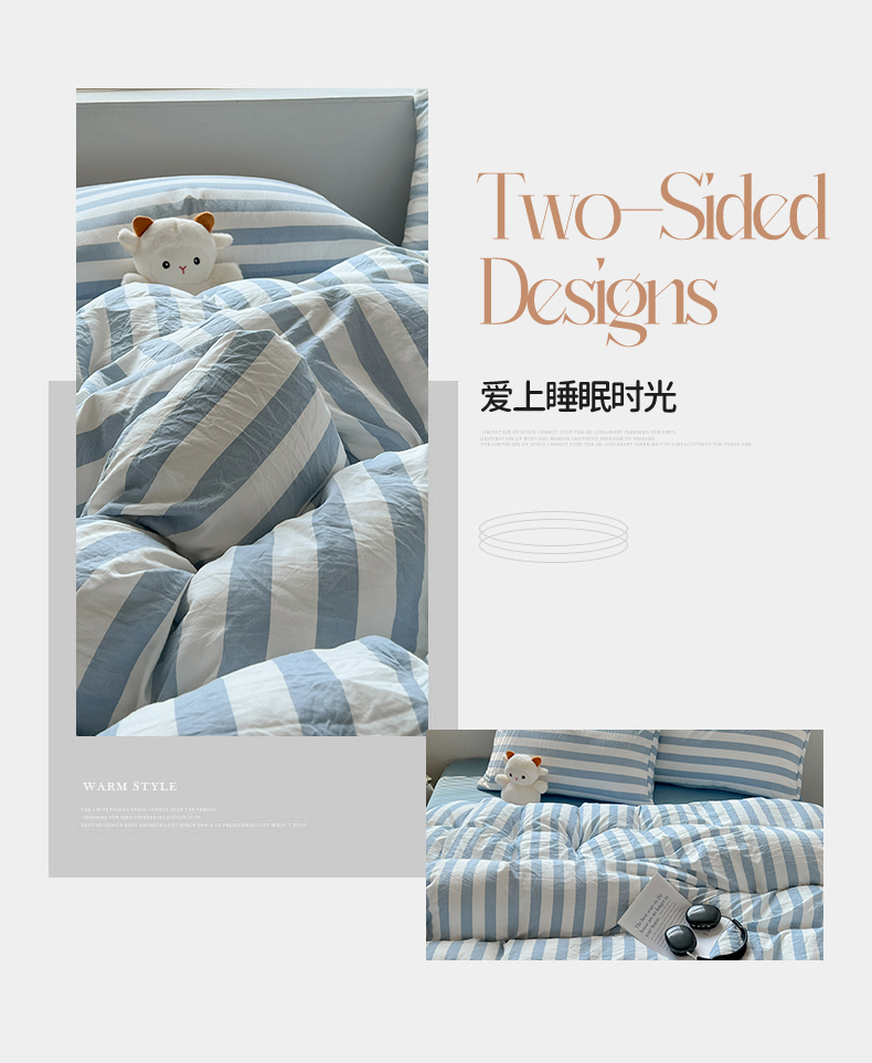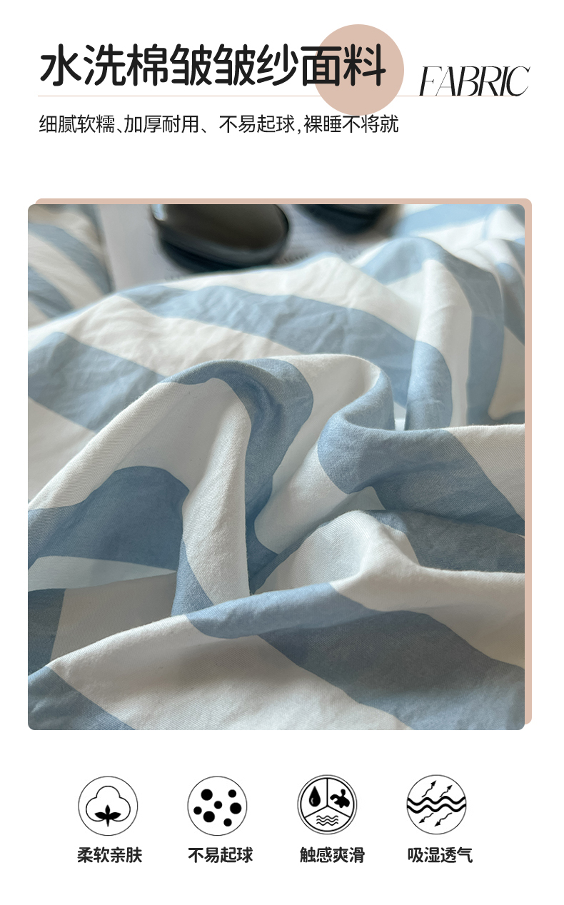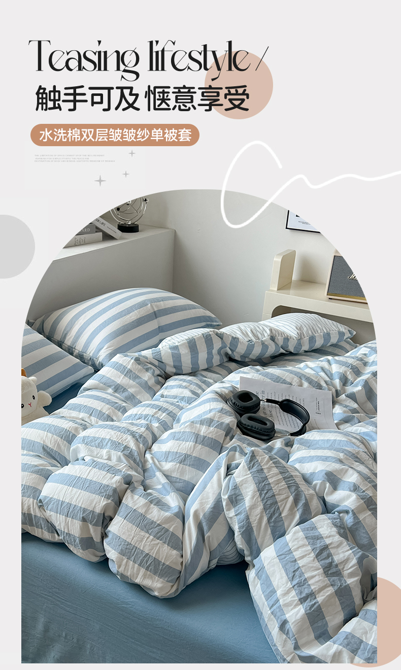 • 91家纺网 家纺一手货源 找家纺 多品 2024新款高克重水洗棉双层纱皱皱纱单品被套 星蓝