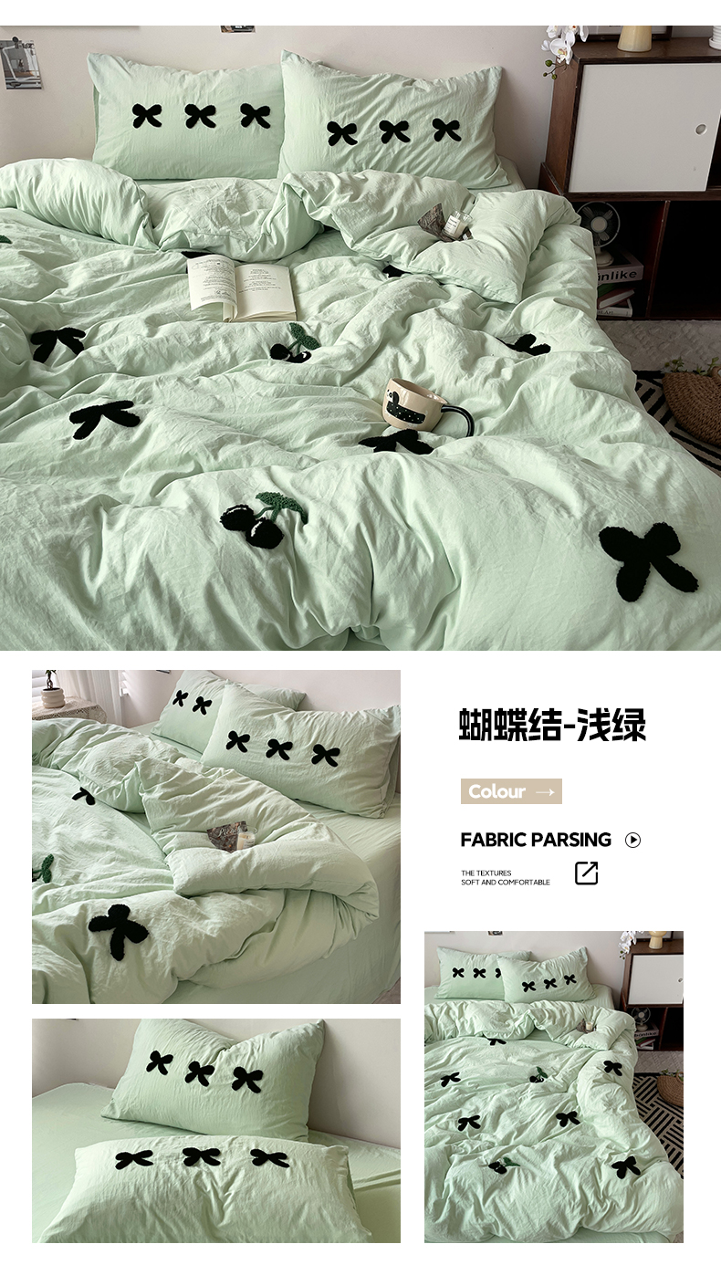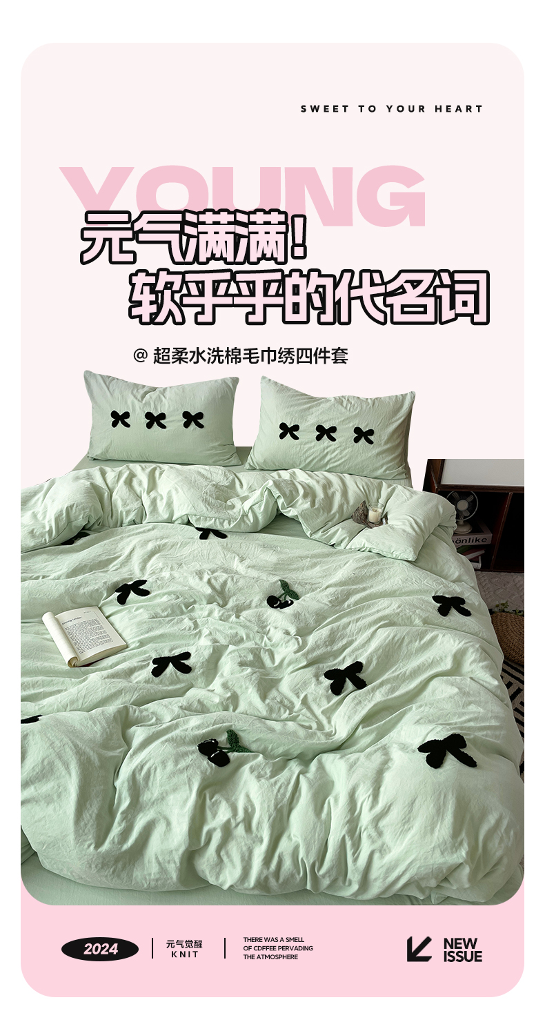 当前位置: 91家纺网 > 商品网购 > 床品套件 > 四件套 > 毛巾绣四件套 > 水墨江南 2024新款超柔水洗棉毛巾绣四件套-蝴蝶结 蝴蝶结-浅绿