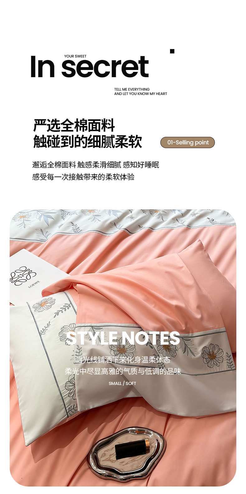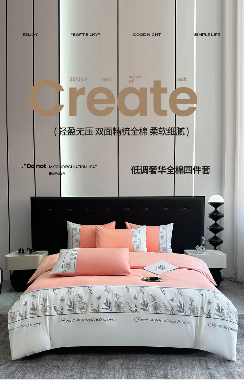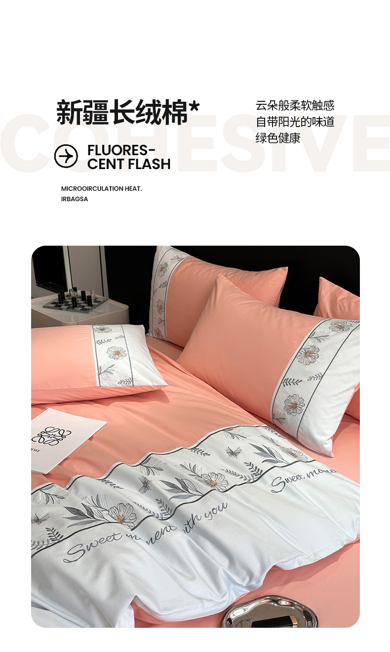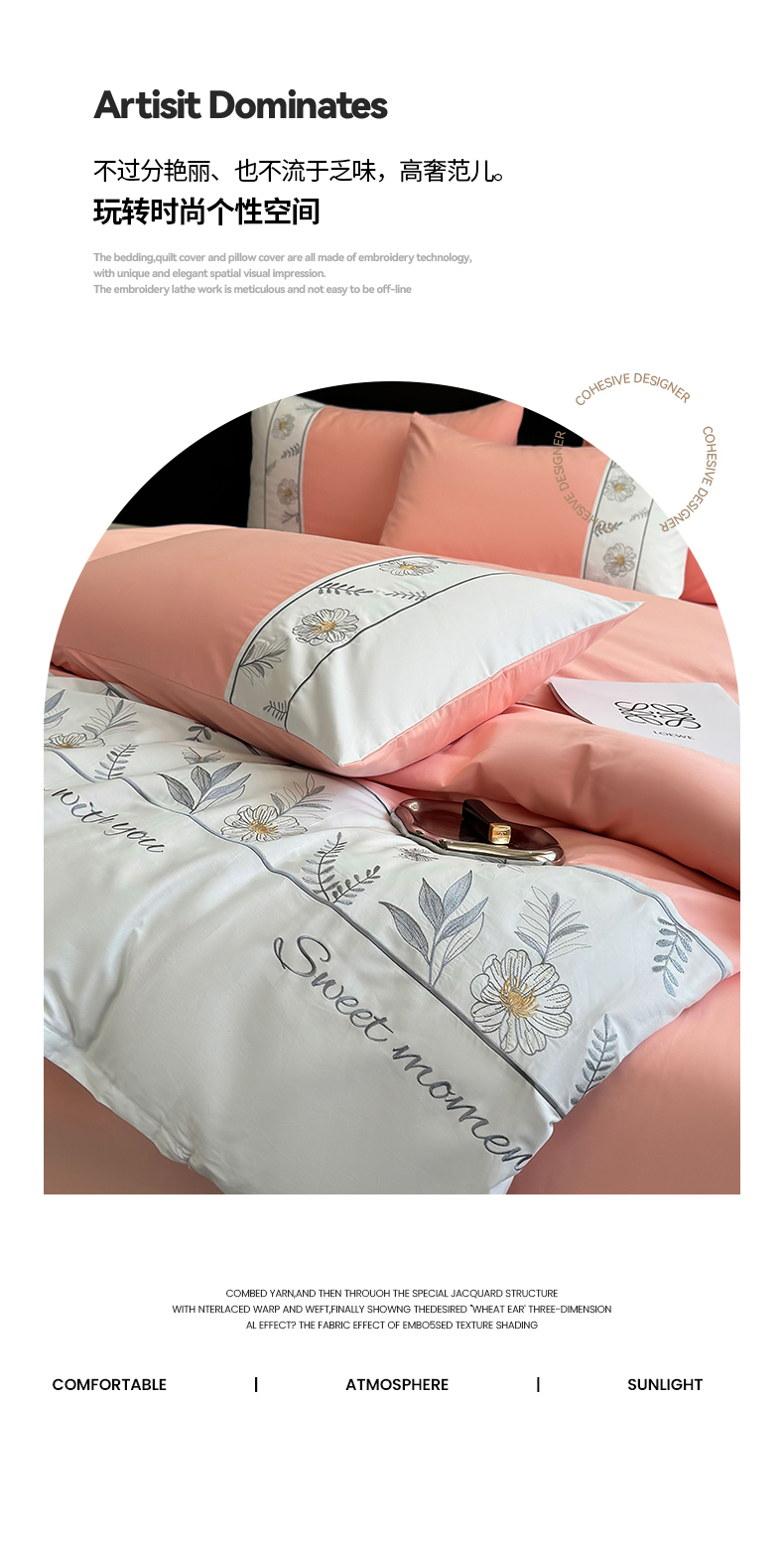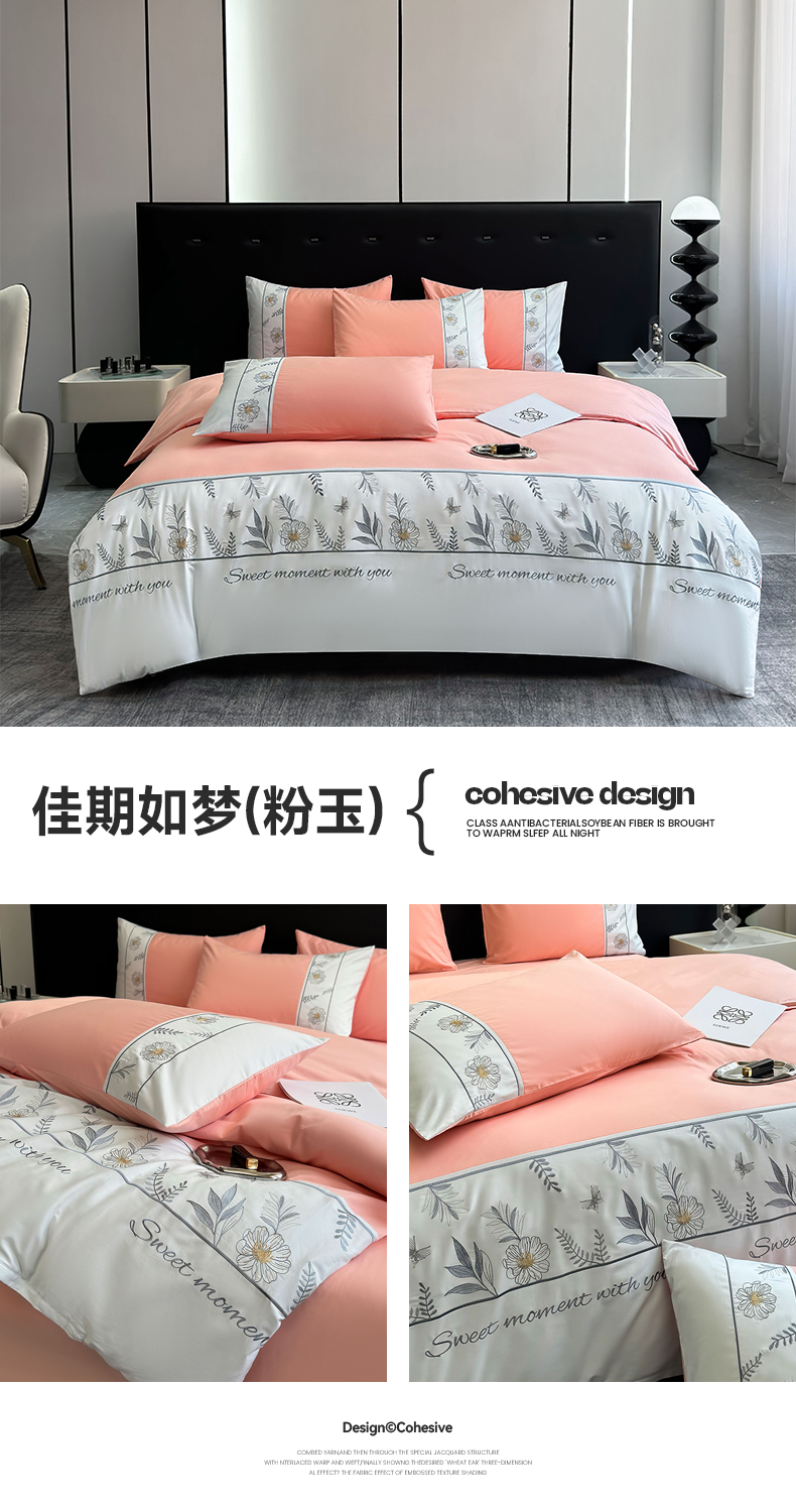 商品名称:2024秋冬新款高密度全棉四件套-佳期如梦 佳期如梦(粉玉)
