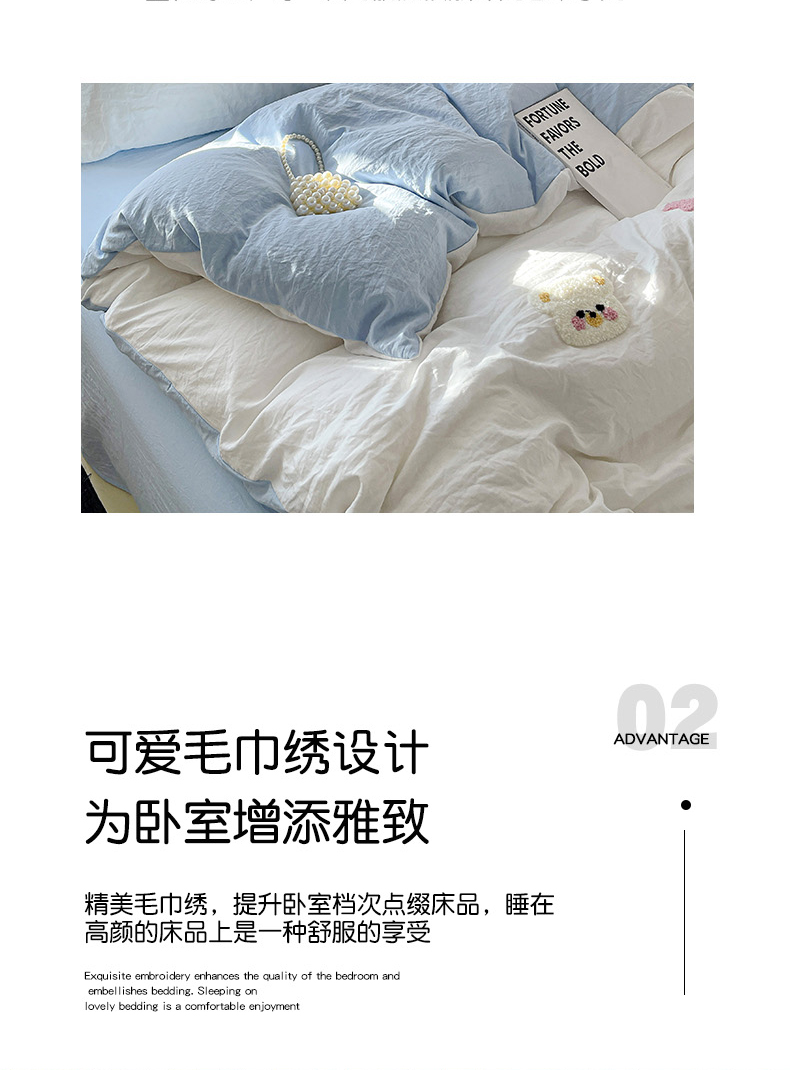 韩巢家纺 2024新款超柔水洗棉毛巾绣单件被套-幸运熊系列(提供精美卖家秀 ) 幸运熊白蓝
