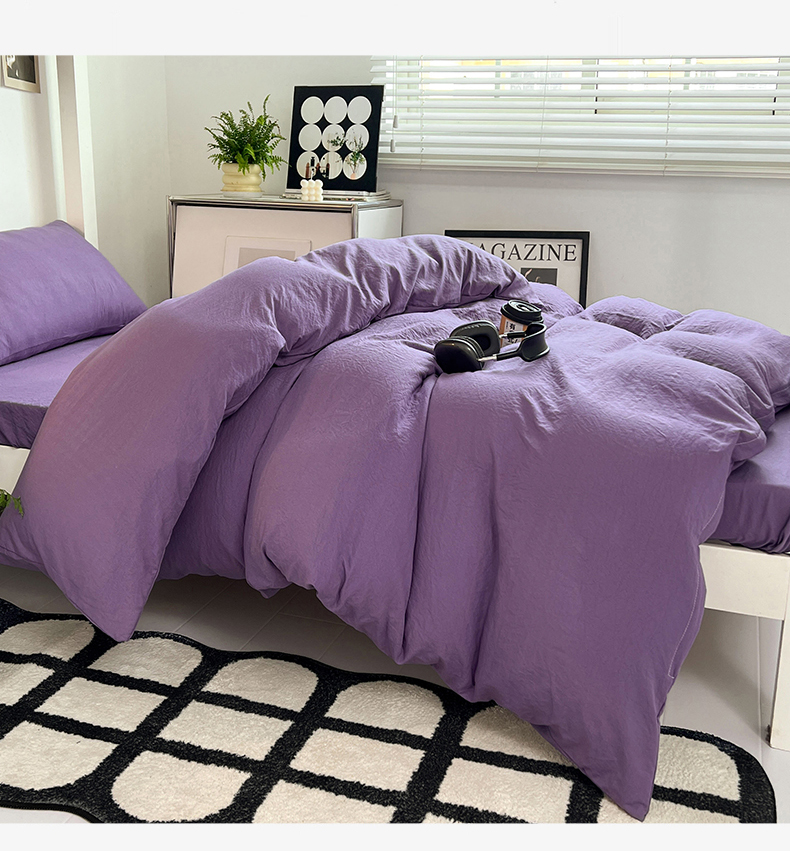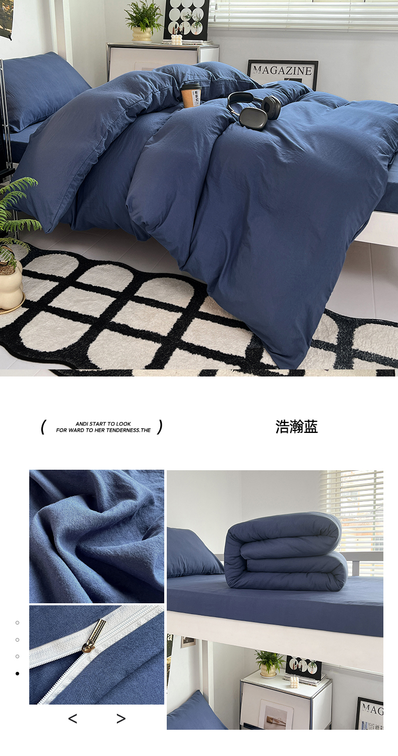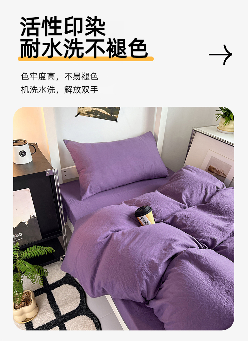 (总)贝拉梦家纺 2024新款褶皱炒鸡糯纯色水洗棉学生床三件套
