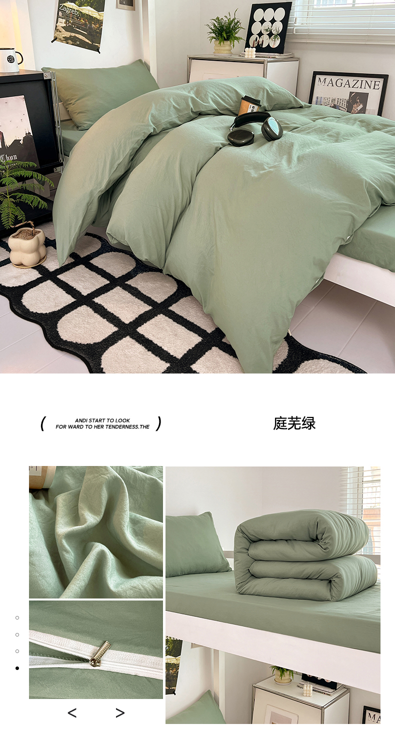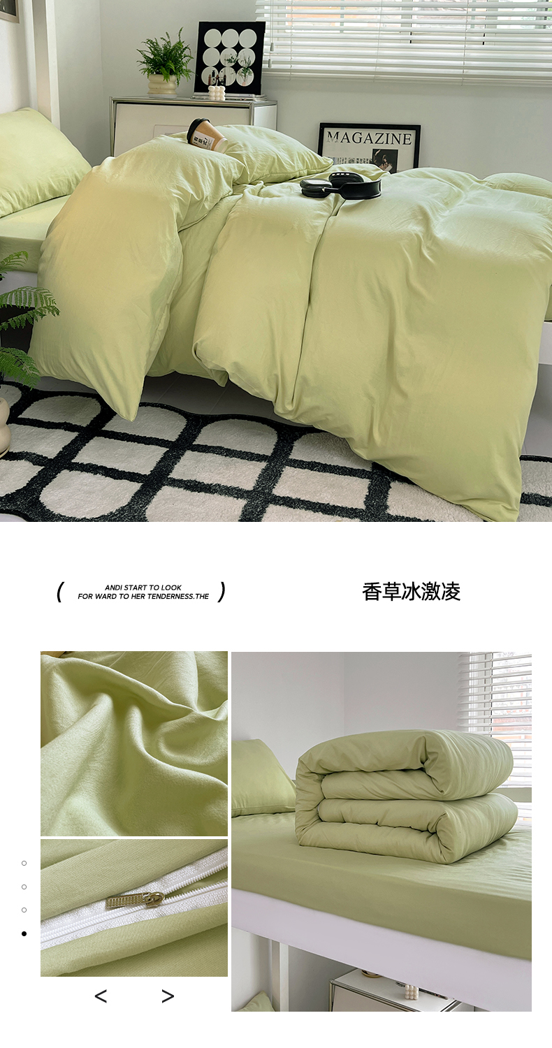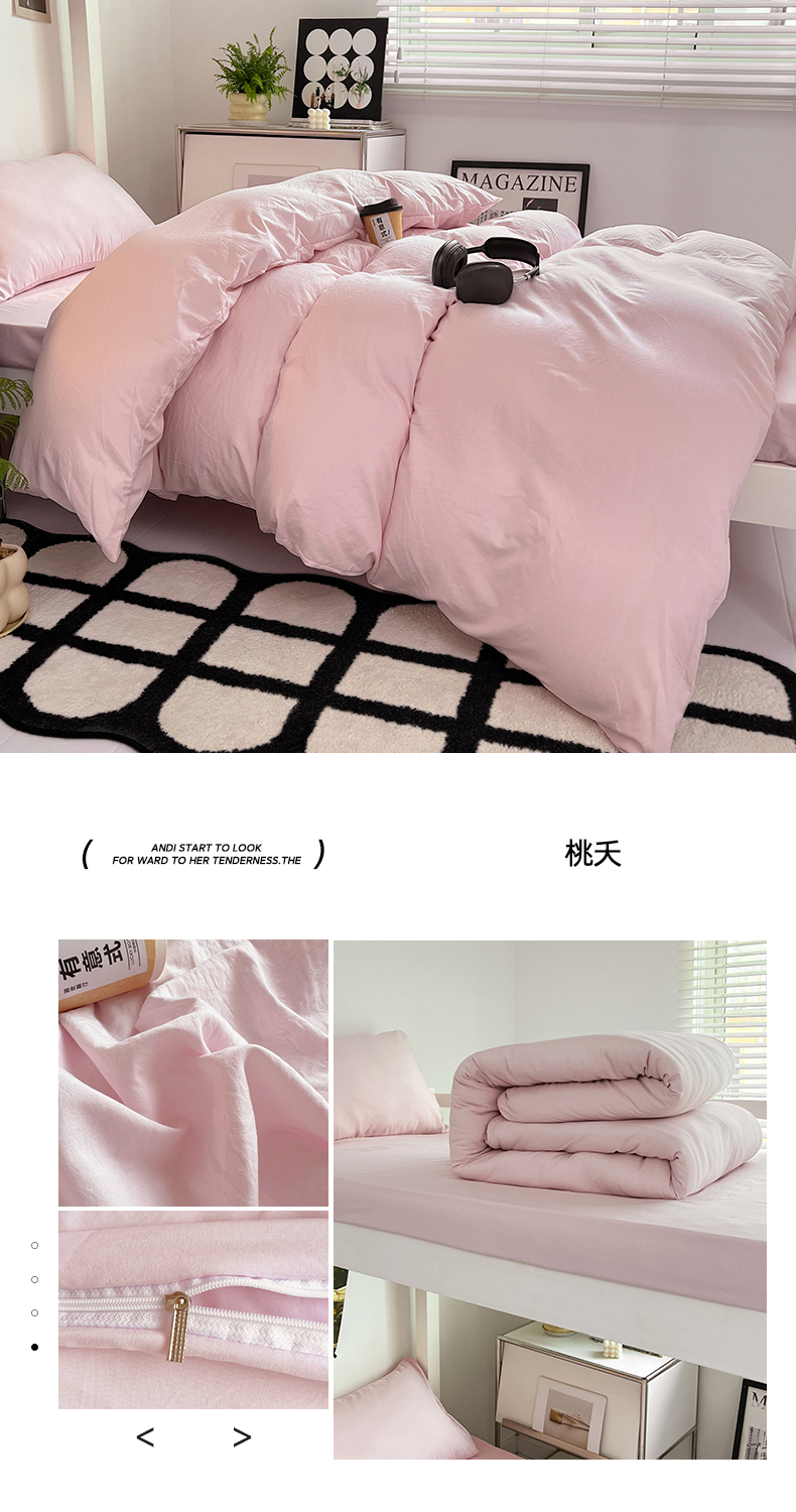 (总)贝拉梦家纺 2024新款褶皱炒鸡糯纯色水洗棉学生床三件套