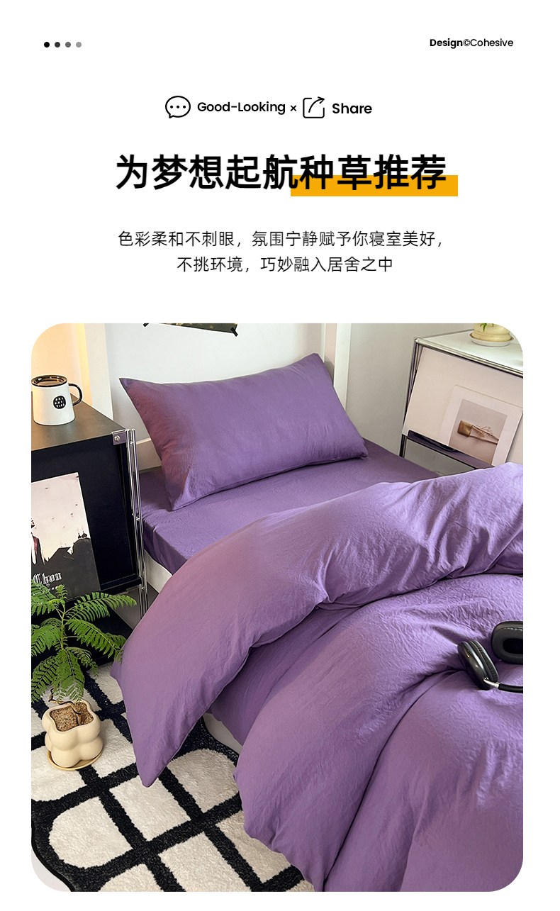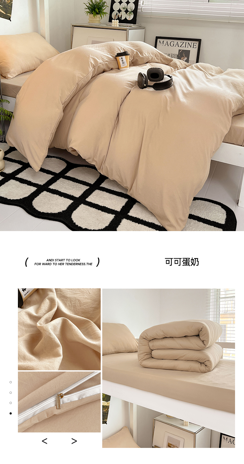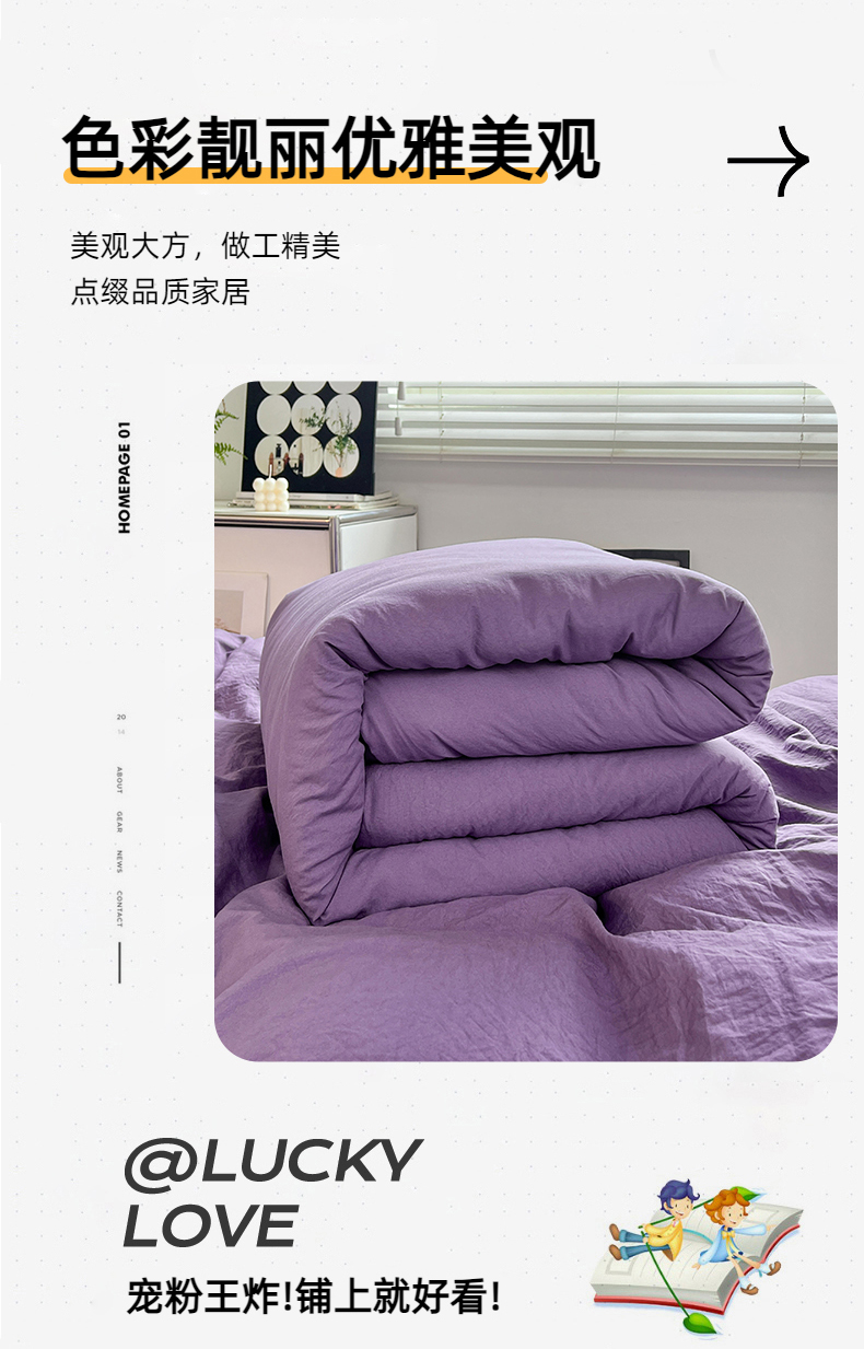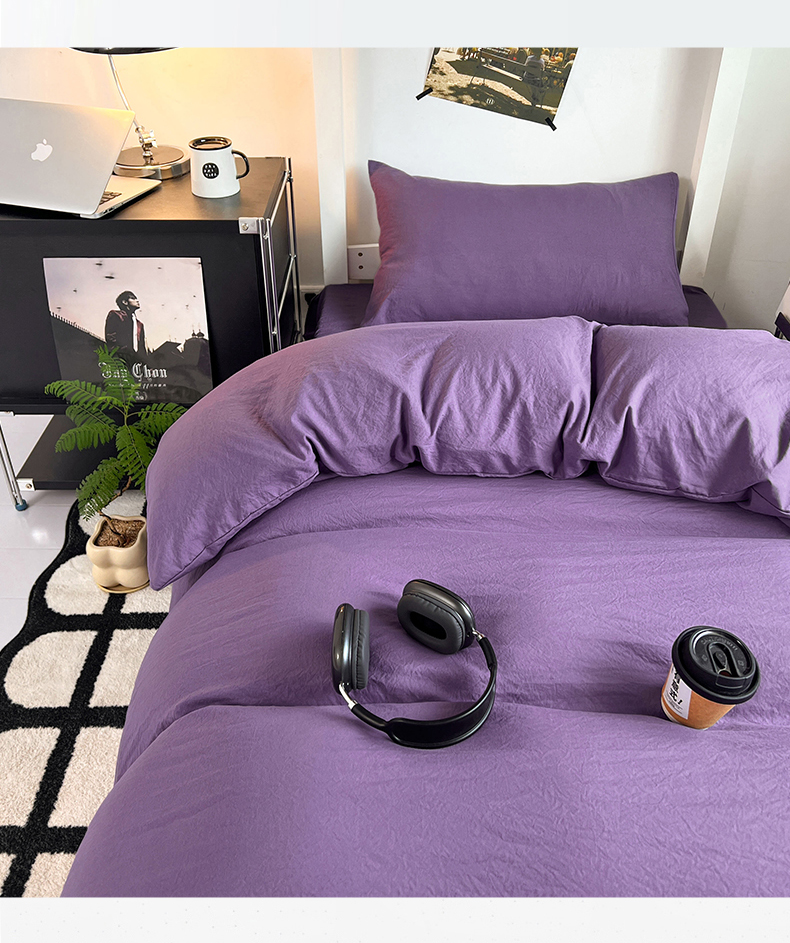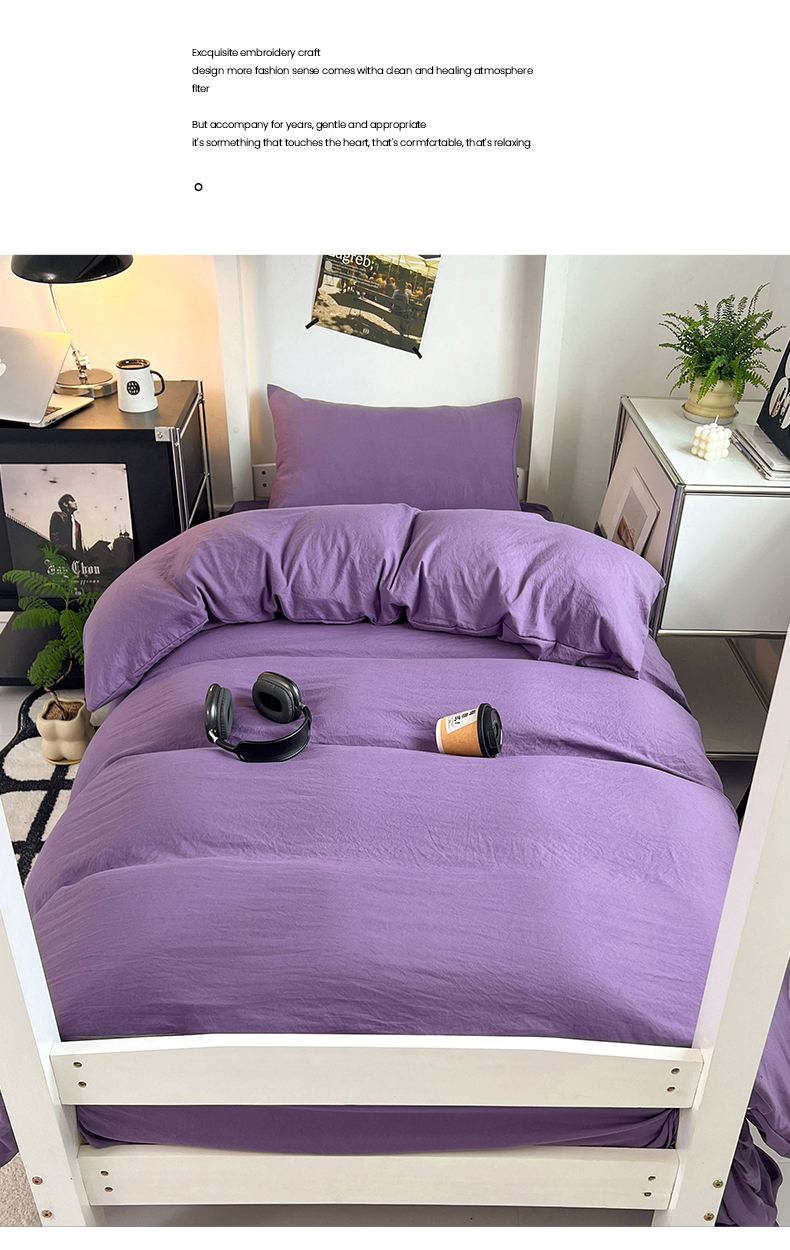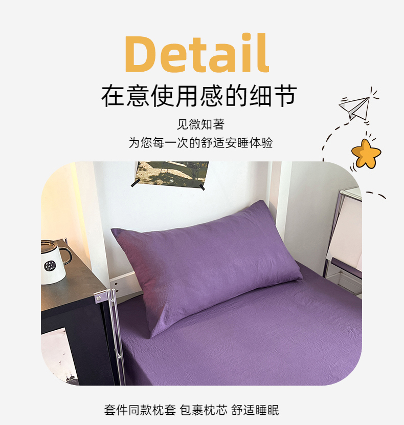 (总)贝拉梦家纺 2024新款褶皱炒鸡糯纯色水洗棉学生床三件套,风信紫,浩瀚蓝,焦糖,可可蛋奶,马卡龙蓝,莫奈灰,桃夭,庭芜绿,香草冰激凌