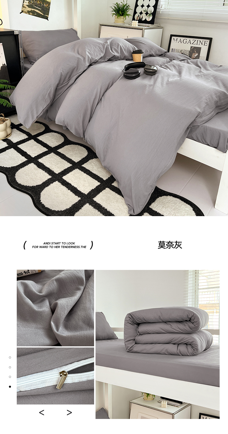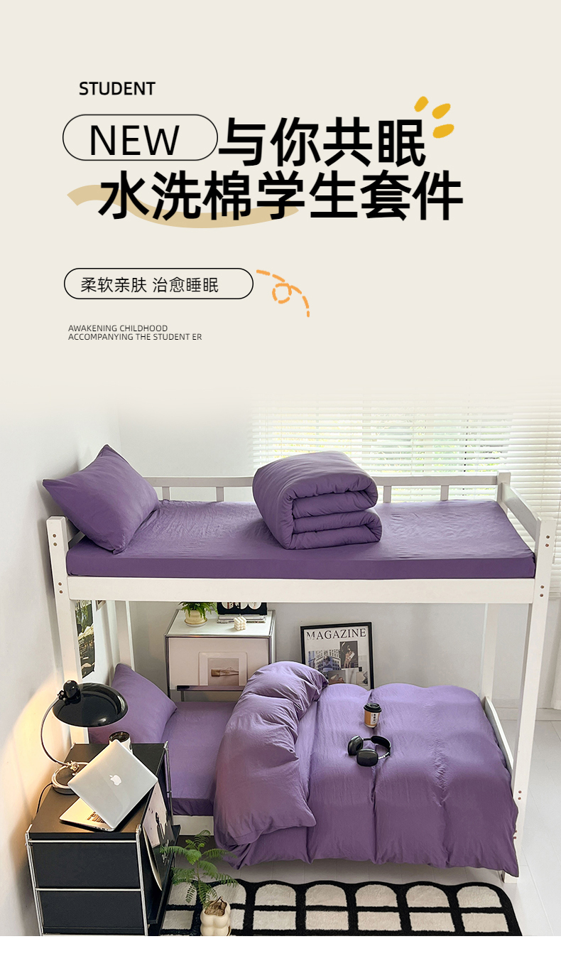 商品名称:(总)贝拉梦家纺 2024新款褶皱炒鸡糯纯色水洗棉学生床三件套