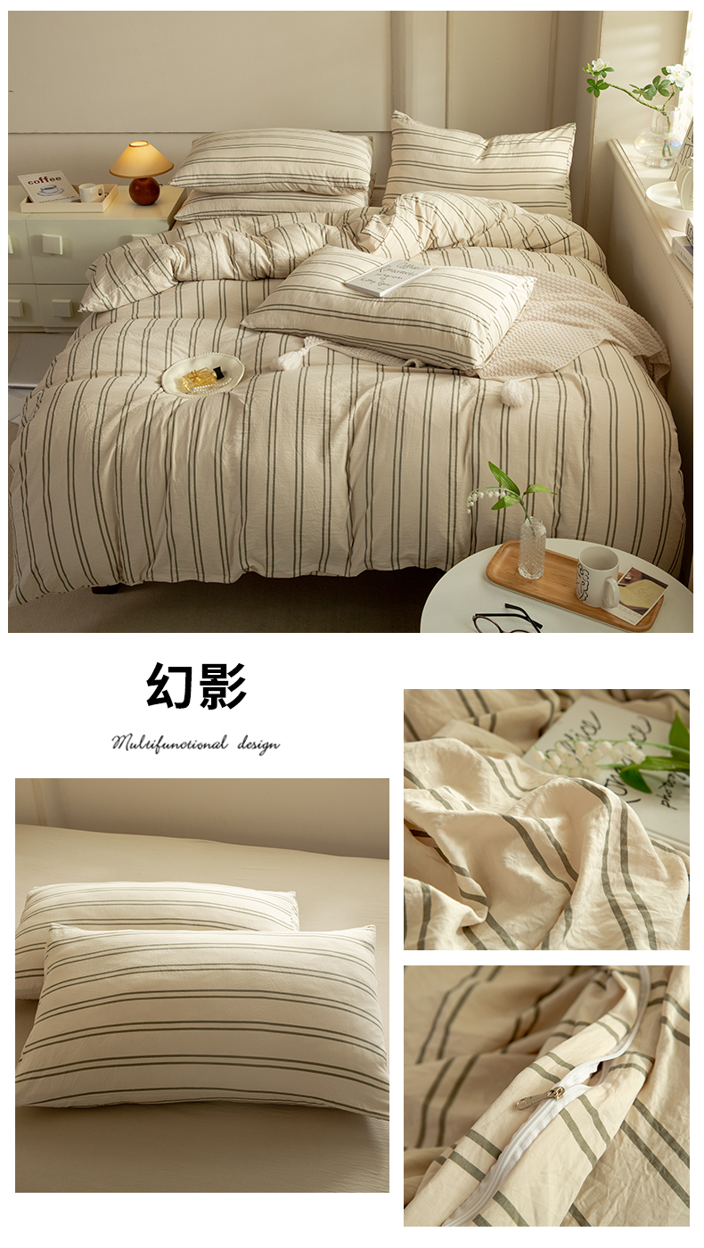 当前位置: 91家纺网 > 商品网购 > 床品套件 > 四件套 > 水洗棉四件套 > 多品家纺 2024新款宜家风无印风水洗棉印花四件套 幻影
