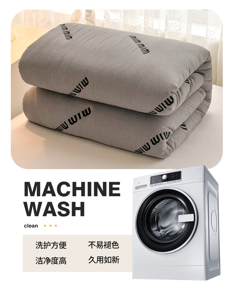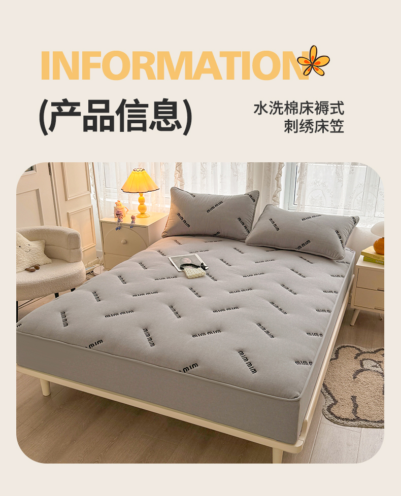 商品名称:予梦家纺 2024新款ins风刺绣夹棉床笠床垫保护套 字母-浅灰