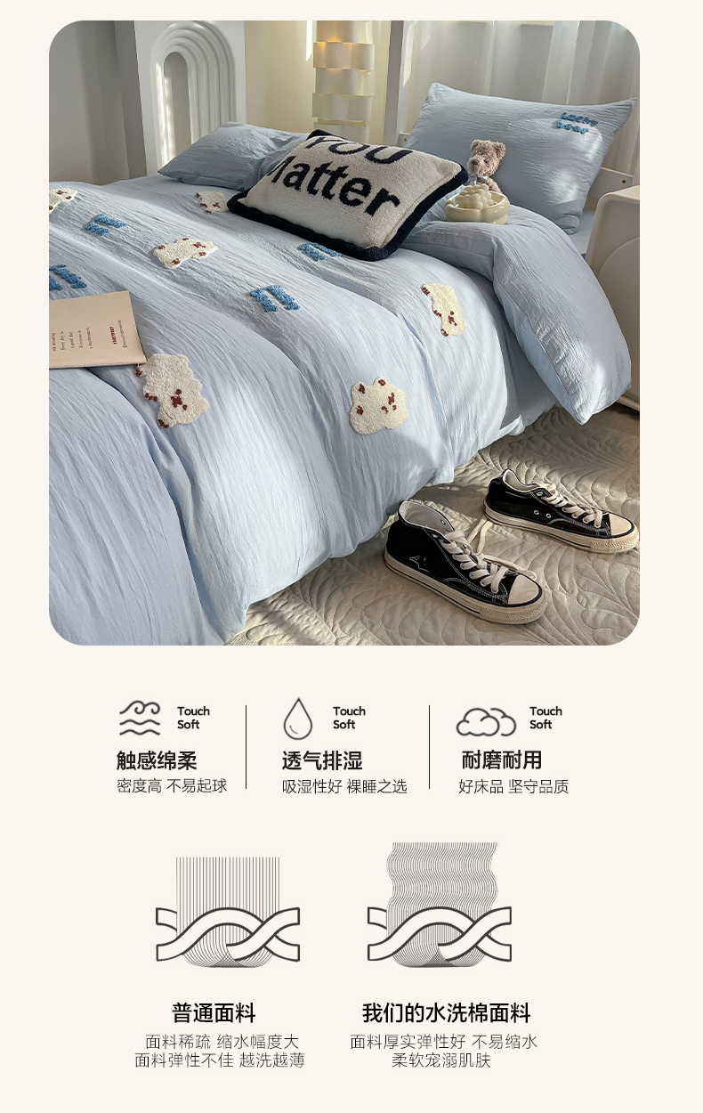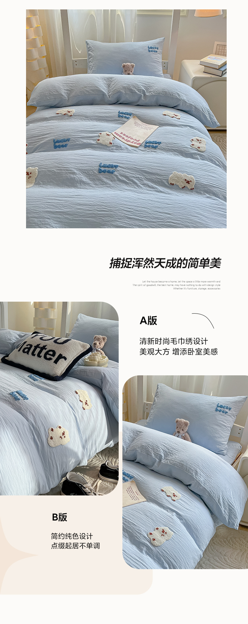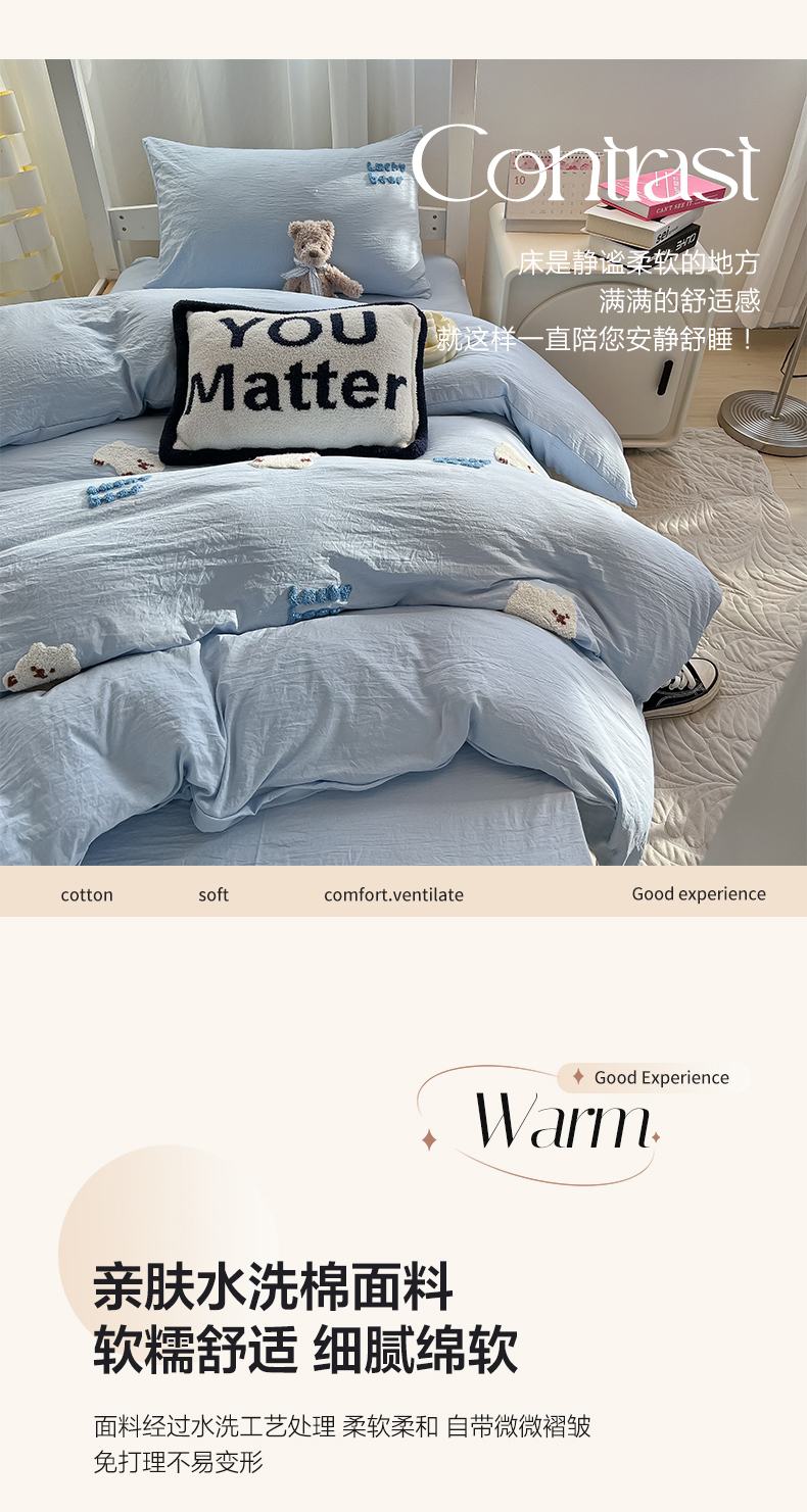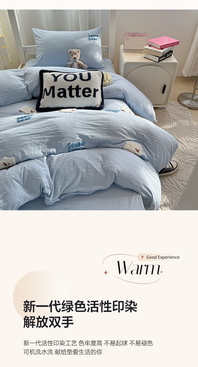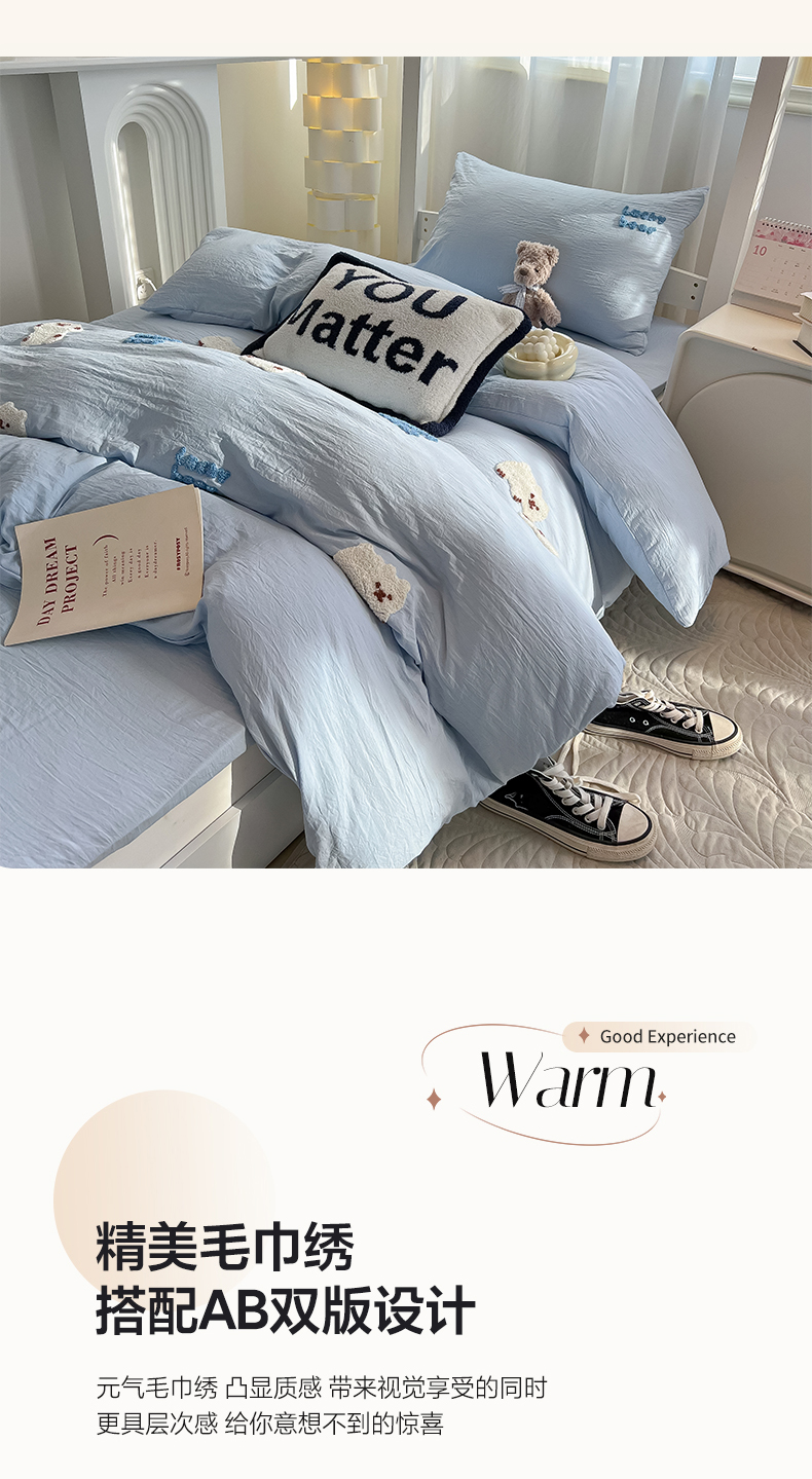 当前位置: 91家纺网 > 商品网购 > 床品套件 > 三件套 > 韩巢家纺 2024新款学生宿舍寝室上下铺超柔水洗棉毛巾绣被套床单三件套-小白熊(提供卖家秀) 小白熊 浅蓝