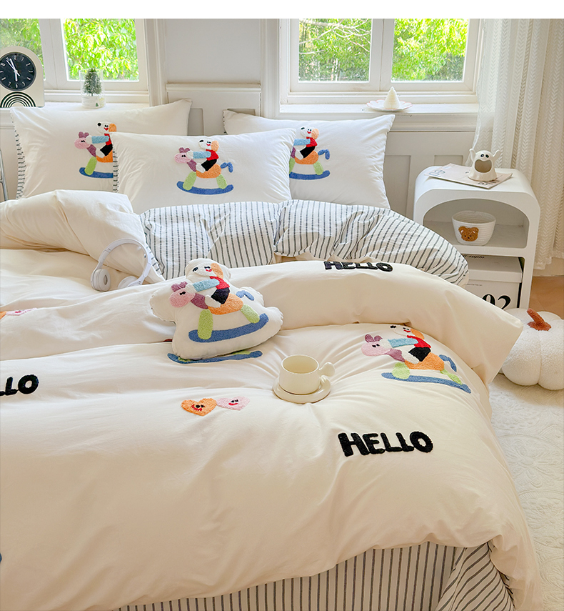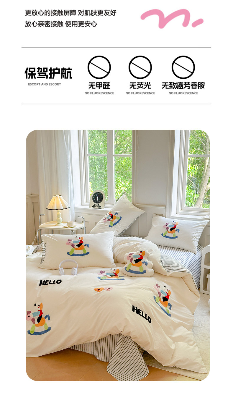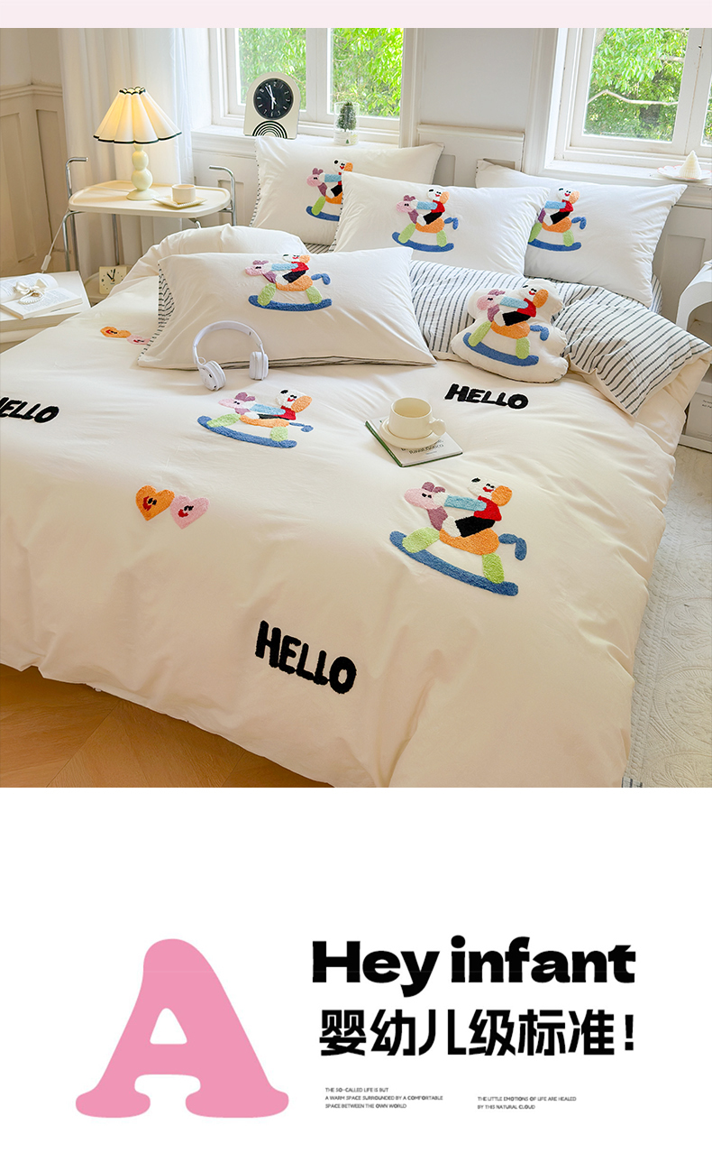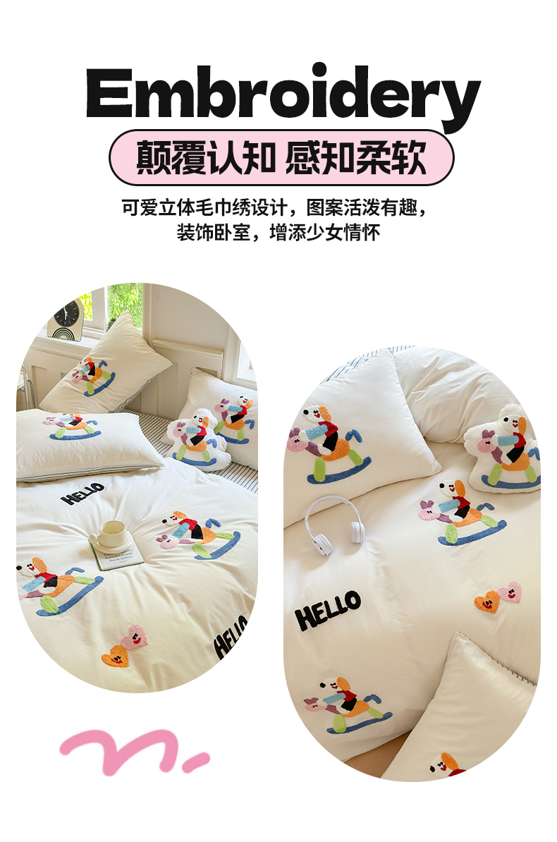 宏羽纺家纺 2024新款全棉水洗棉贴布绣四件套 摇摇乐