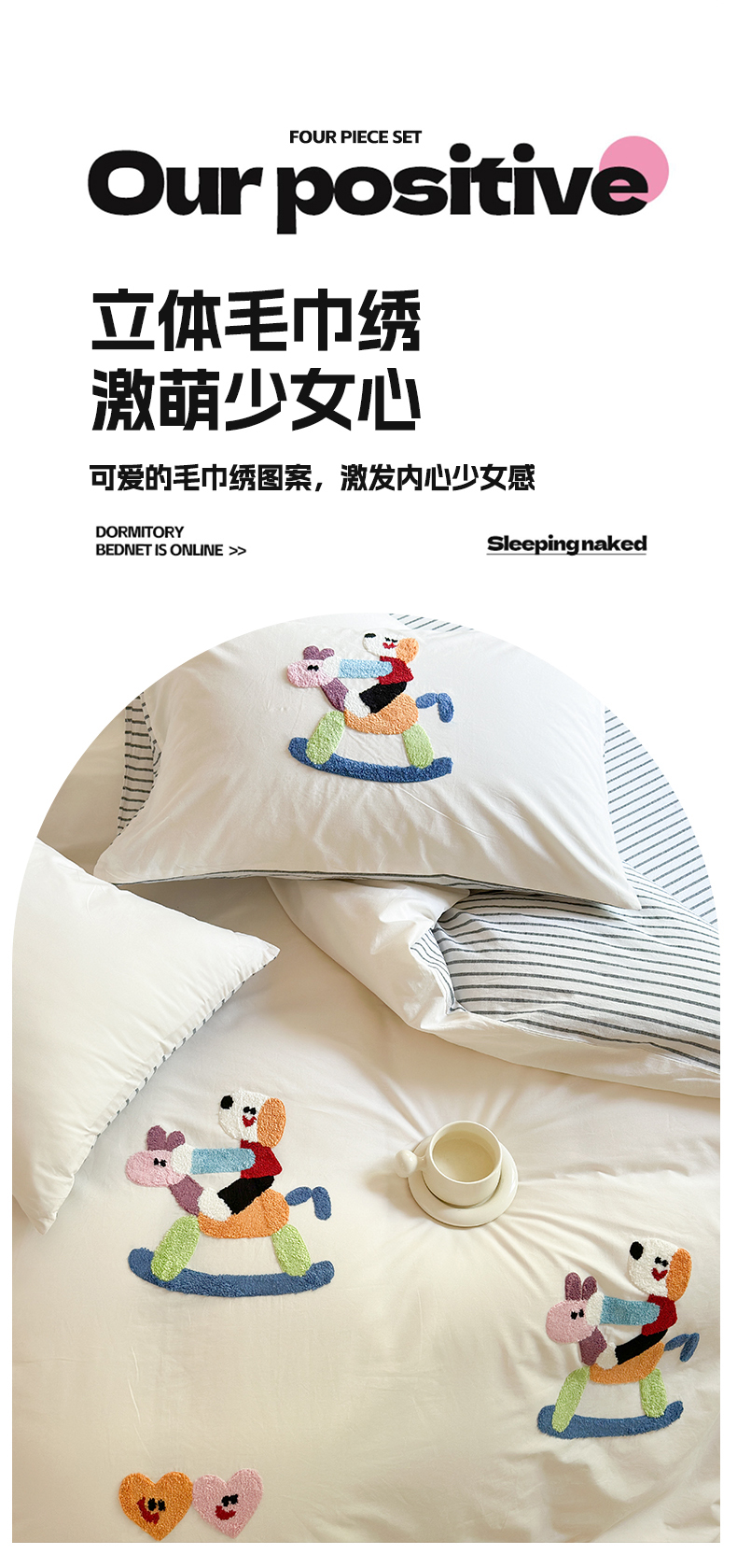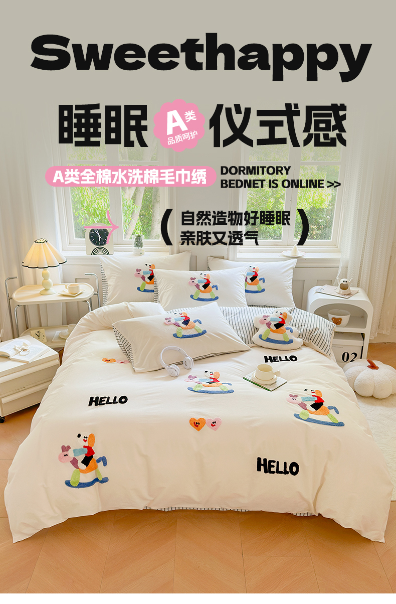 商品名称:宏羽纺家纺 2024新款全棉水洗棉贴布绣四件套 摇摇乐