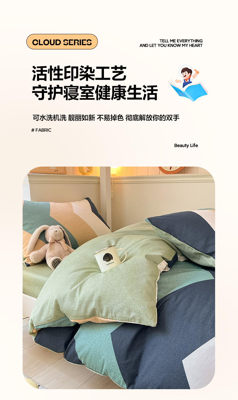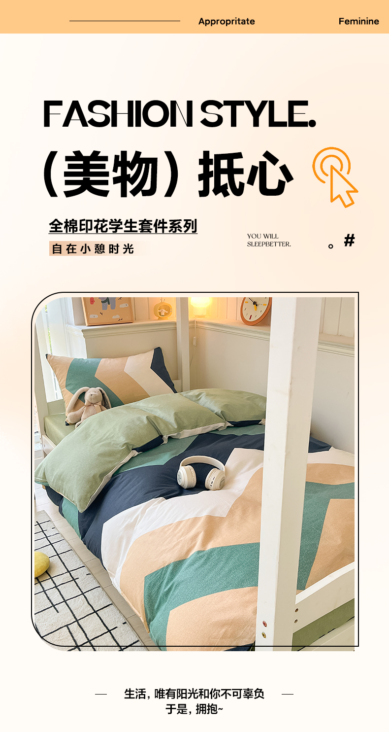 当前位置: 91家纺网 > 商品网购 > 床品套件 > 四件套 > 全棉普通四件套 > 雅居纺 2024新款全棉印花学生季套件 波浪世界
