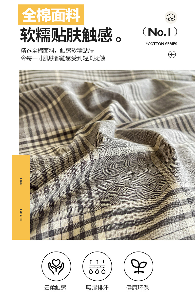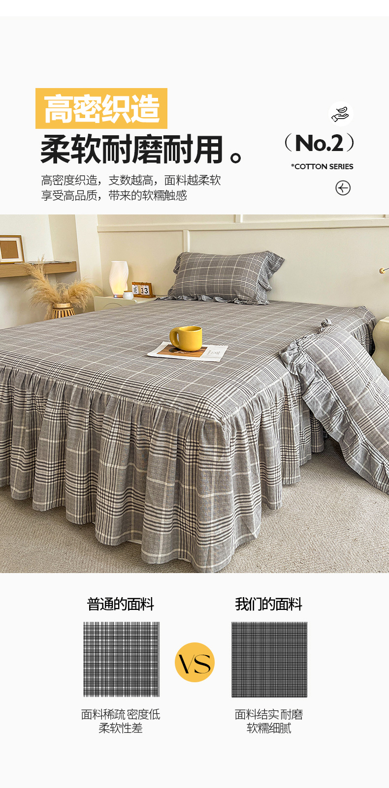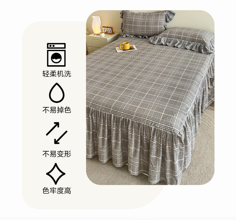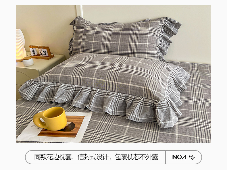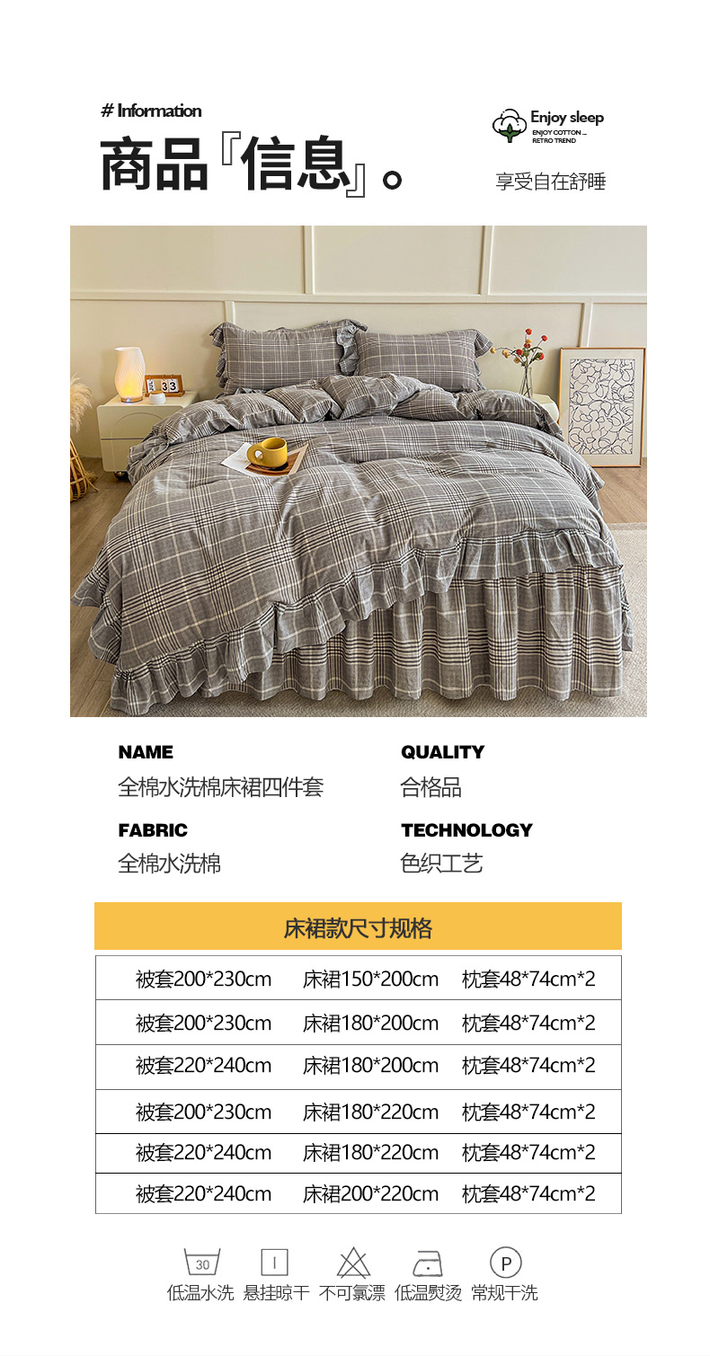 当前位置: 91家纺网 > 商品网购 > 床品套件 > 四件套 > 全棉普通四件套 > 糯米猪家纺 2024新款全棉水洗棉床裙四件套 格纹 灰