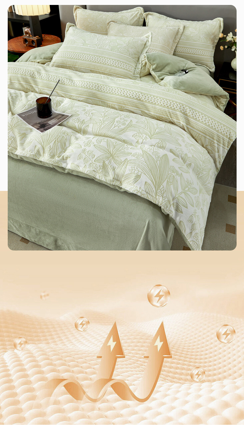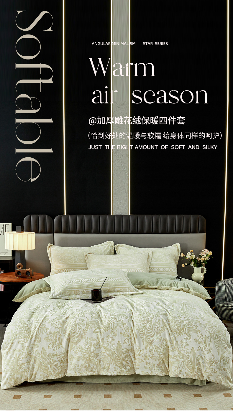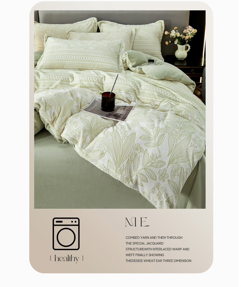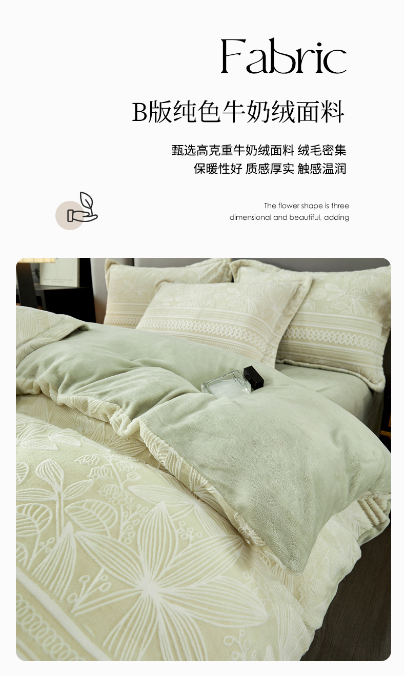 2024新款A类8斤雕花绒牛奶绒四件套 芳草-绿
