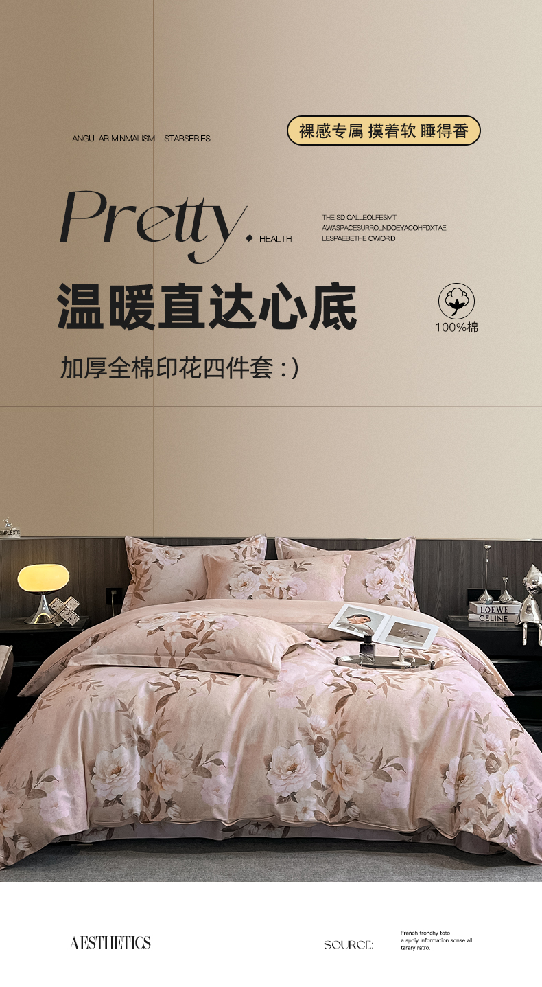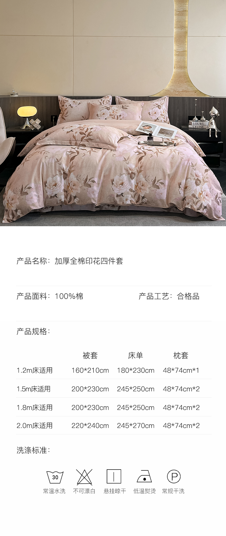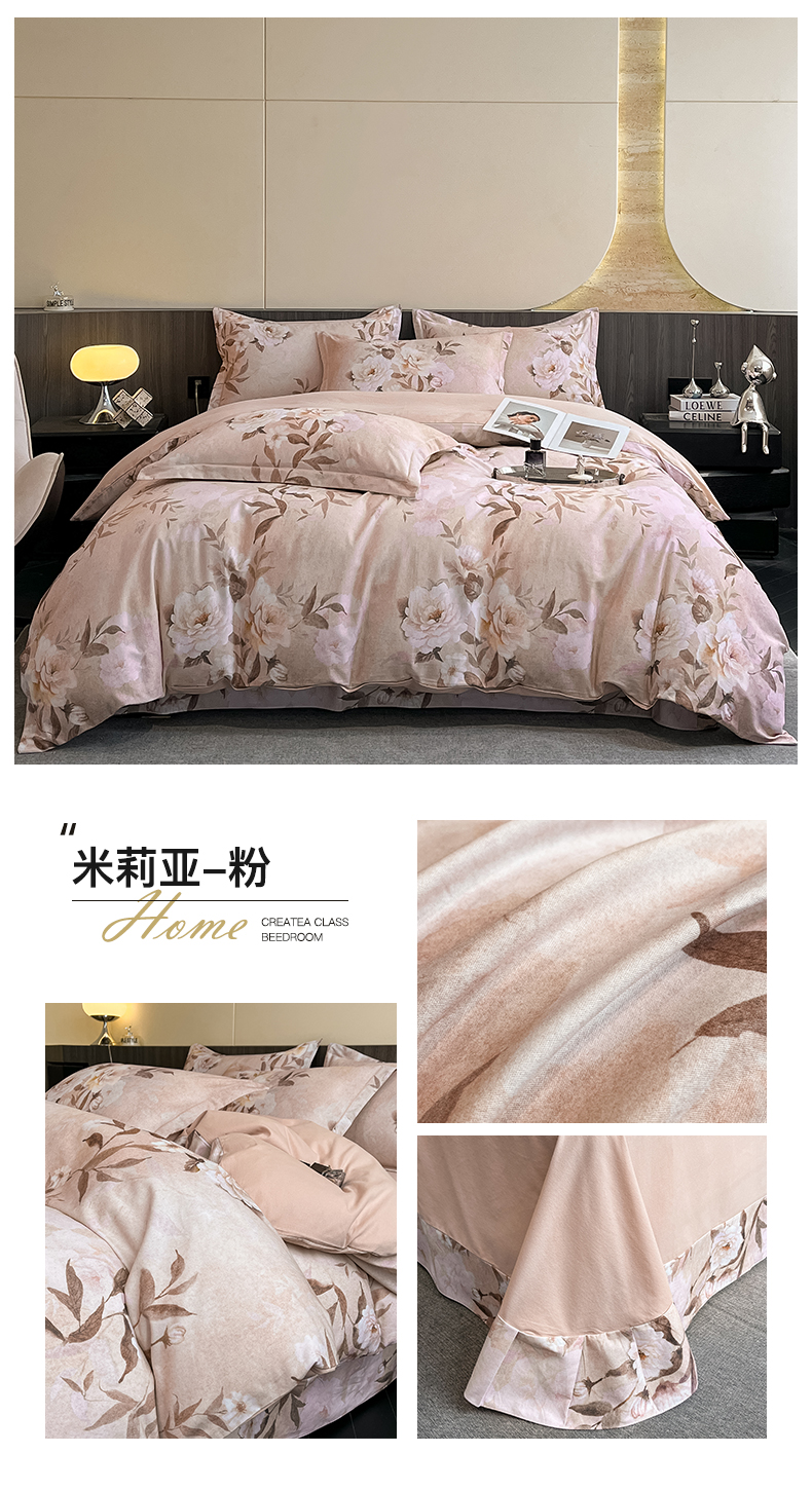 商品名称:格里芬家纺 2025新款花卉系列全棉加厚磨毛数码印花四件套(控价劵后标准208起) 米莉亚-粉