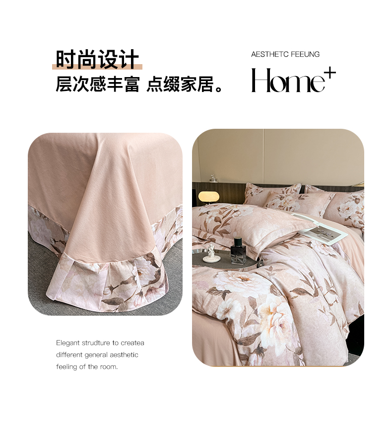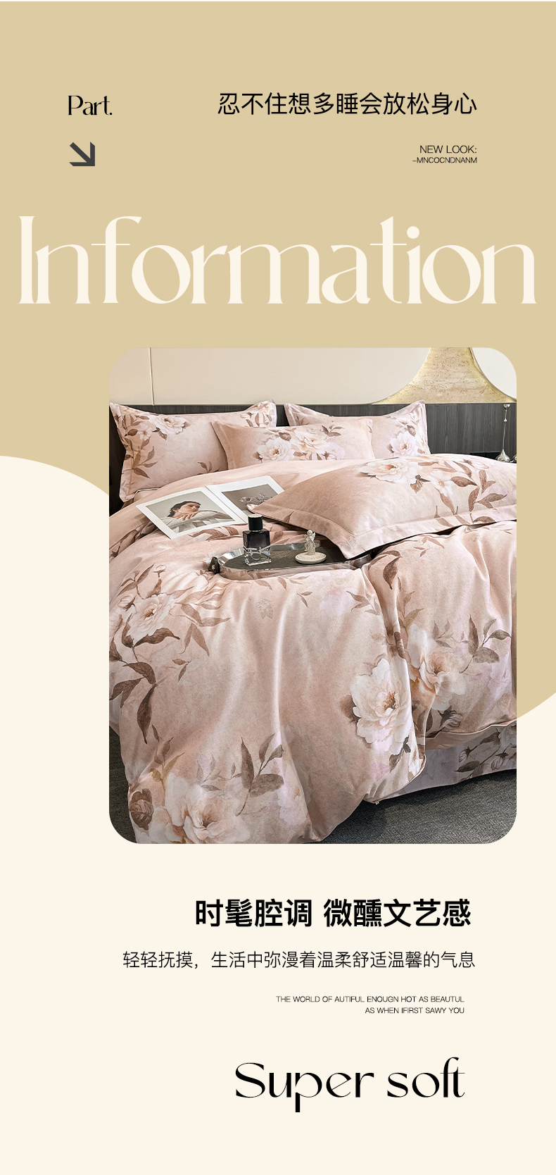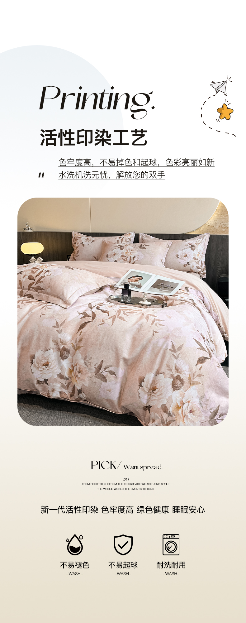 商品名称:格里芬家纺 2025新款花卉系列全棉加厚磨毛数码印花四件套(控价劵后标准208起) 米莉亚-粉