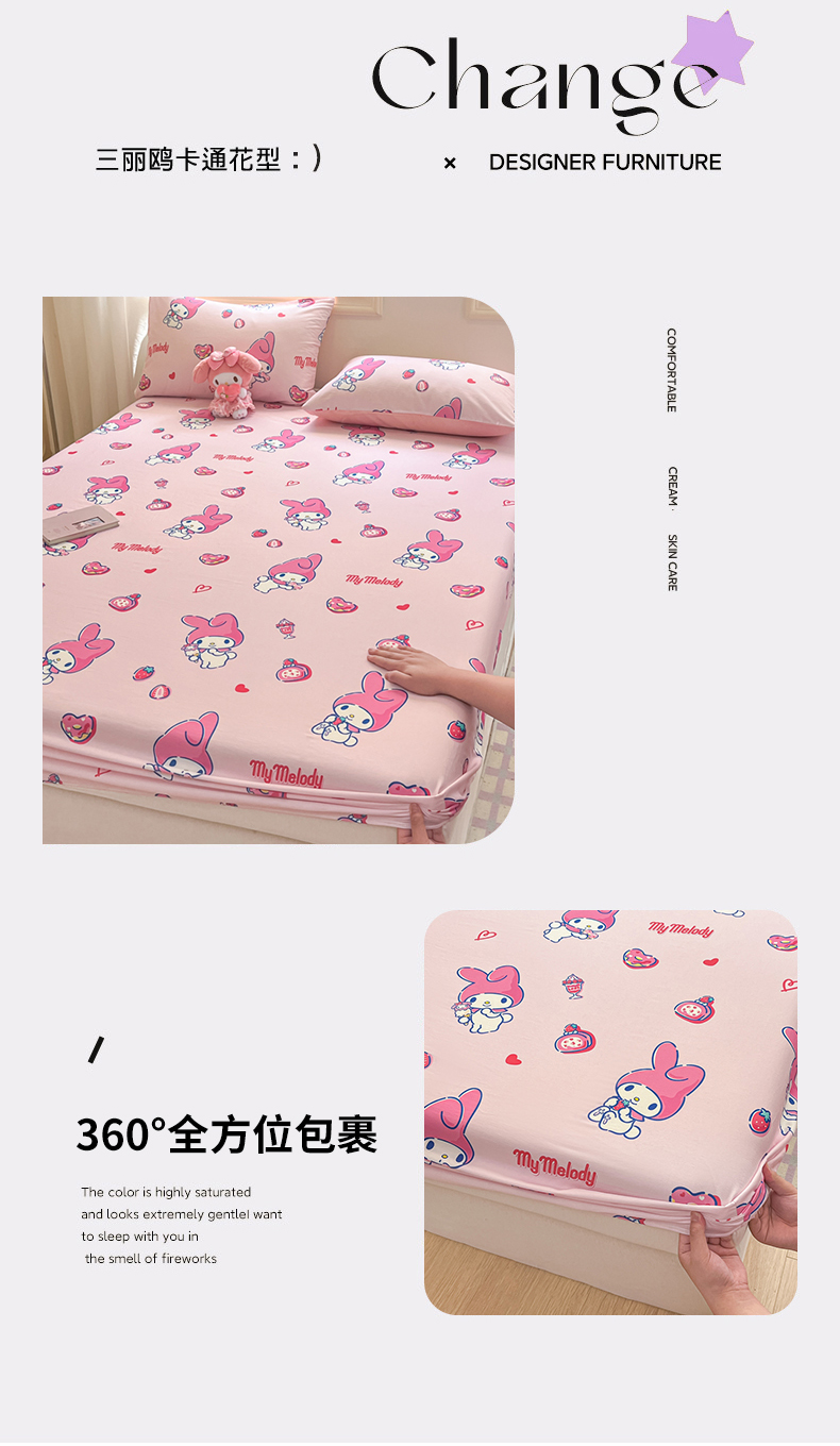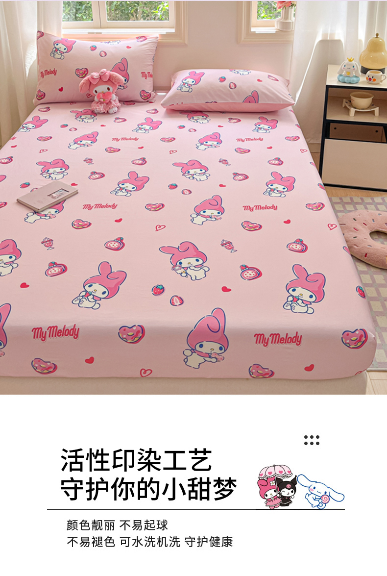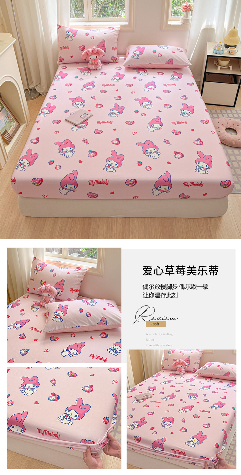 博雅 2024新款三丽鸥卡通系列全棉印花床笠 爱心草莓美乐蒂