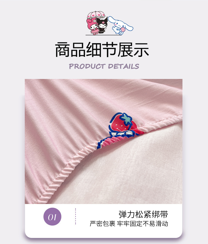 • 91家纺网 家纺一手货源 找家纺 博雅 2024新款三丽鸥卡通系列全棉印花床笠 爱心草莓美乐蒂