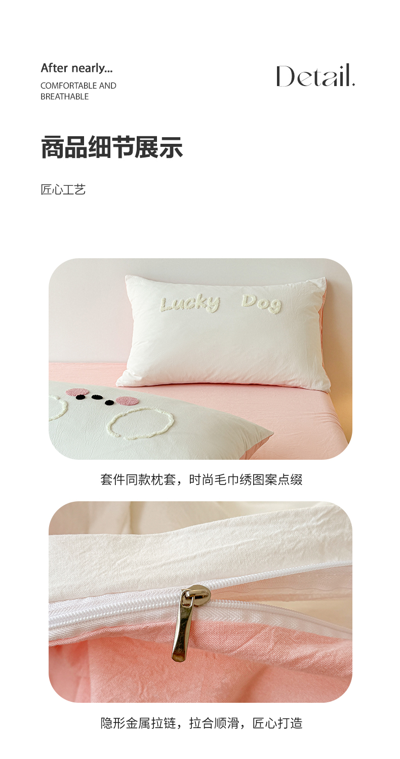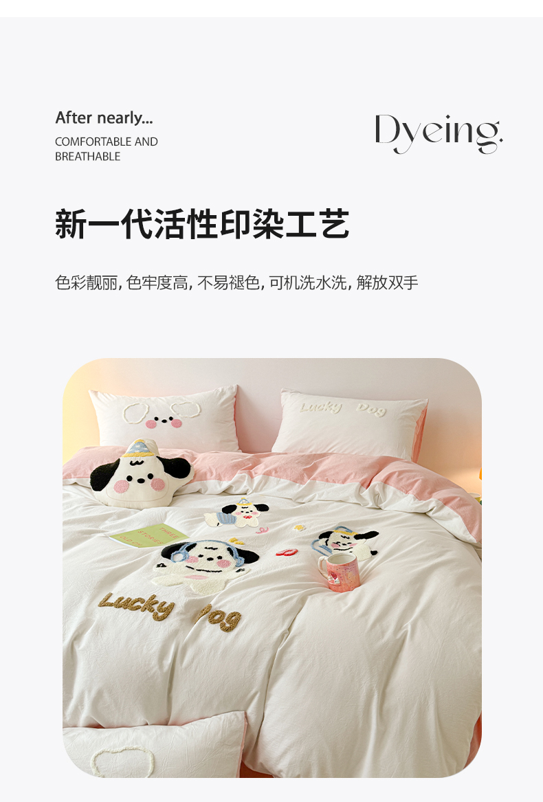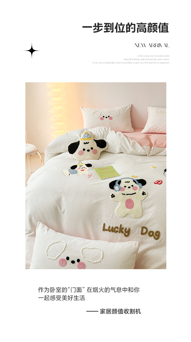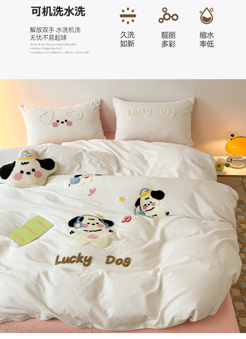 商品名称:(总)繁花家居 2024新款水洗棉毛巾绣成人床四件套-幸运狗