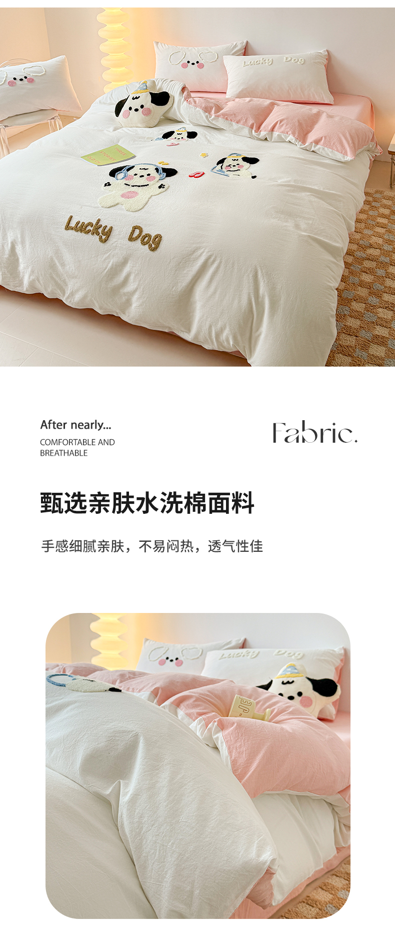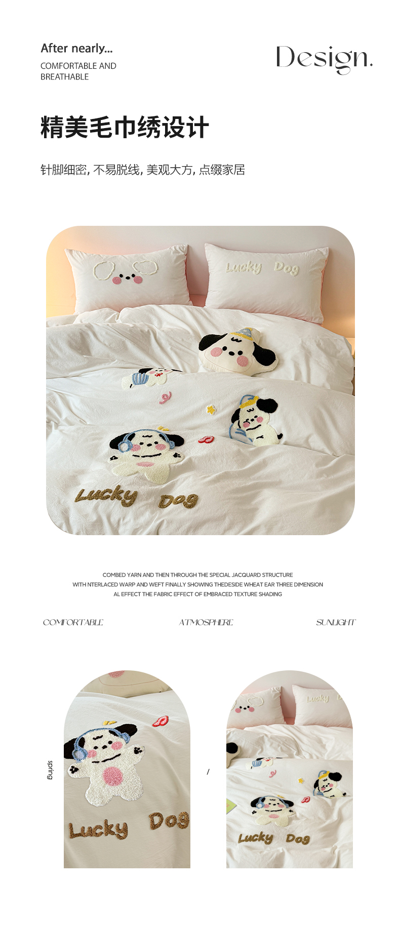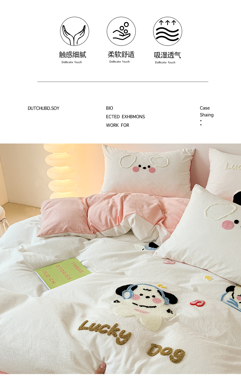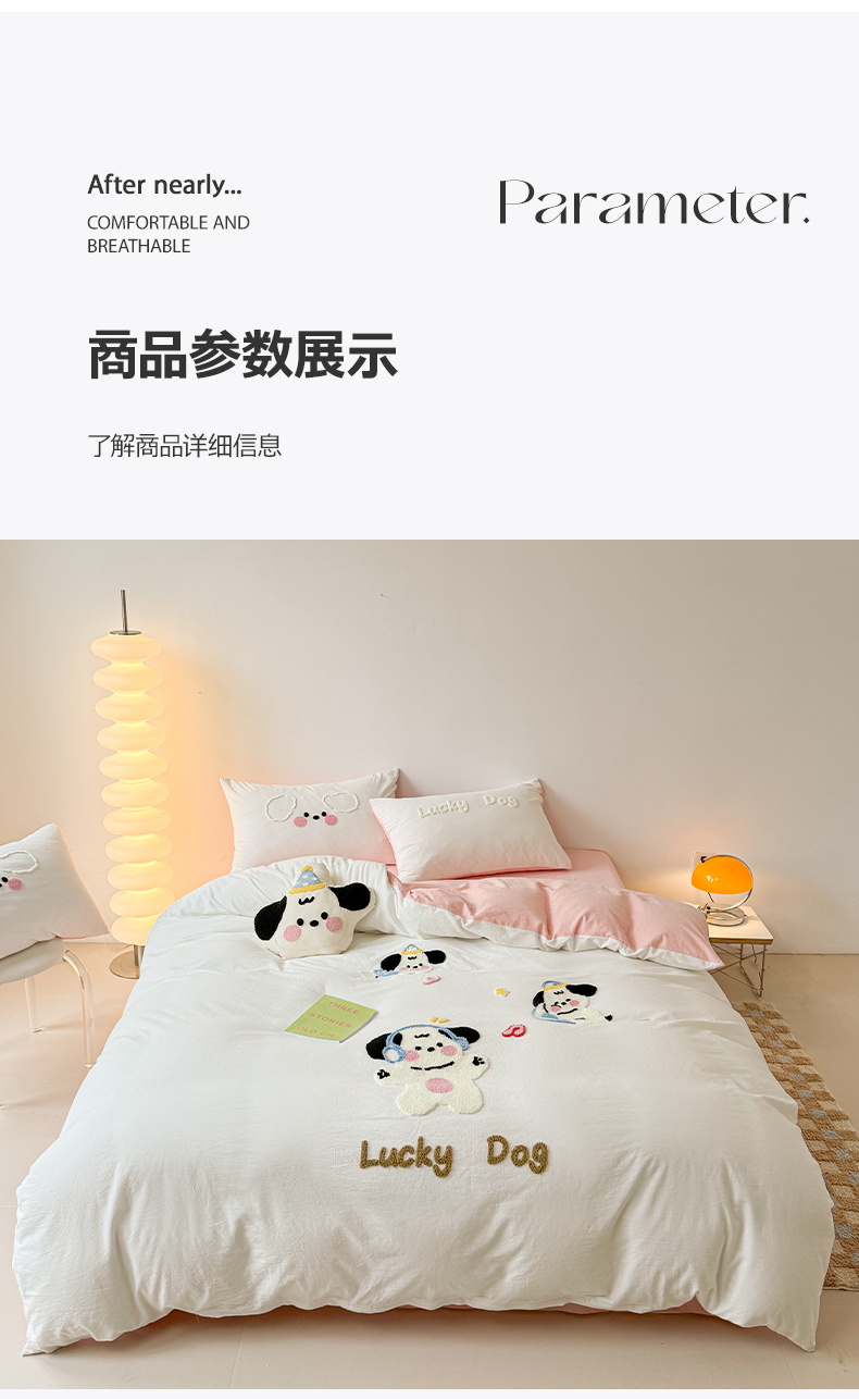 商品名称:(总)繁花家居 2024新款水洗棉毛巾绣成人床四件套-幸运狗