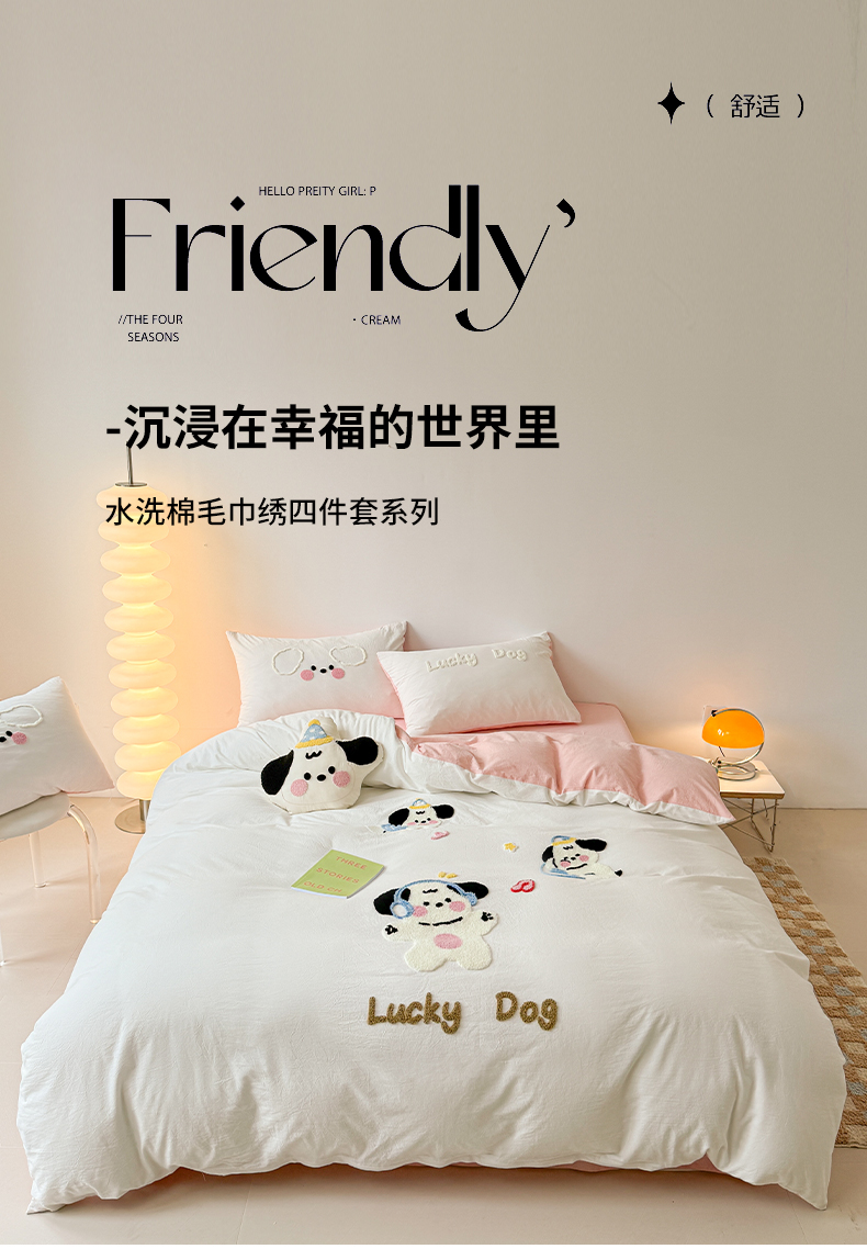 (总)繁花家居 2024新款水洗棉毛巾绣成人床四件套-幸运狗