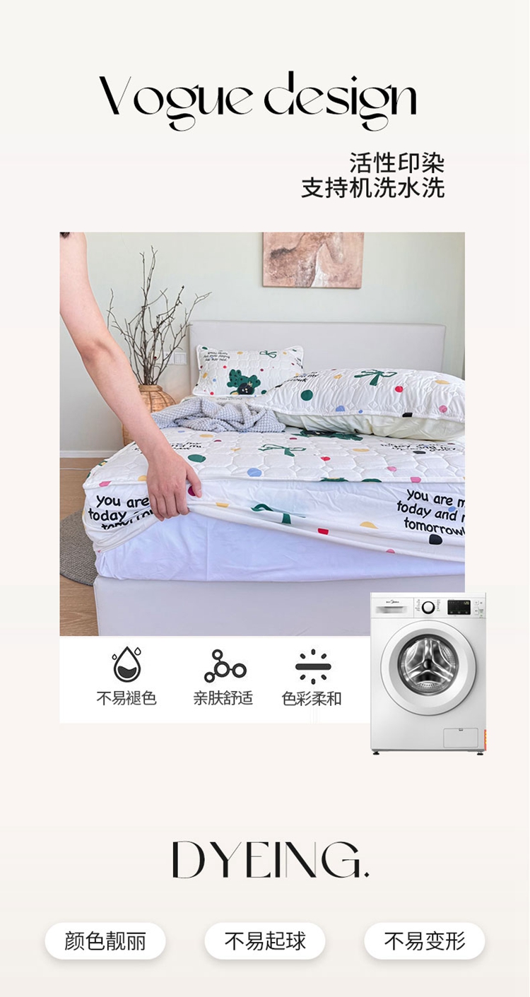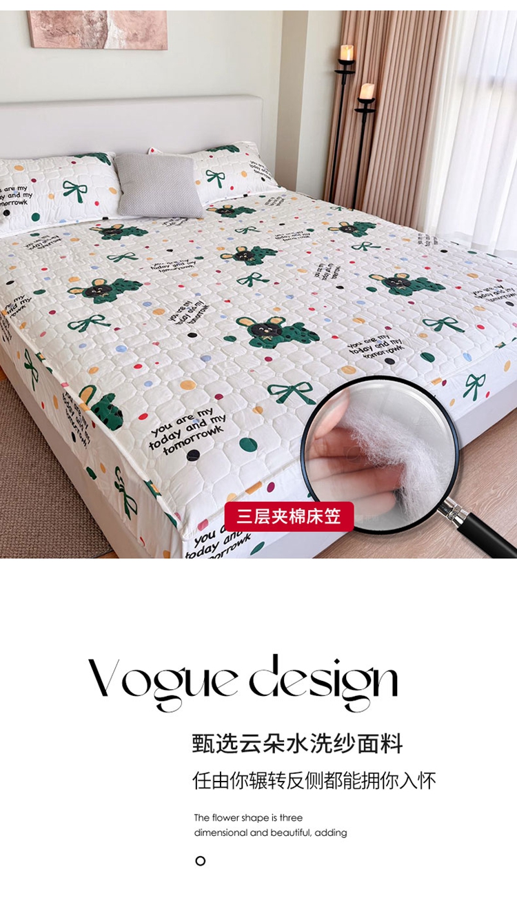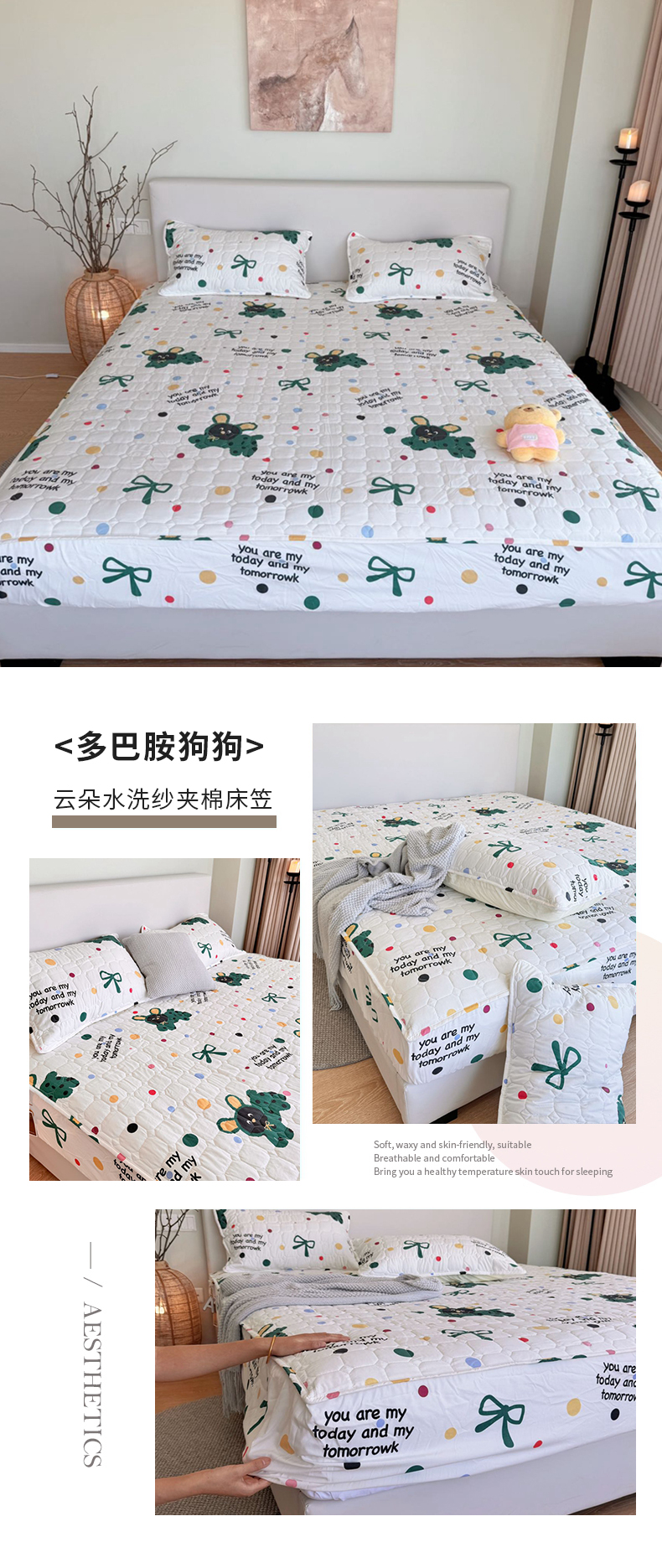 商品名称:兜米家居 2024新款云朵水洗纱夹棉单品床笠 多巴胺狗狗