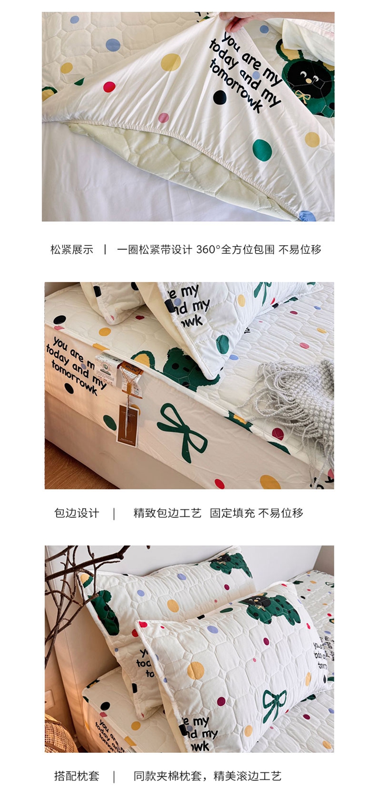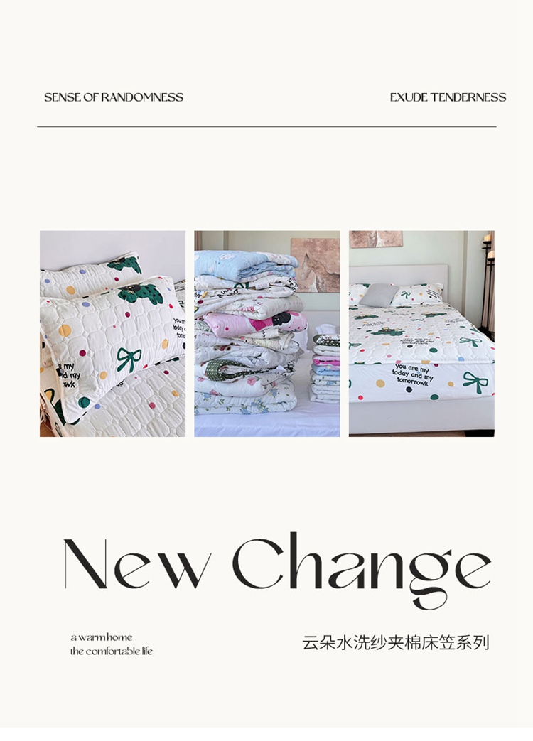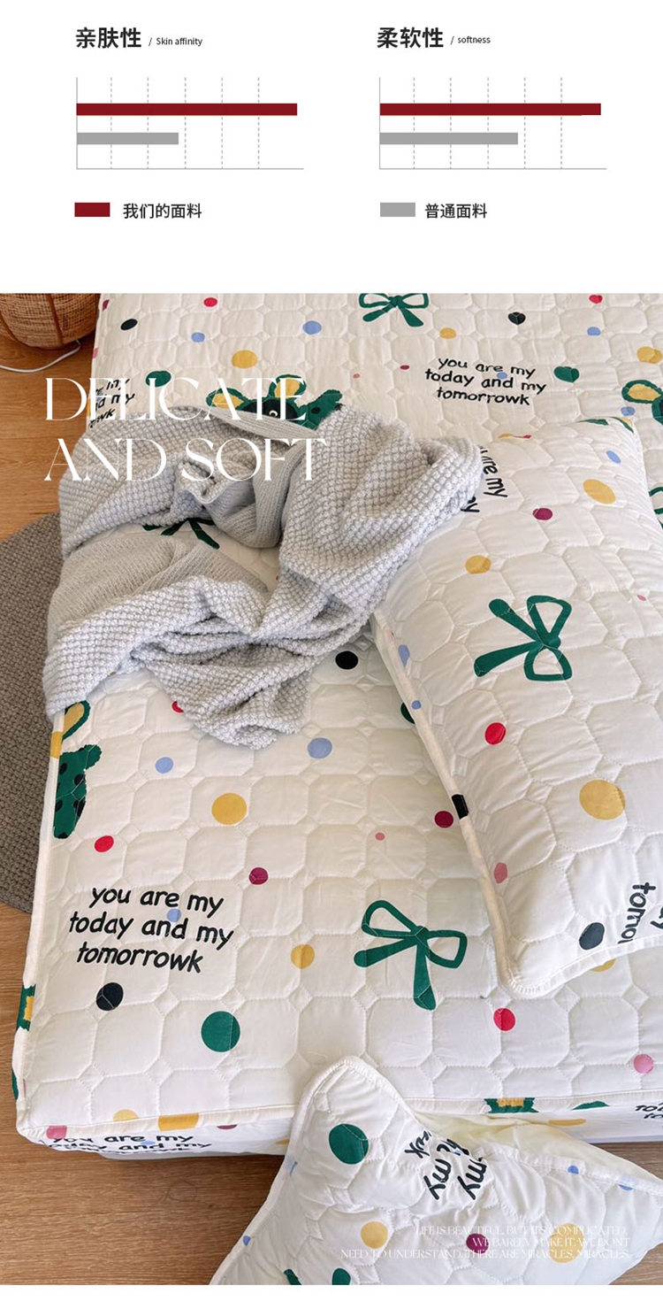 商品名称:兜米家居 2024新款云朵水洗纱夹棉单品床笠 多巴胺狗狗